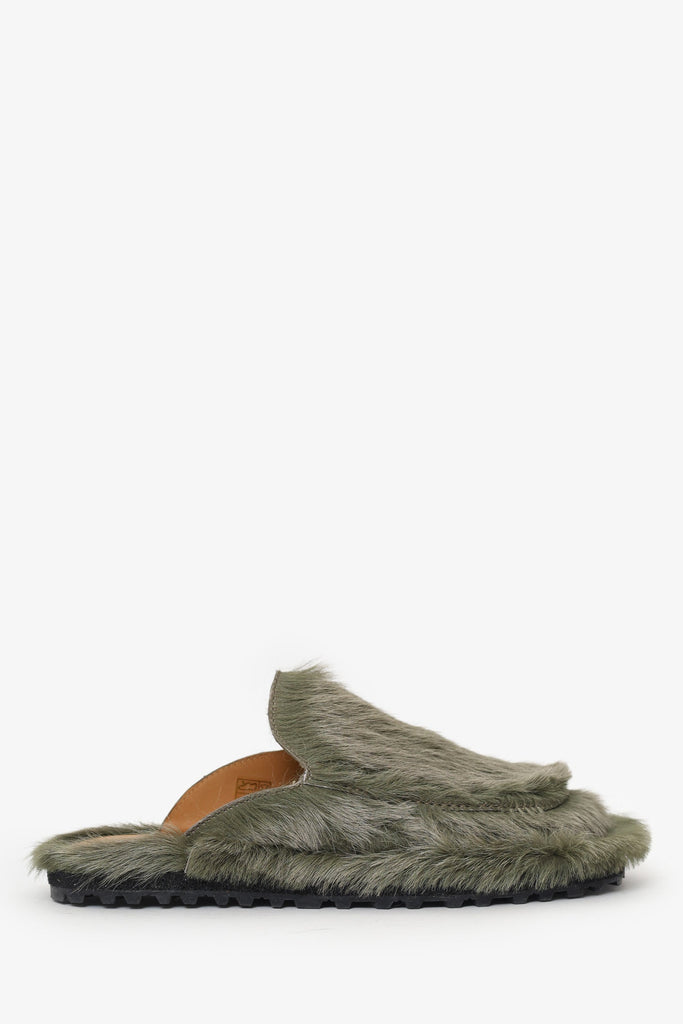 Dries Van Noten Green Pony Hair Mules Size 40 Mens