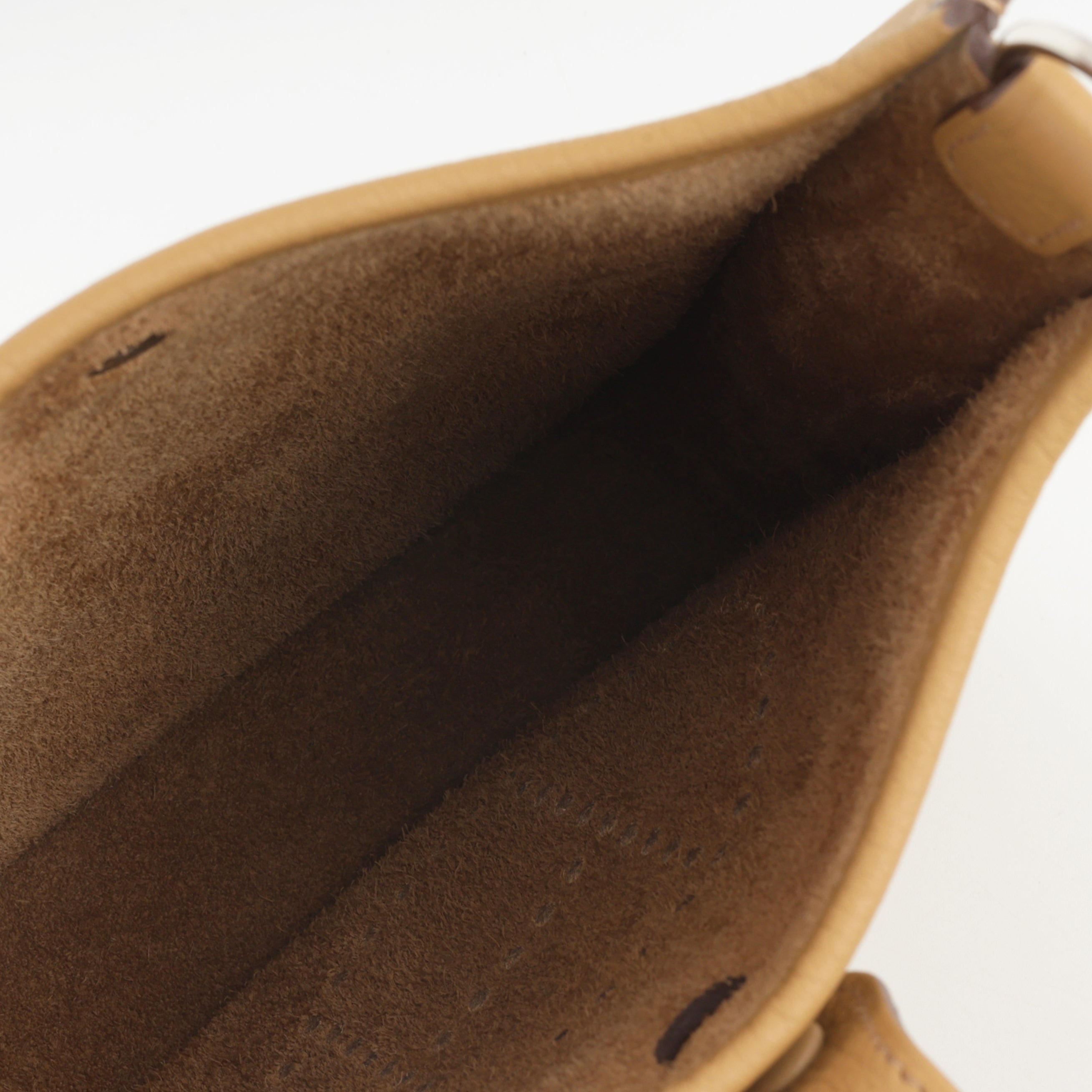 The Hermès Mini Evelyne 16 in Biscuit Clemence with a Nata shoulder strap and Palladium Hardware is a compact and versatile bag. Released in 2024, this model features a slightly shorter strap for a chic, elevated wear, making it perfect for everyday use while retaining Hermès’ signature elegance.