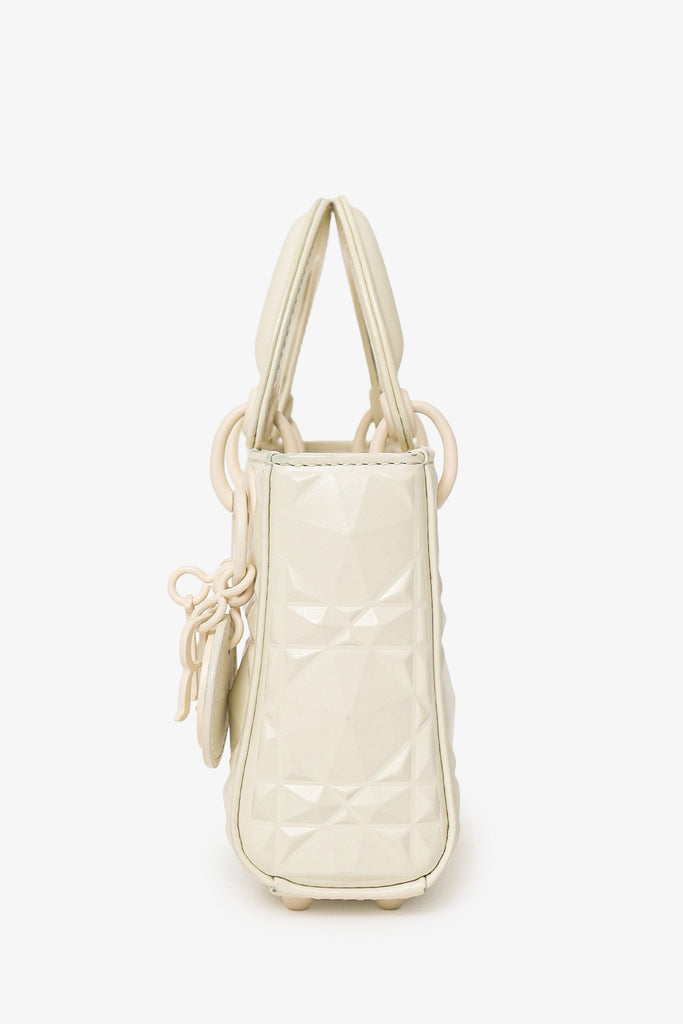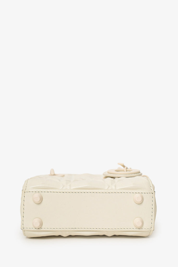 Christian Dior 2022 White Ultra Matte Calfskin Cannage Diamond Motif Micro Lady Dior