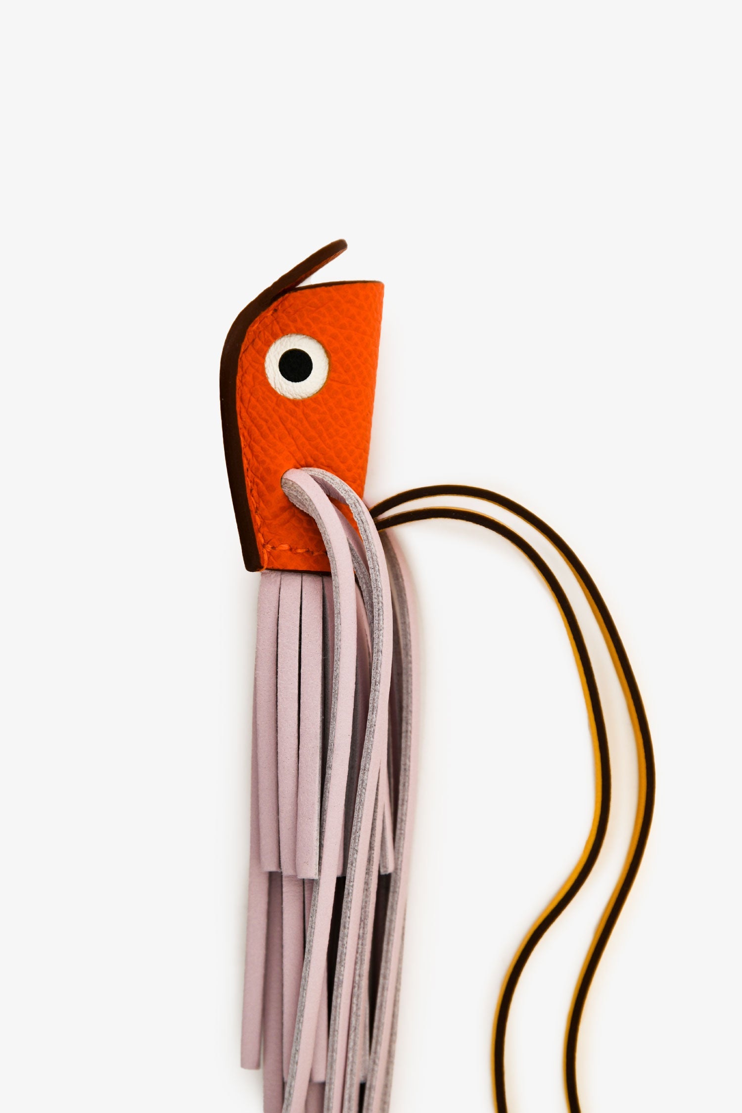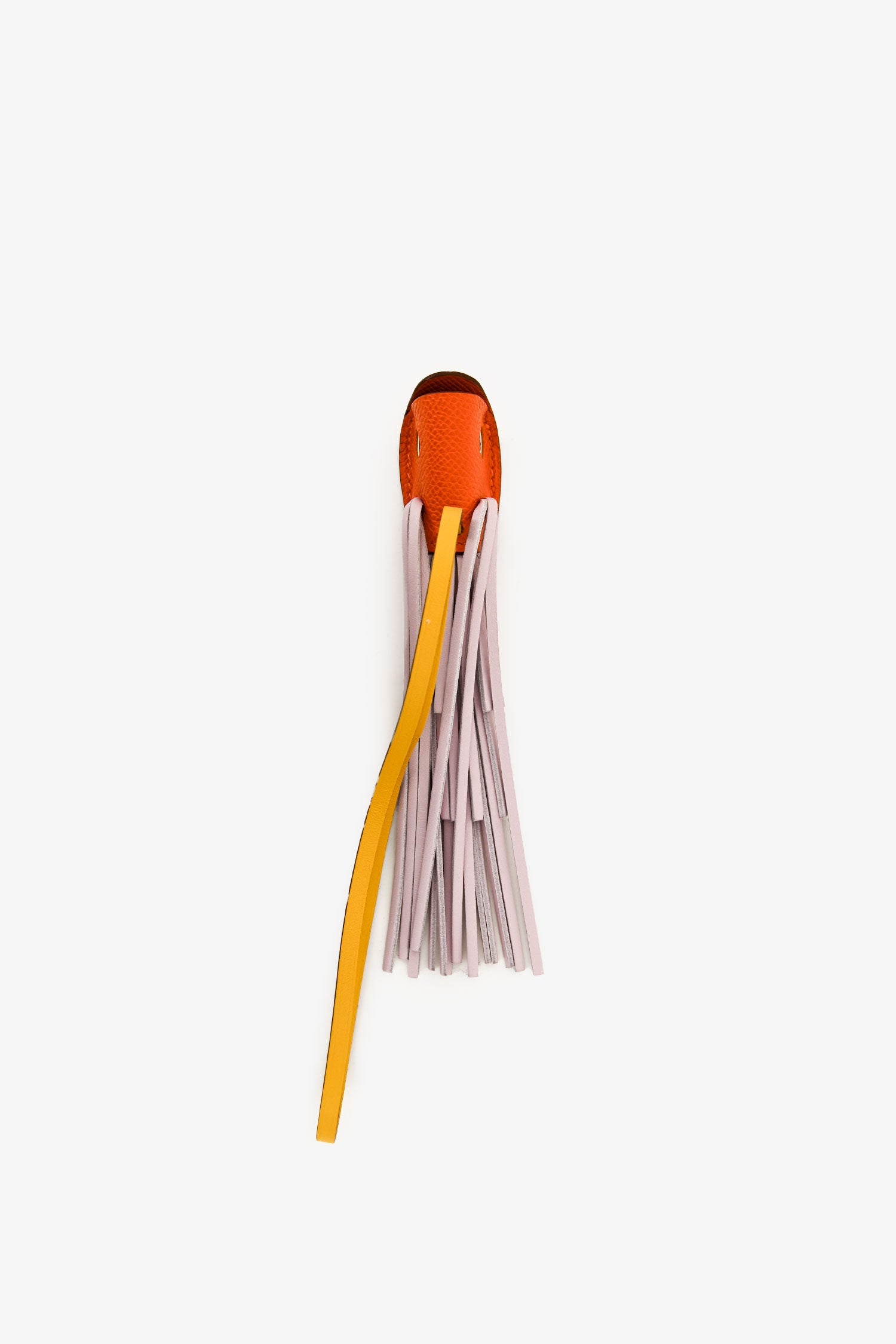 Hermès Orange/Pink/Yellow Poisson Bag Charm. Tonal stitching.