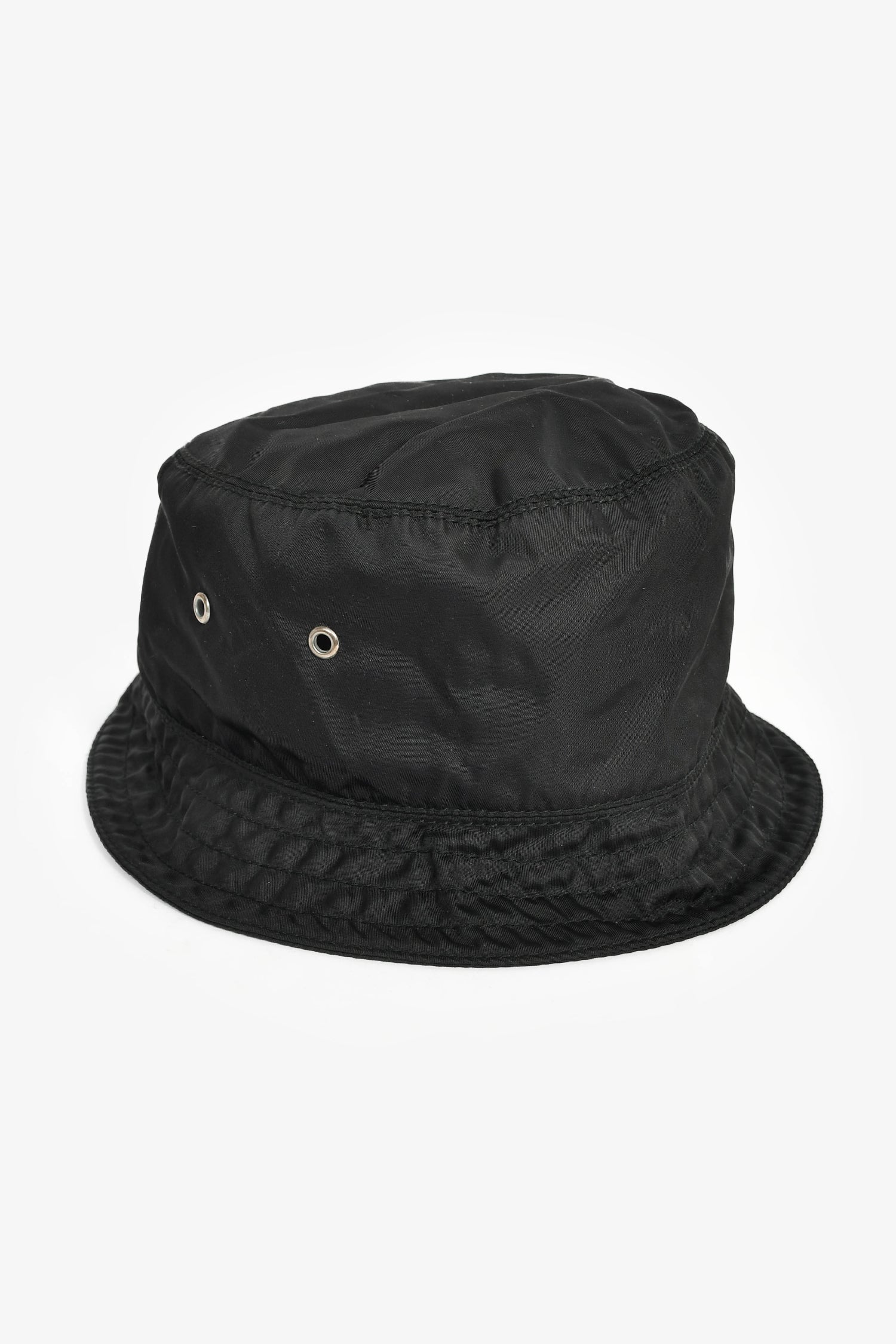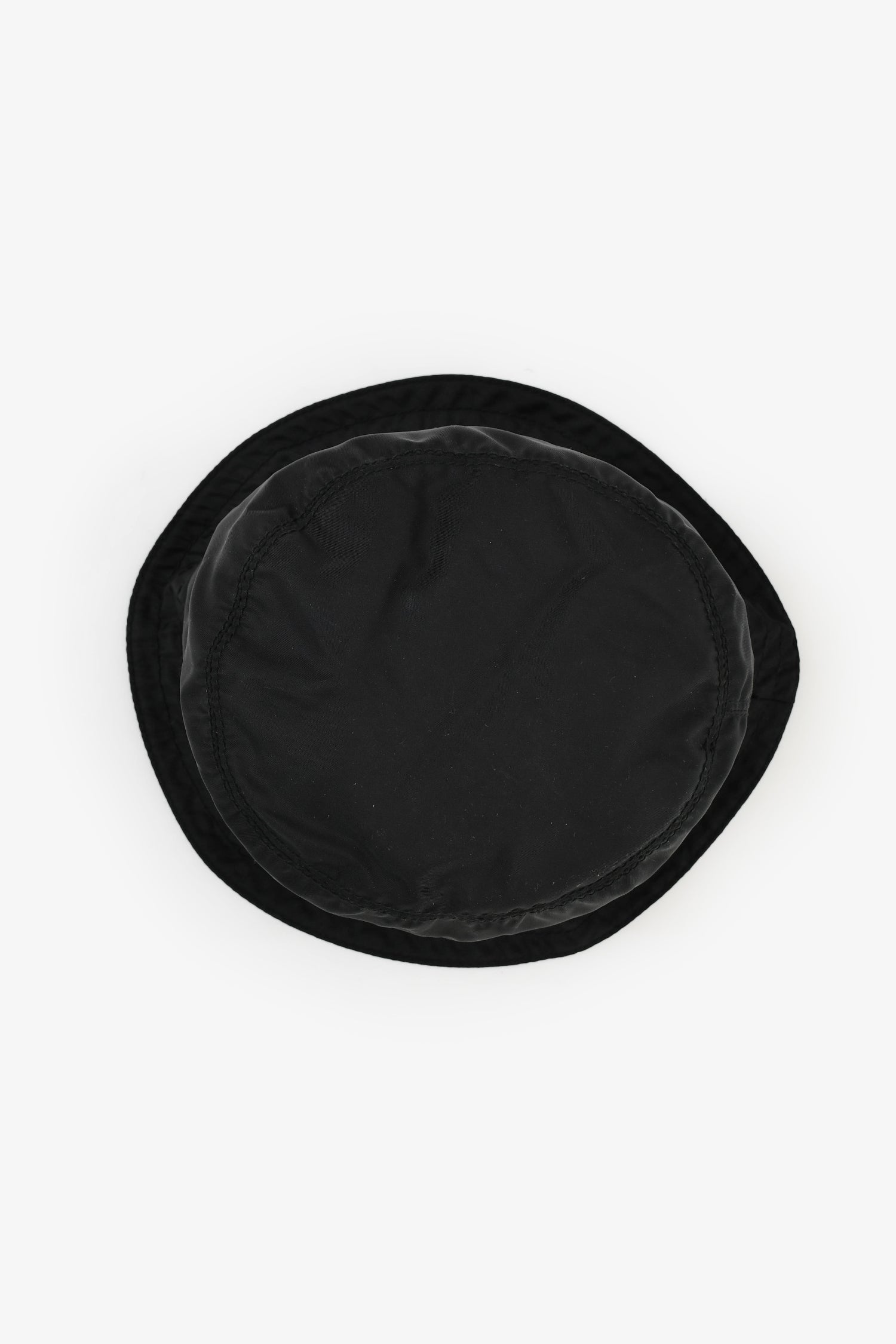 Prada Black Nylon Bucket Hat. Silver-tone hardware. Tonal stitching.