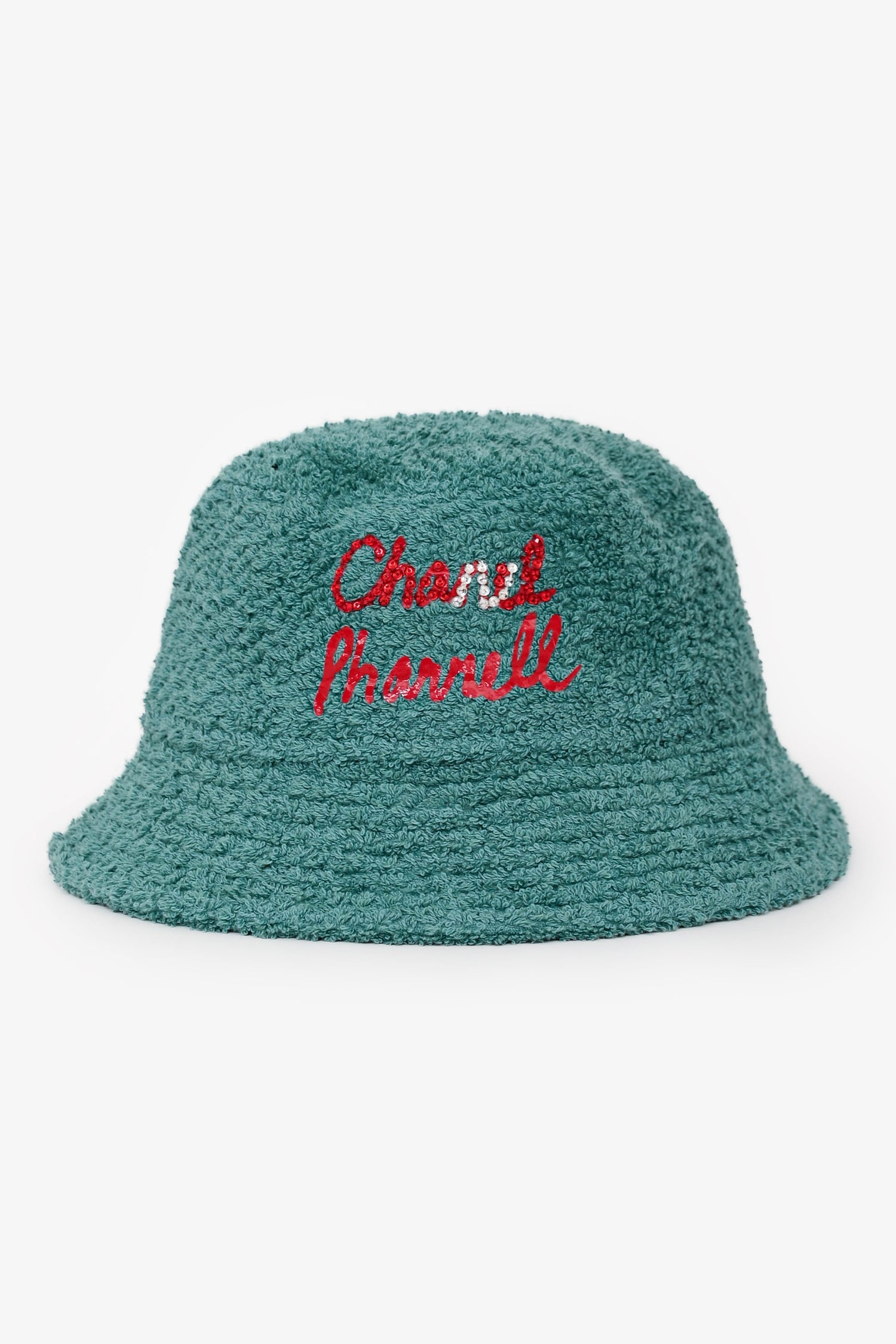 Pre-Loved Chanel™ Green Terry Cloth Sequin/Crystal Embellished Bucket Hat. Tonal stitching.