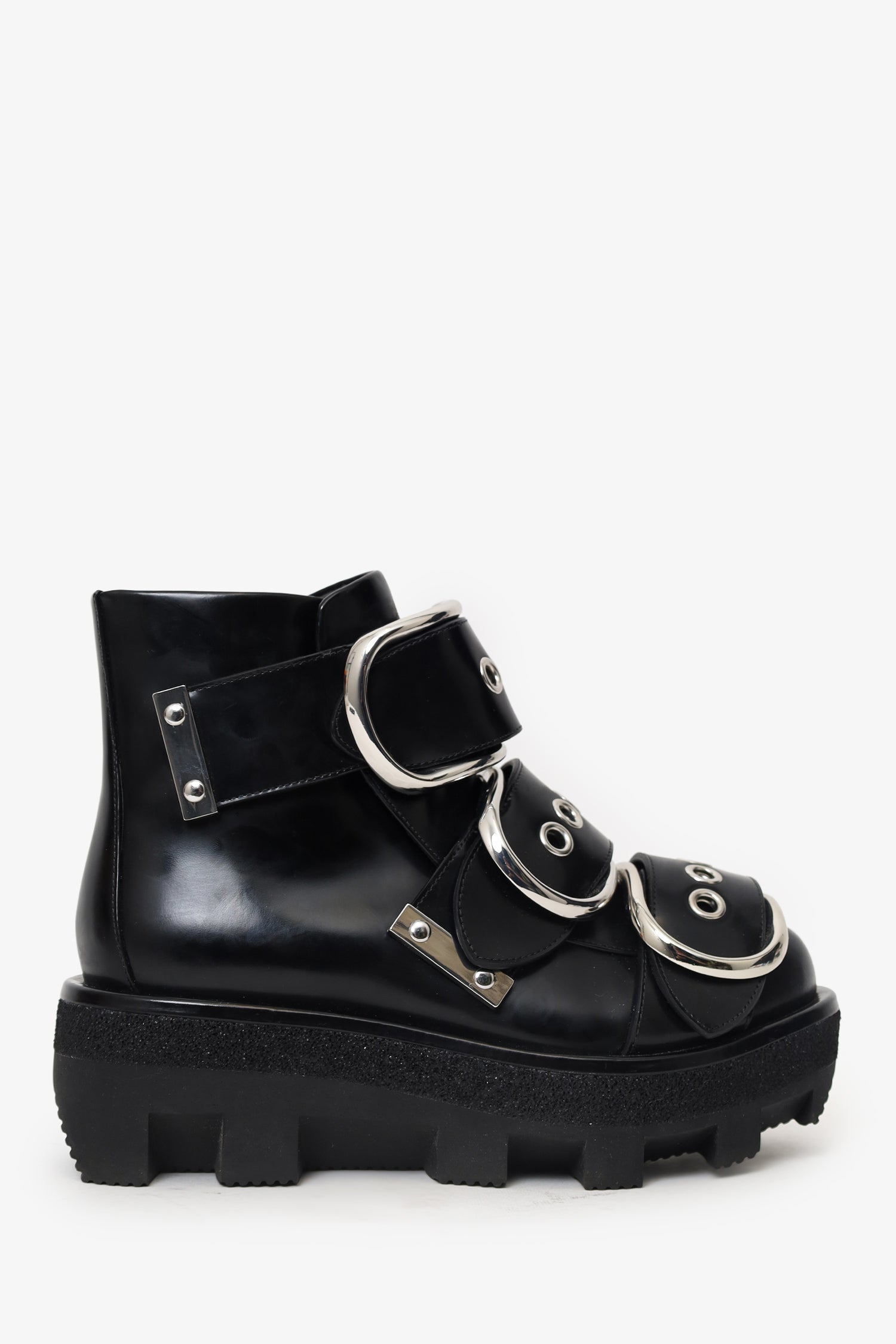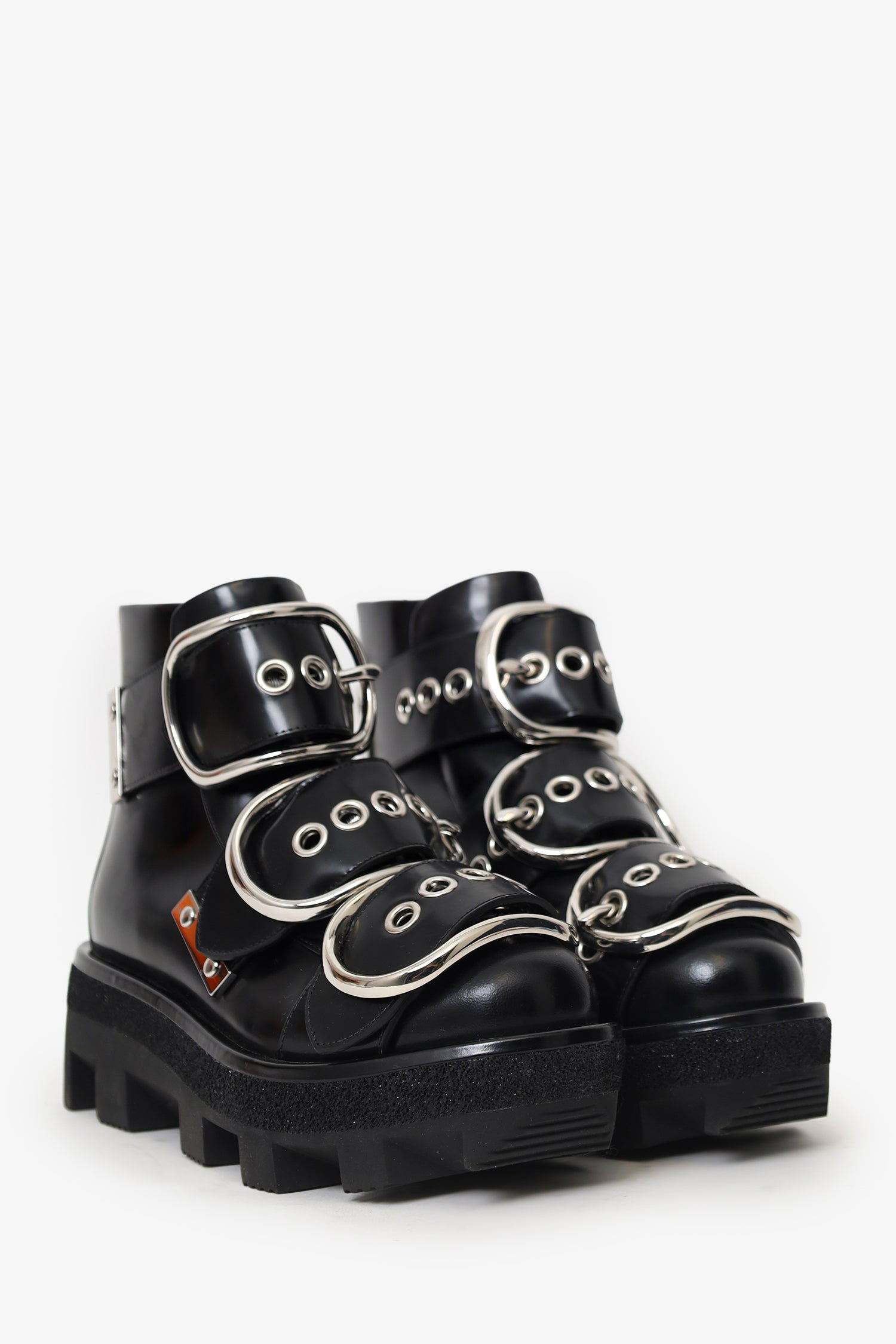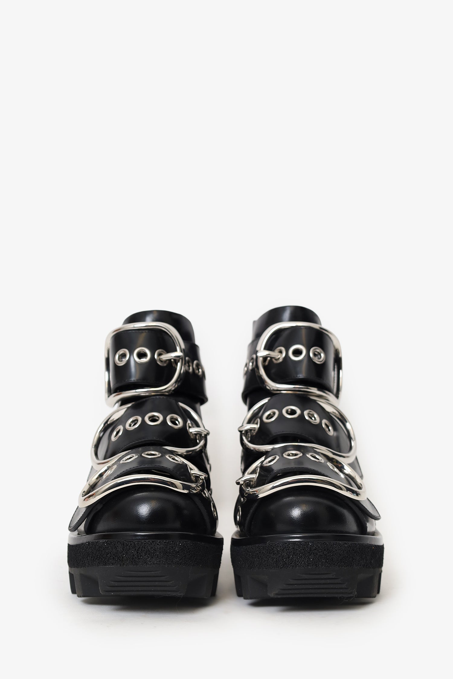 Alexander Wang Black Sloane Triple-buckled Platform Boot Size 37.5