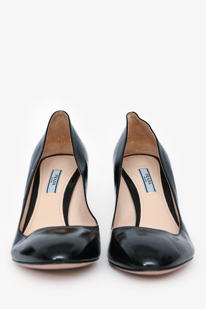 Prada Black Coated Saffiano Leather Pump Heels Size 40.5