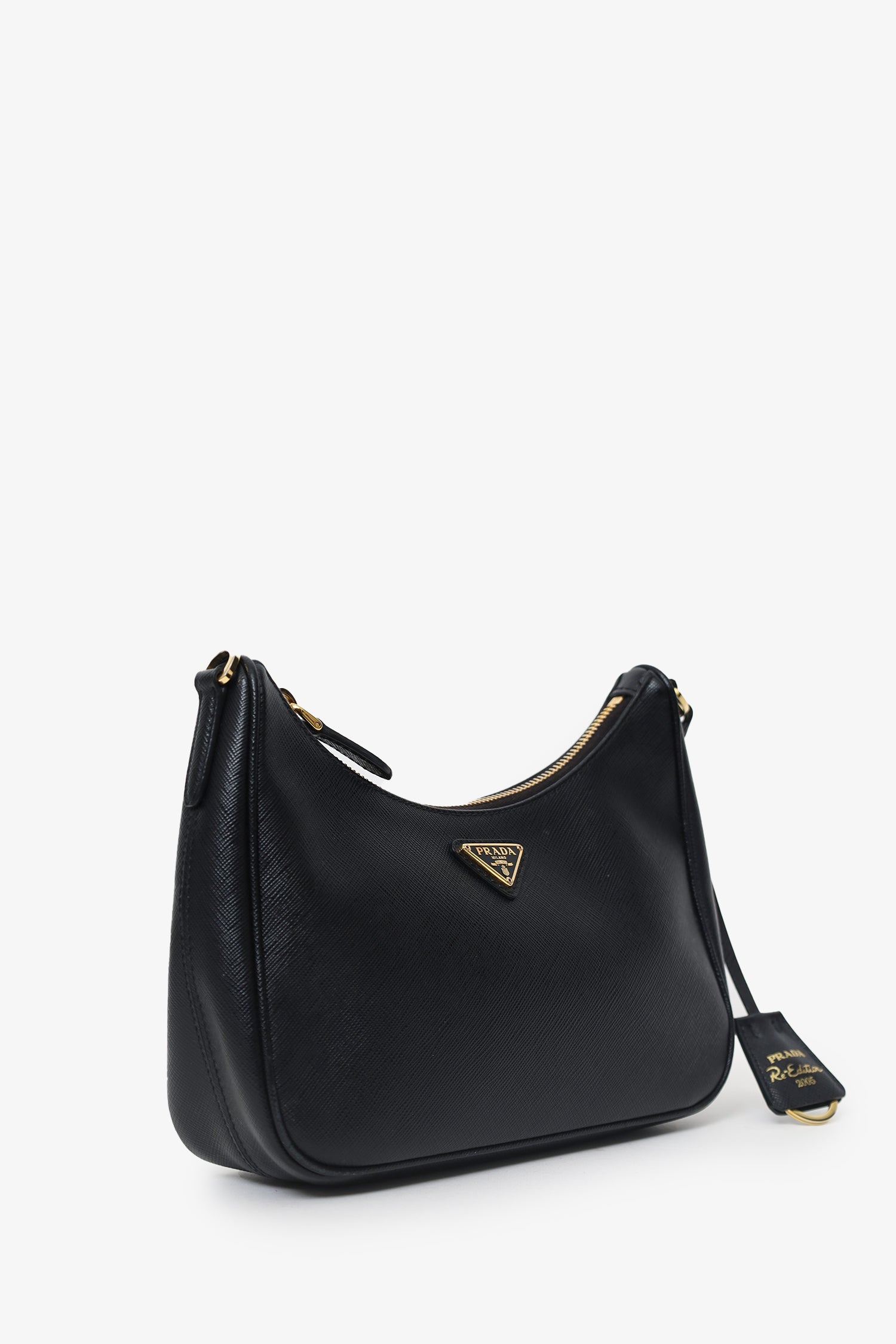 Prada Black Saffiano Leather Re-Edition 2005 Shoulder Bag with Strap