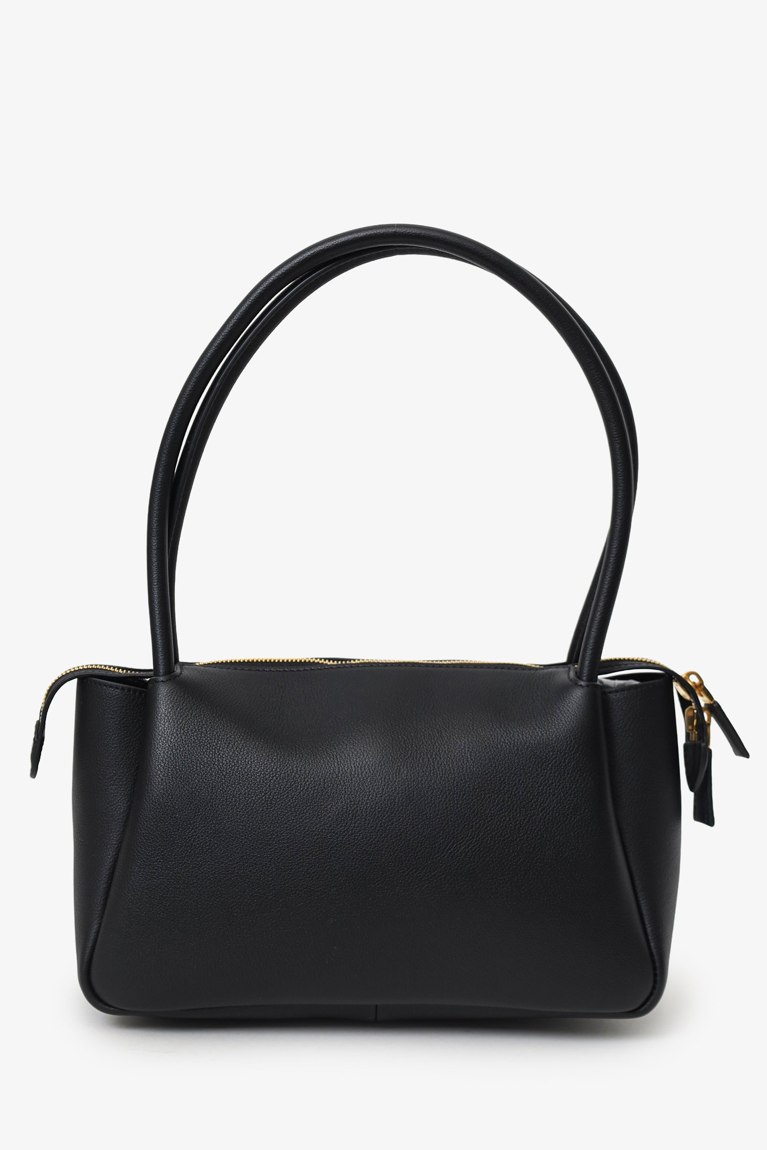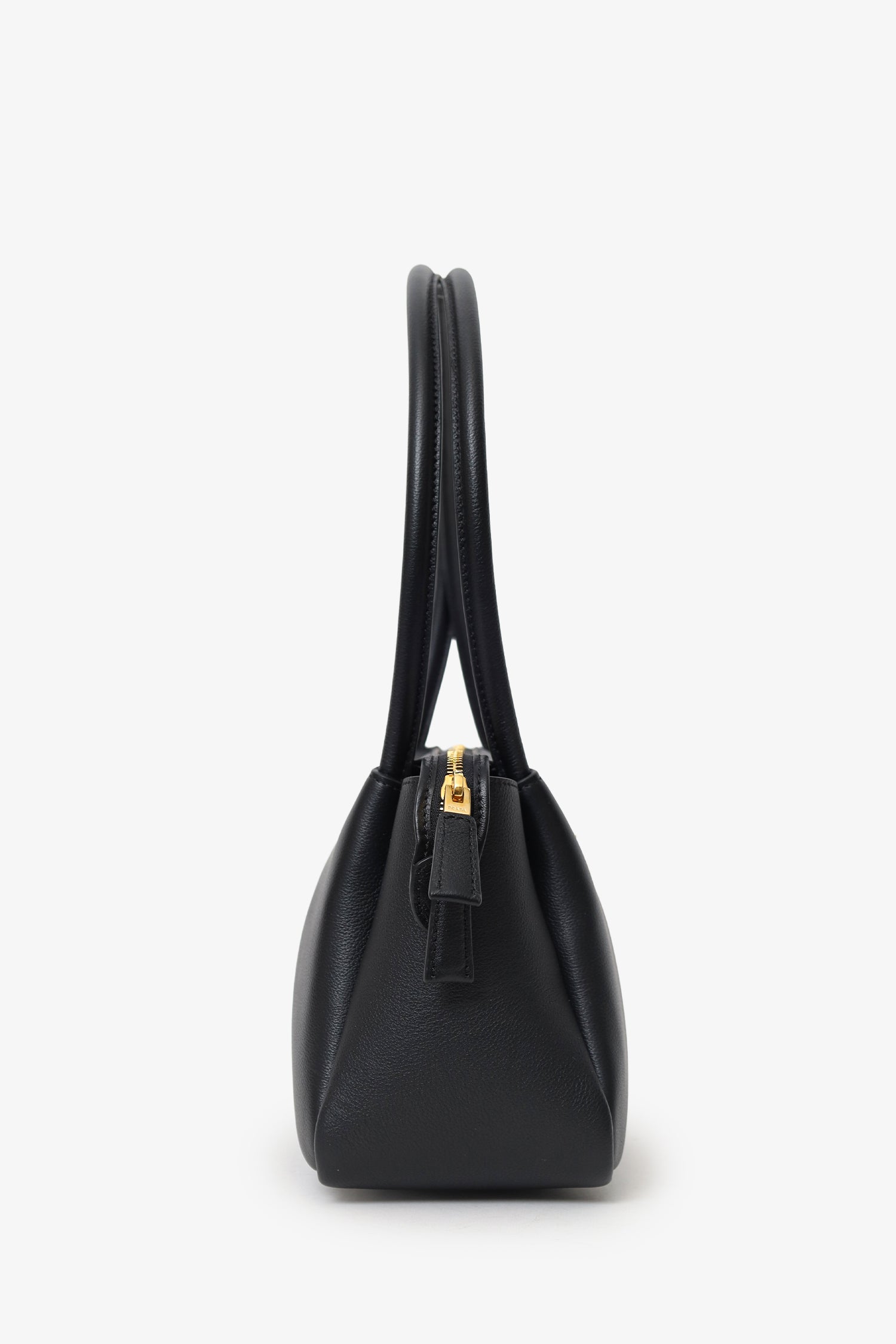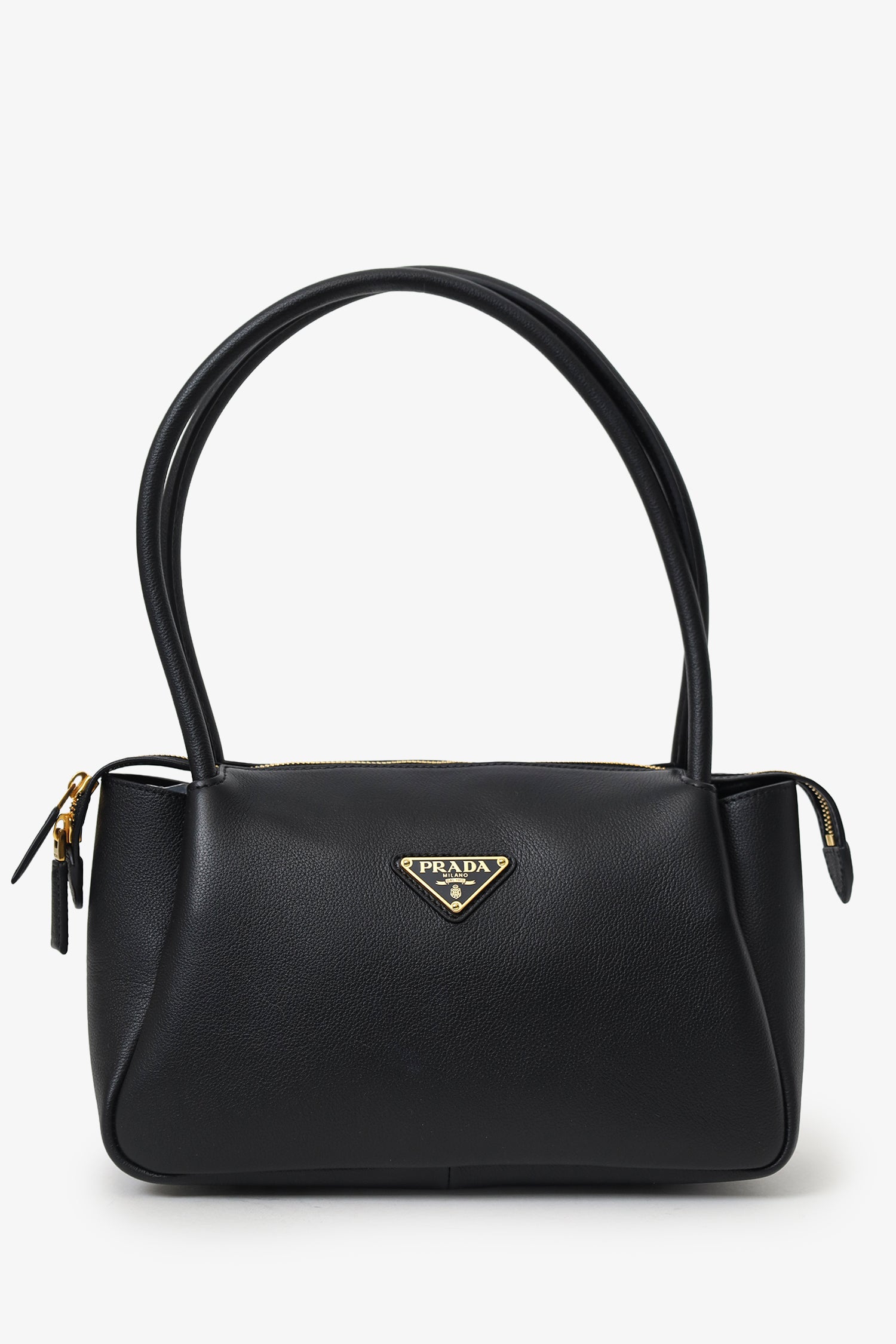 Prada Black Soft Grain Calfskin Medium Darling Top Handle Bag. Top zip closure. Twin top handles. 2 interior wall slip pockets. Gold-tone hardware. Tonal stitching.