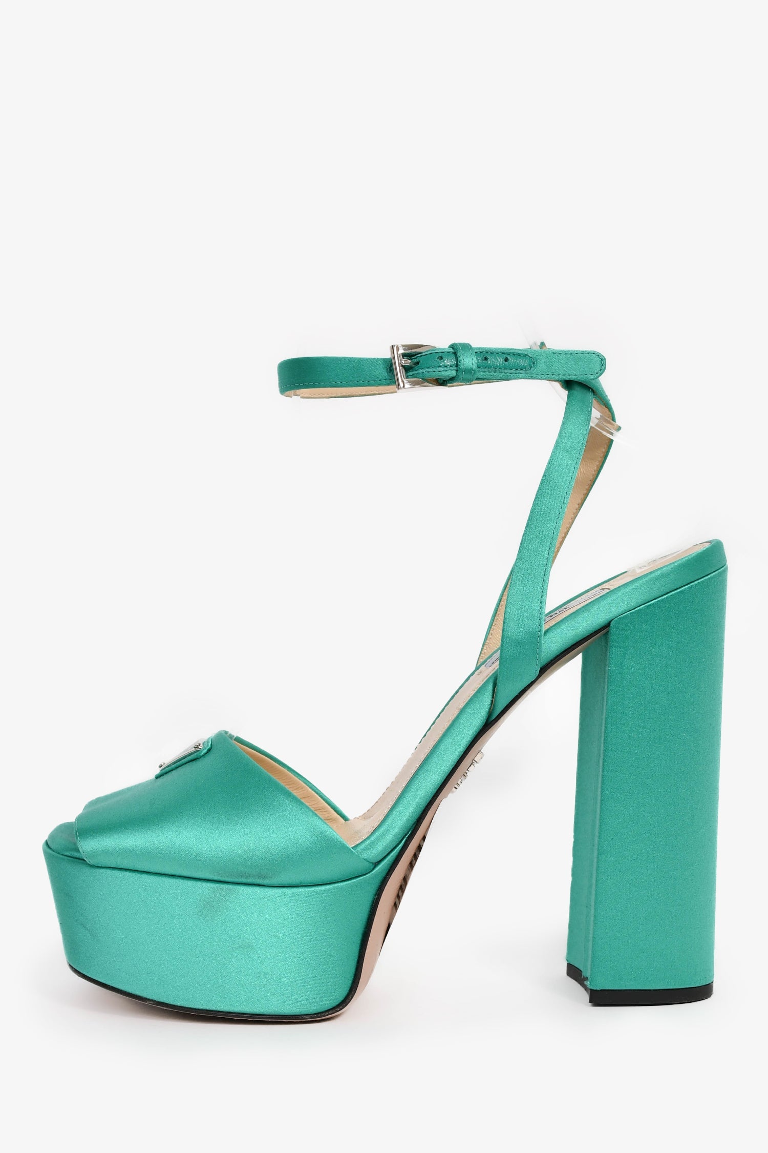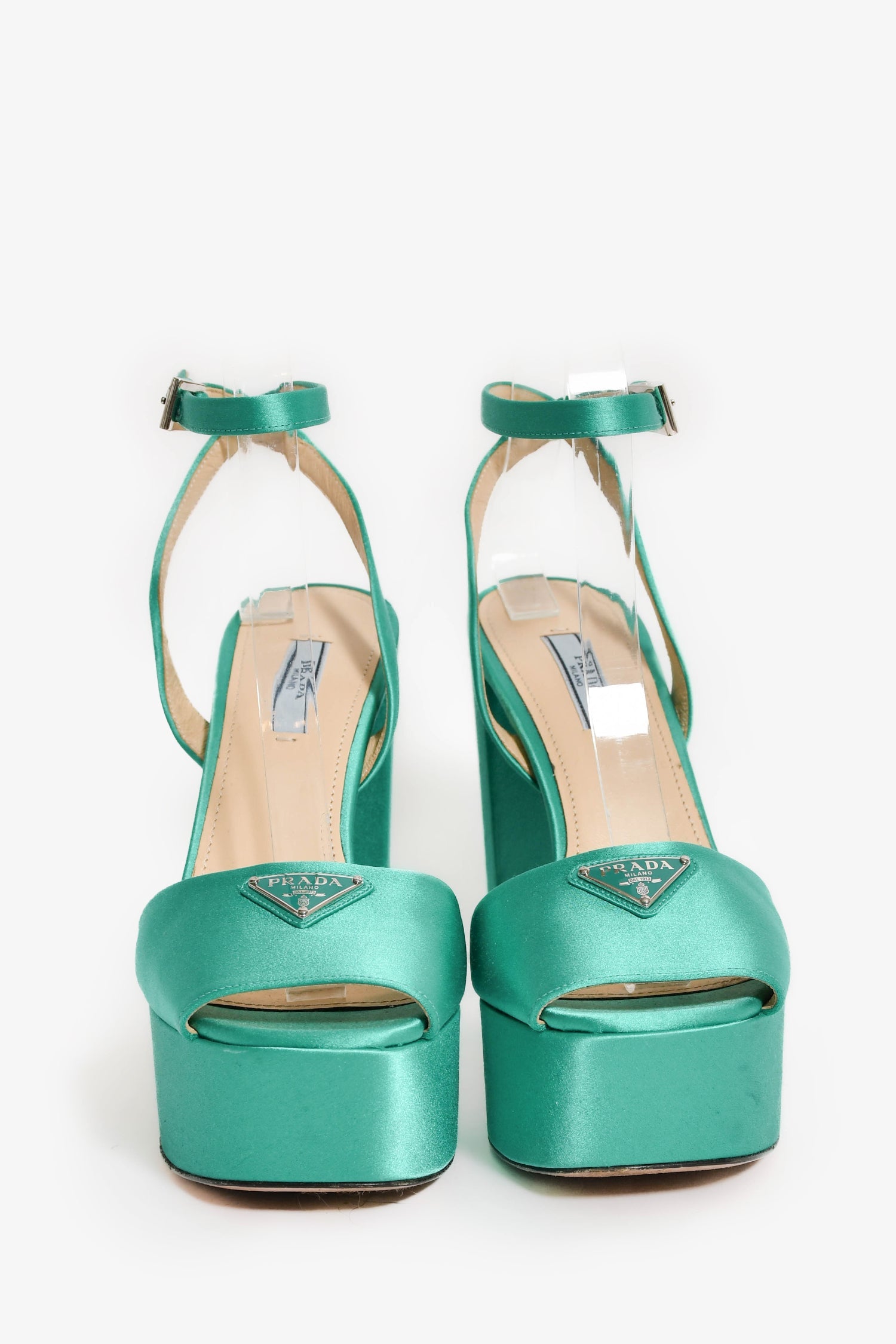 Prada Green Satin Triangle Heeled Platform Heels Size 38.5