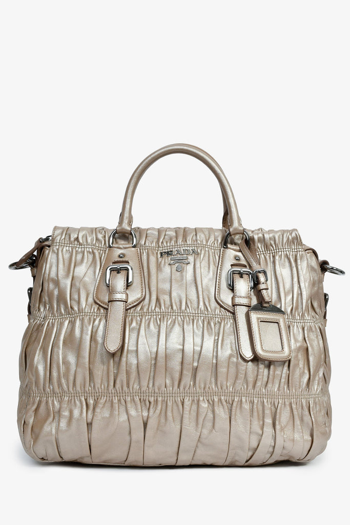 Prada Gold Metallic Nappa Gaufre Leather Top Handle Bag With Strap