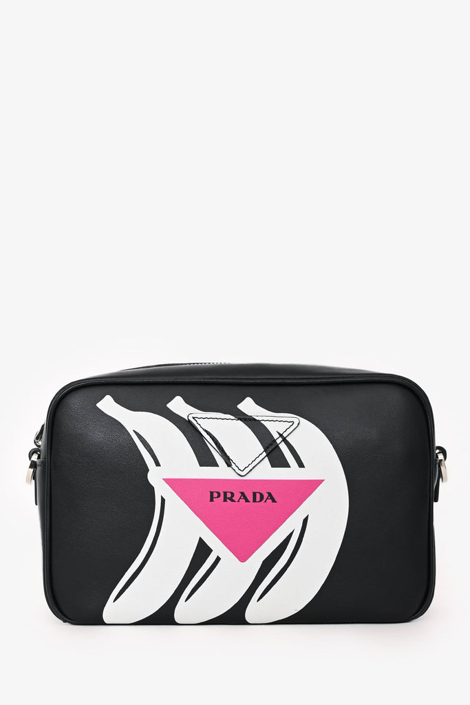 Prada Black Leather Banana Printed Camera Crossbody Bag