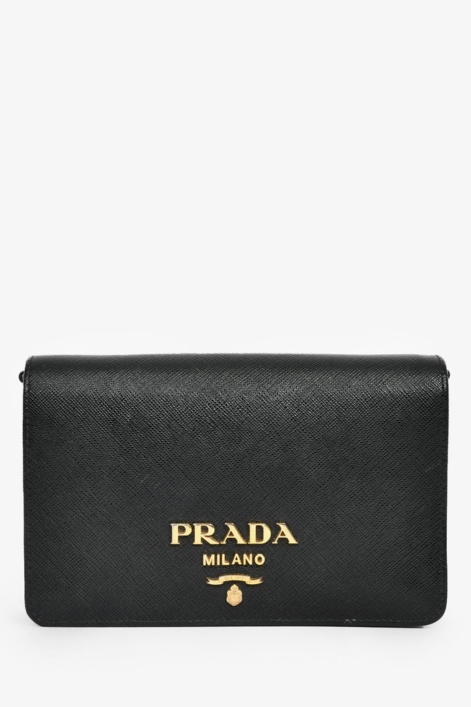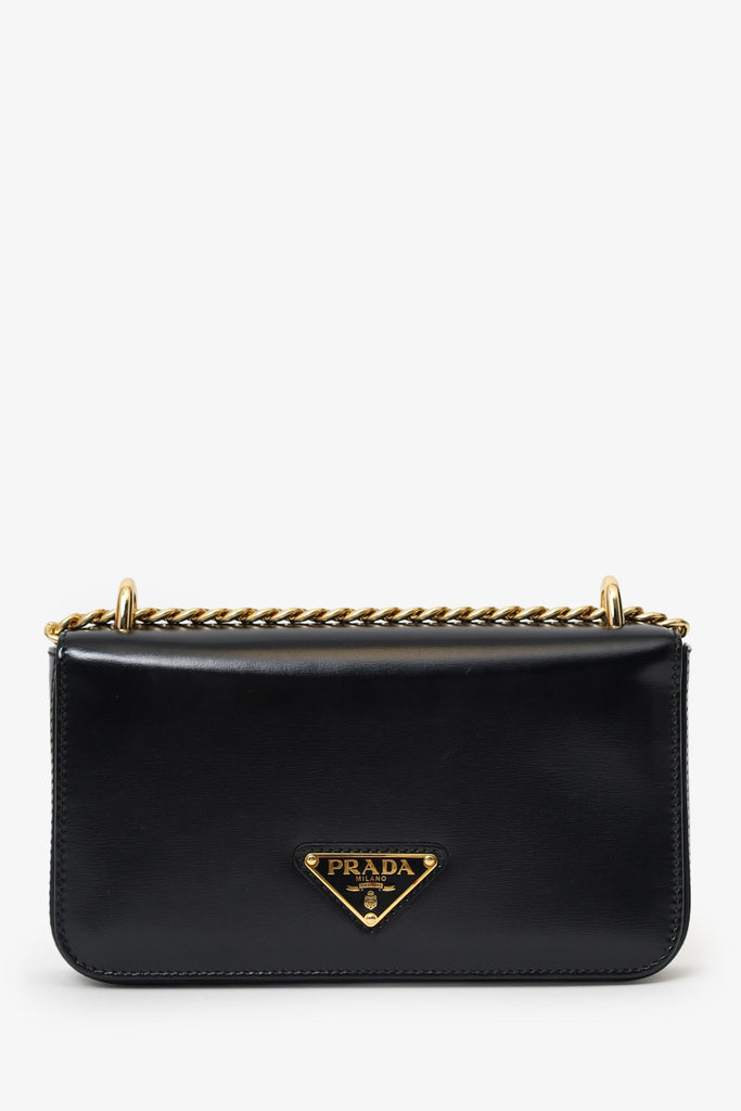 Prada Black Leather Triangle Logo Chain Shoulder Bag