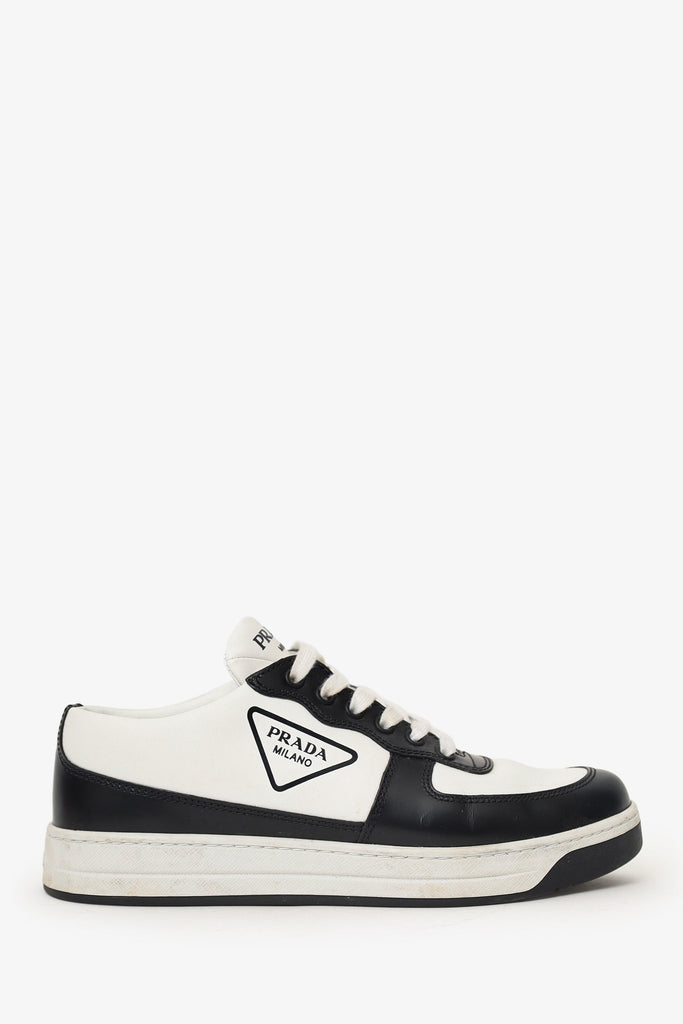 Prada Black/White Leather Logo Sneakers Size 37.5