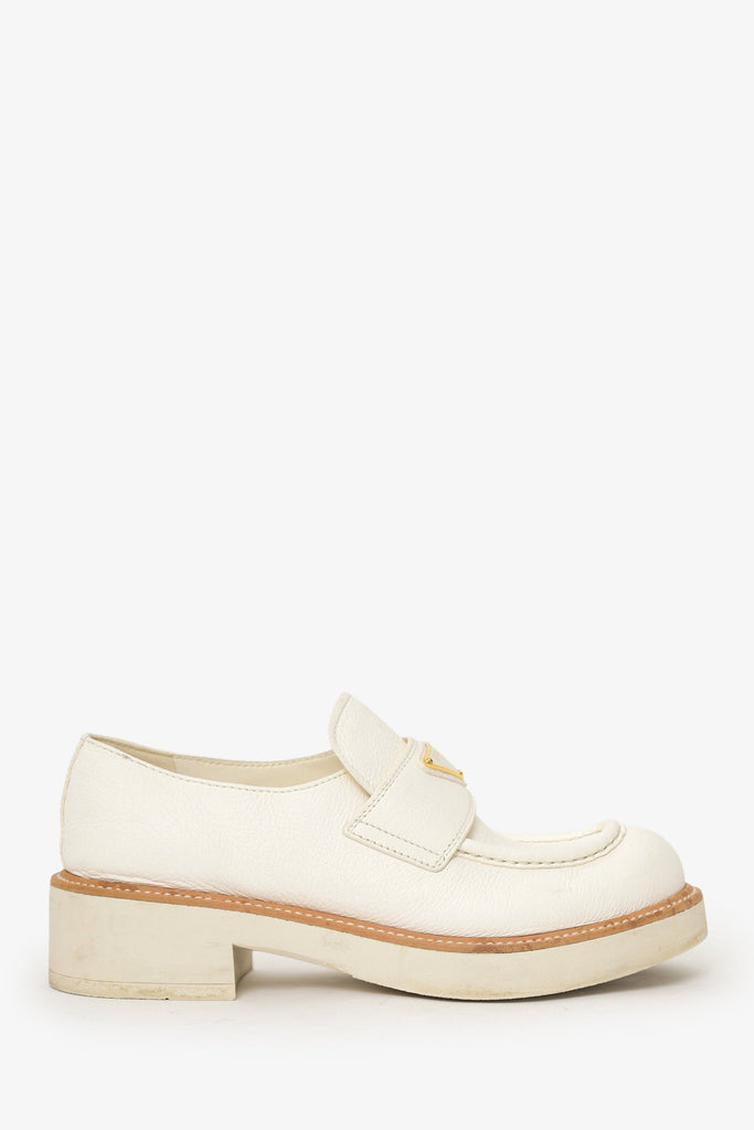 Prada Cream/Tan Brushed Leather Loafers Size 38