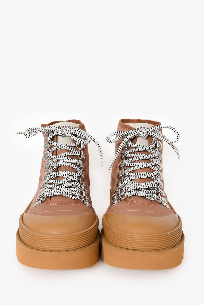 Proenza Schouler Brown/White Nylon Lug Boots. Pull-on. Round toe. Lace-up closure.