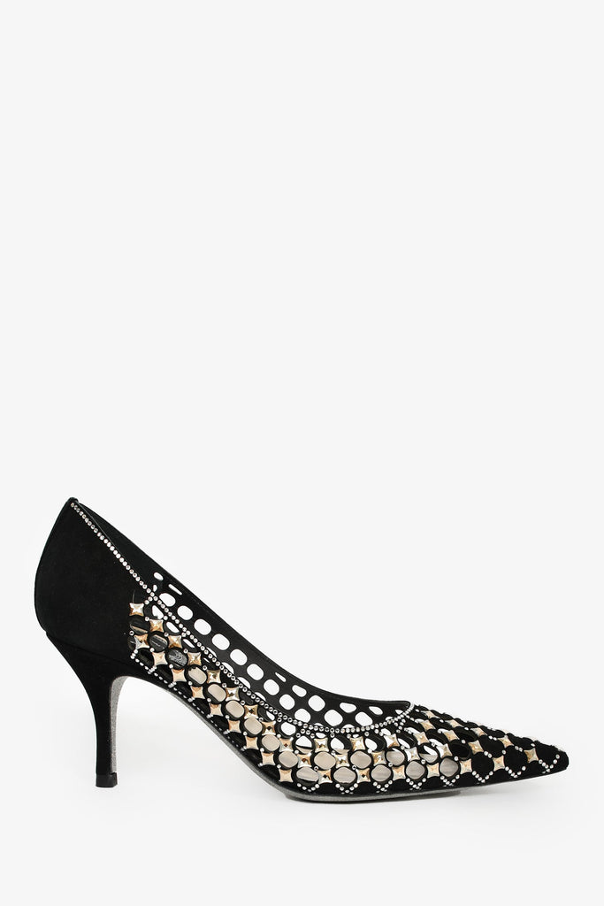 Rene Caovilla Black Suede Crystal Embellished Heels Size 35