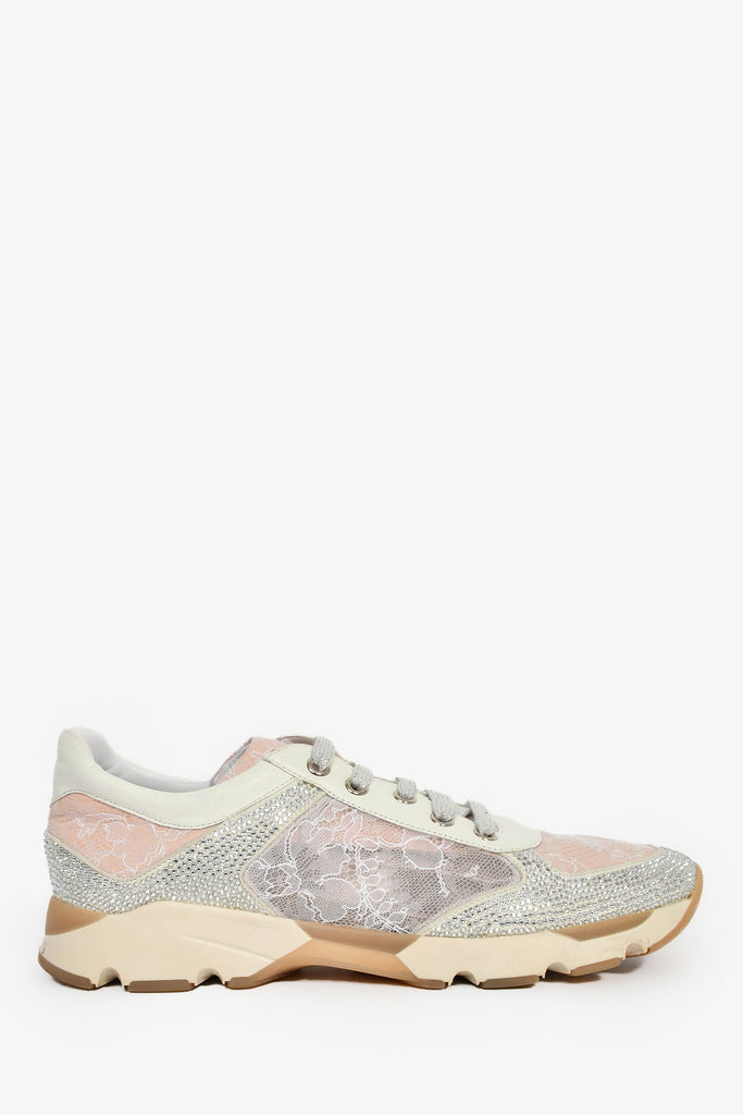 Rene Caovilla Pink/Silver Lace Crystal Sneakers sz 37