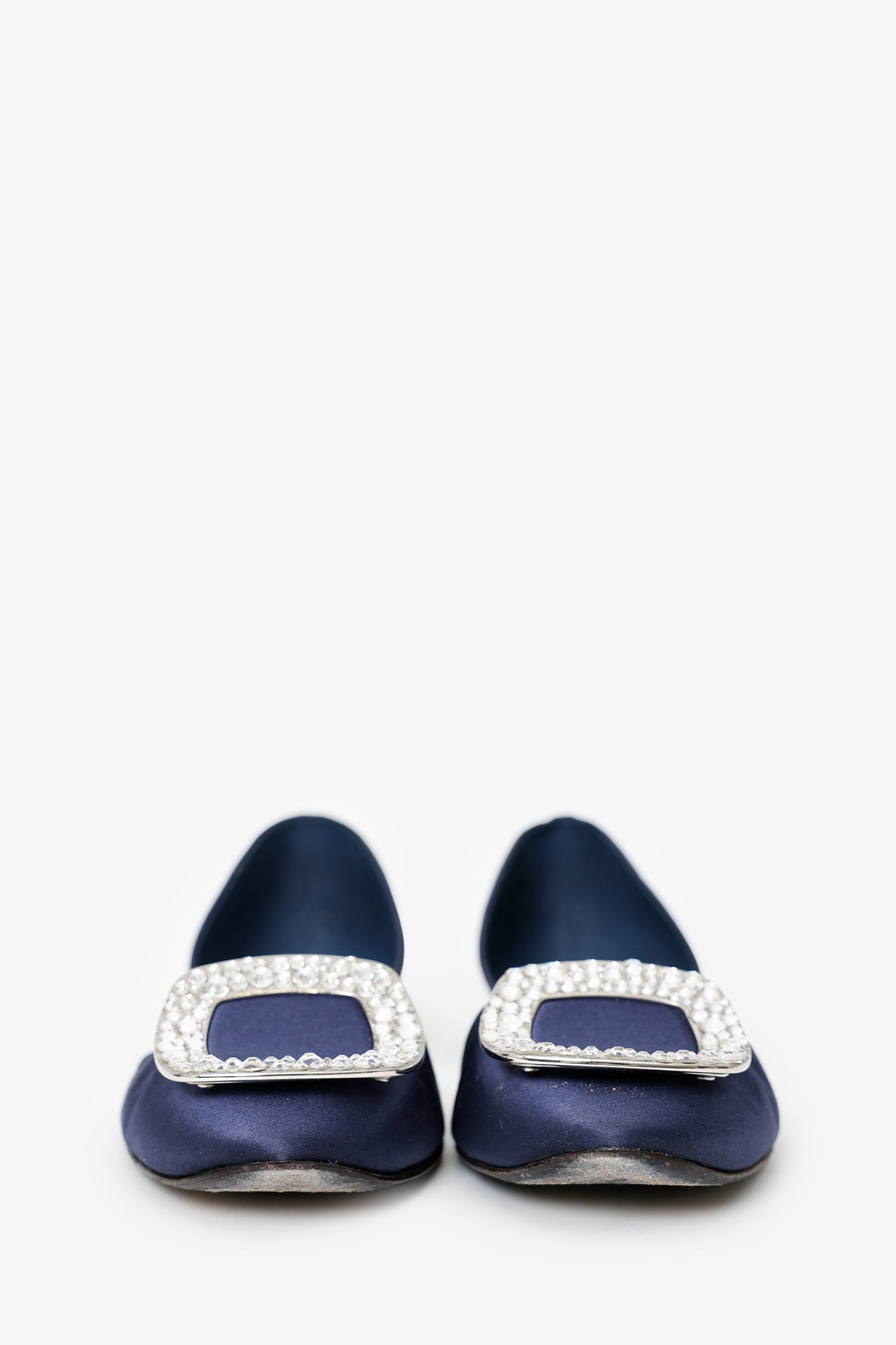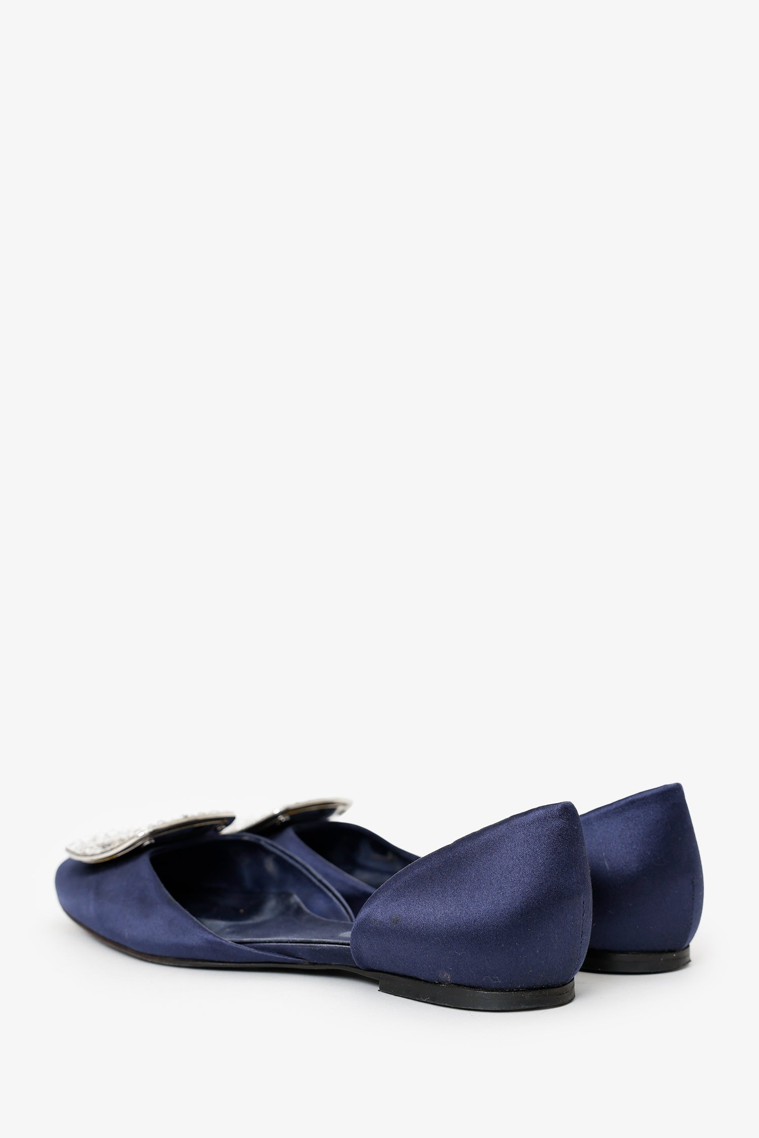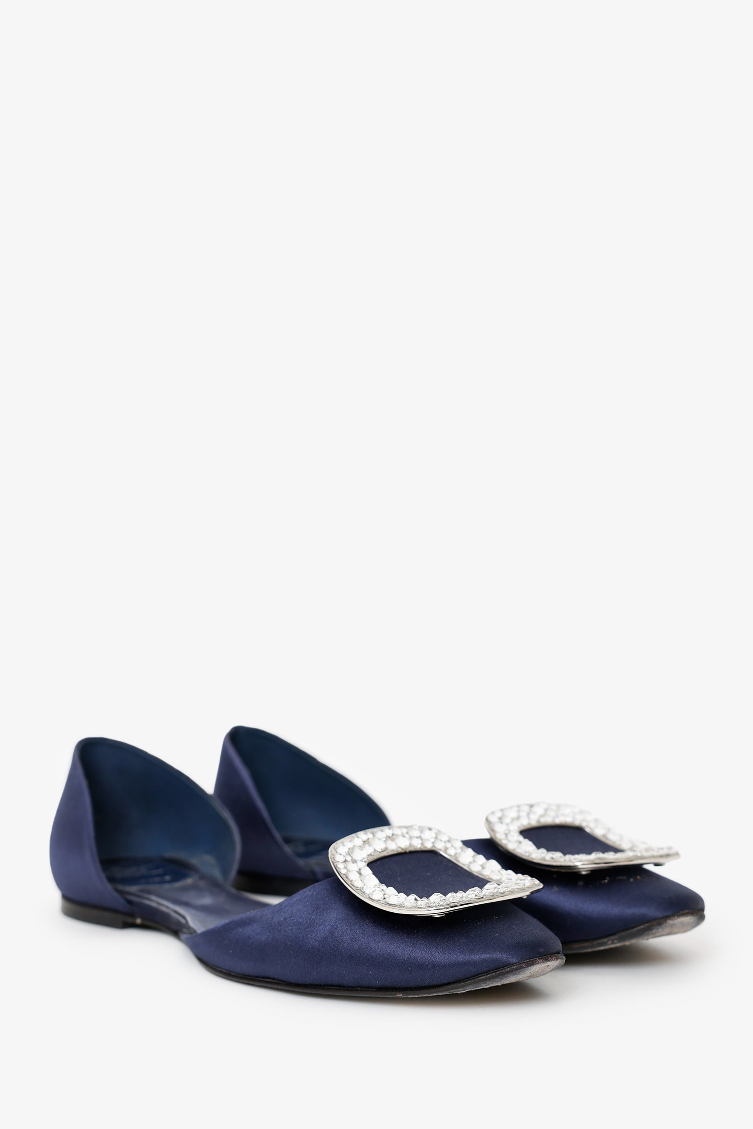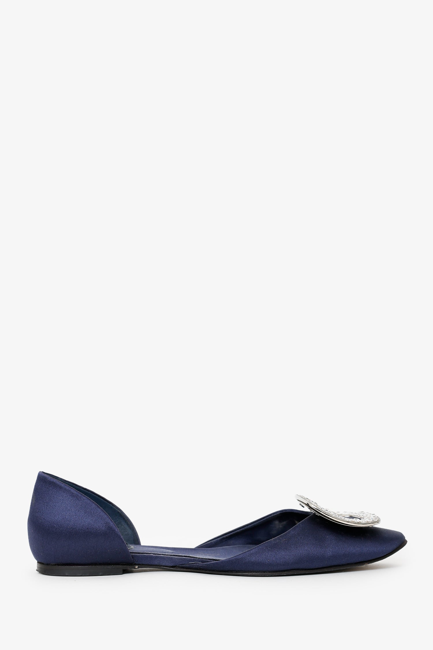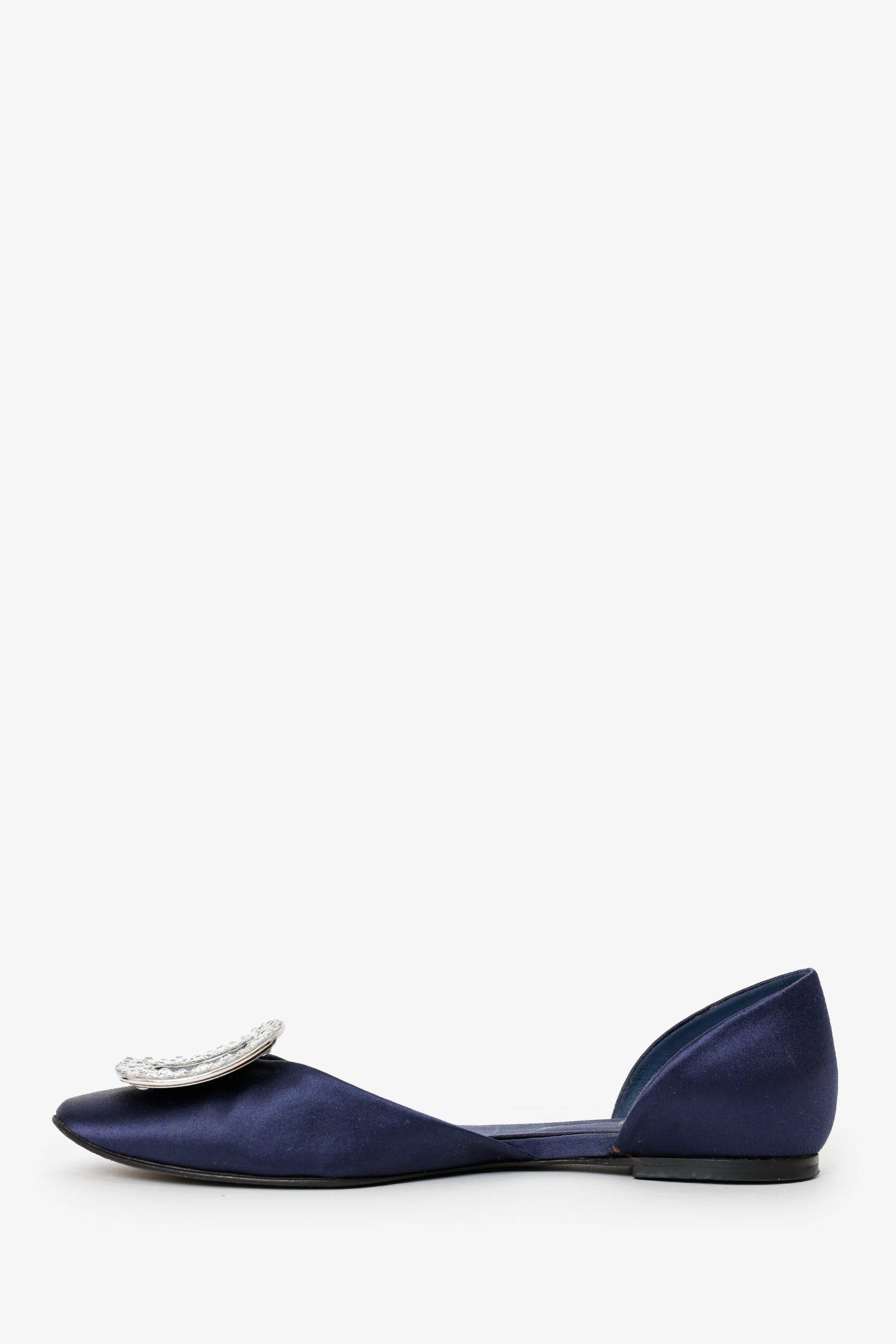Roger Vivier Satin Chips D'Orsay Flat. Round-toe. Embellishment at front toebox. Silver-tone hardware. Tonal stitching.