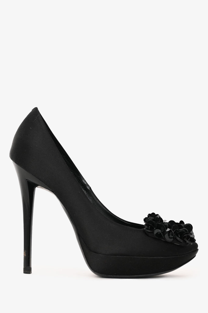 Roger Vivier Black Satin Sequin Embellished Pumps Size 36.5