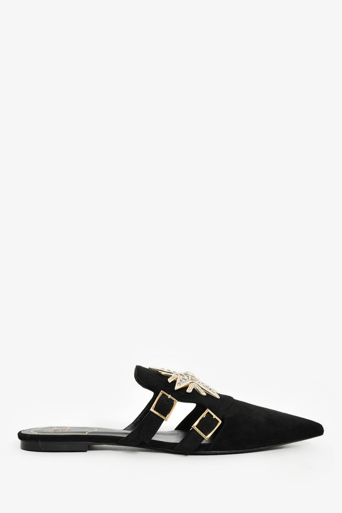 Roger Vivier Black Suede Leather Crystal Embellished Mules Size 36.5