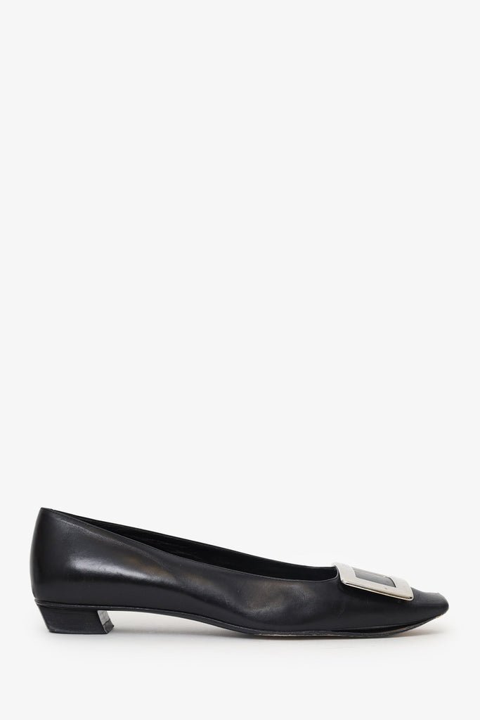 Roger Vivier Black Leather Square Toe Flats Size 8.5