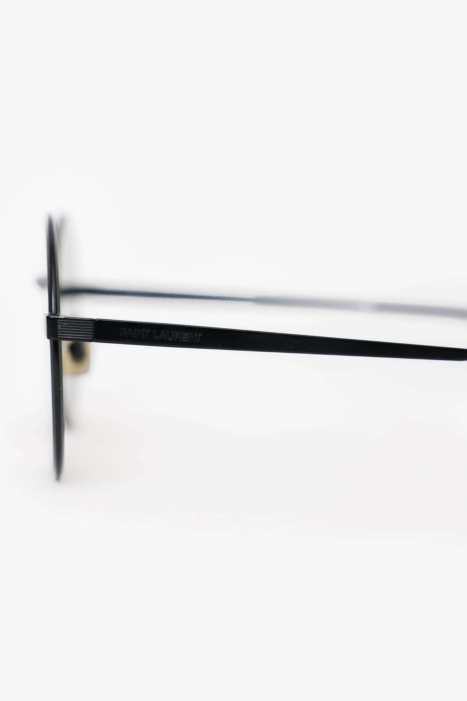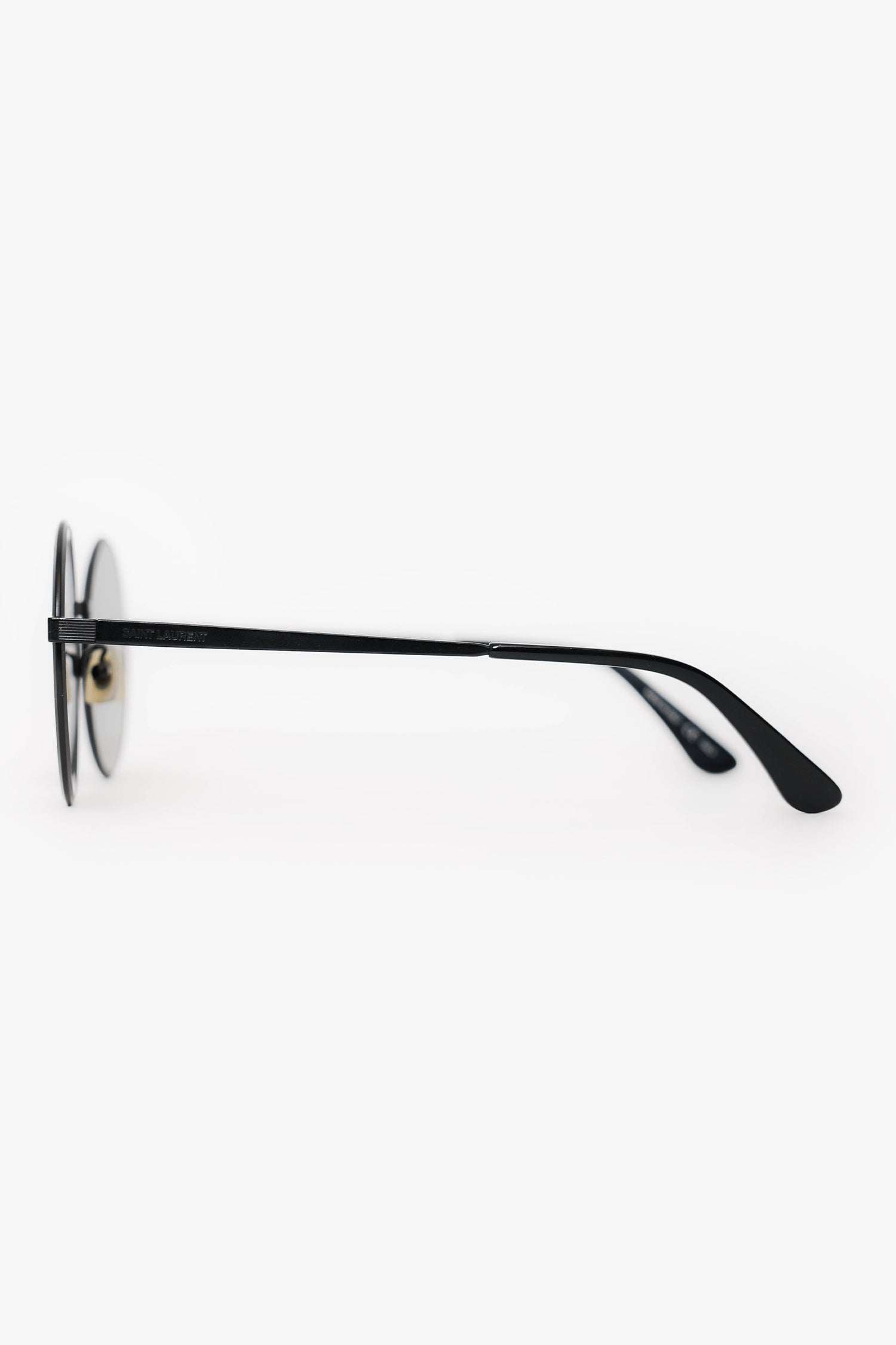 Saint Laurent Black Frame Round Sunglasses. Adjustable nose pads. Tonal hardware.