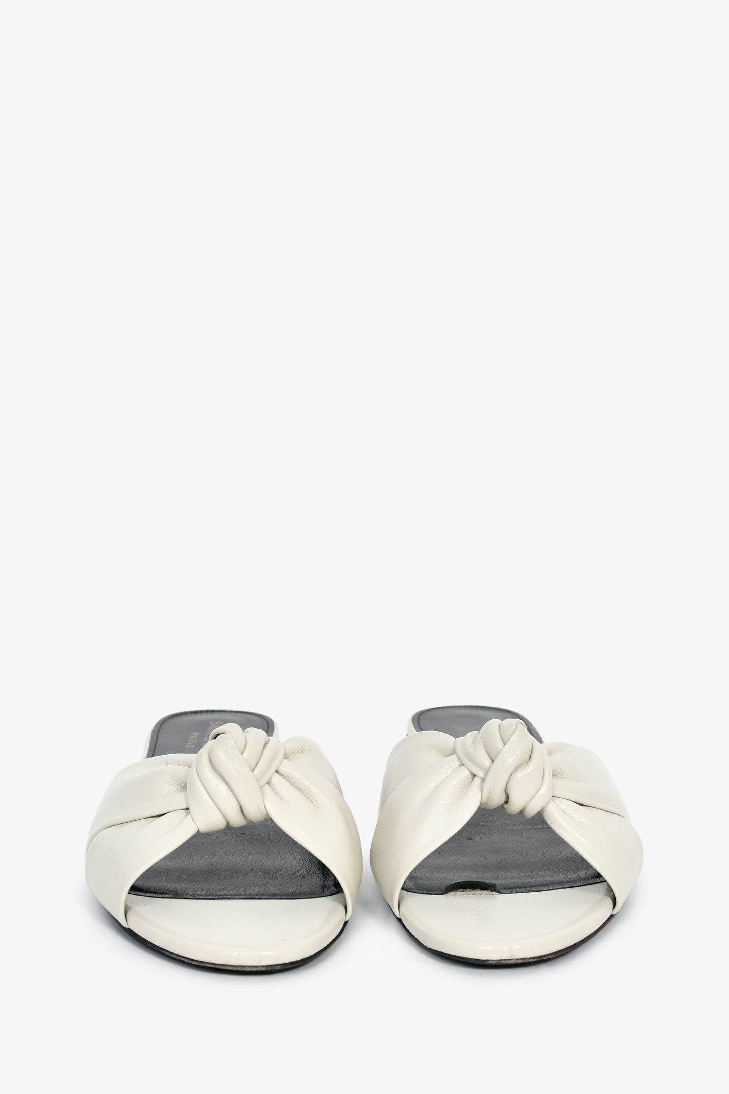 Saint Laurent White Leather Knot Flat Sandals Size 39