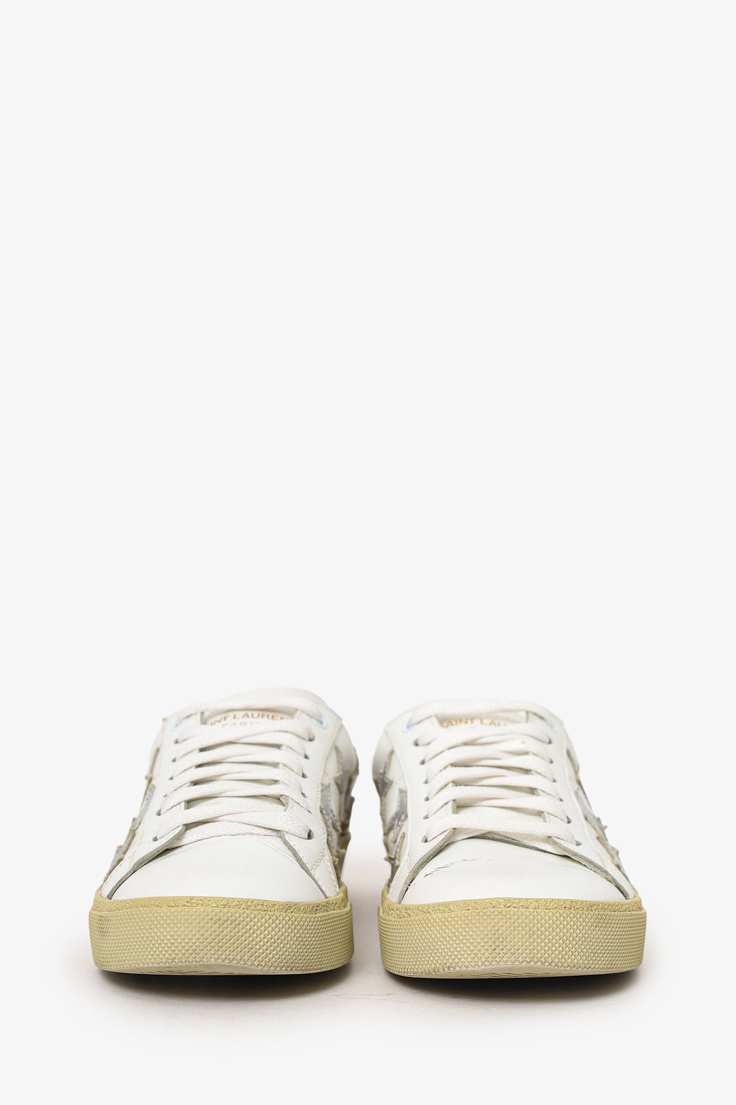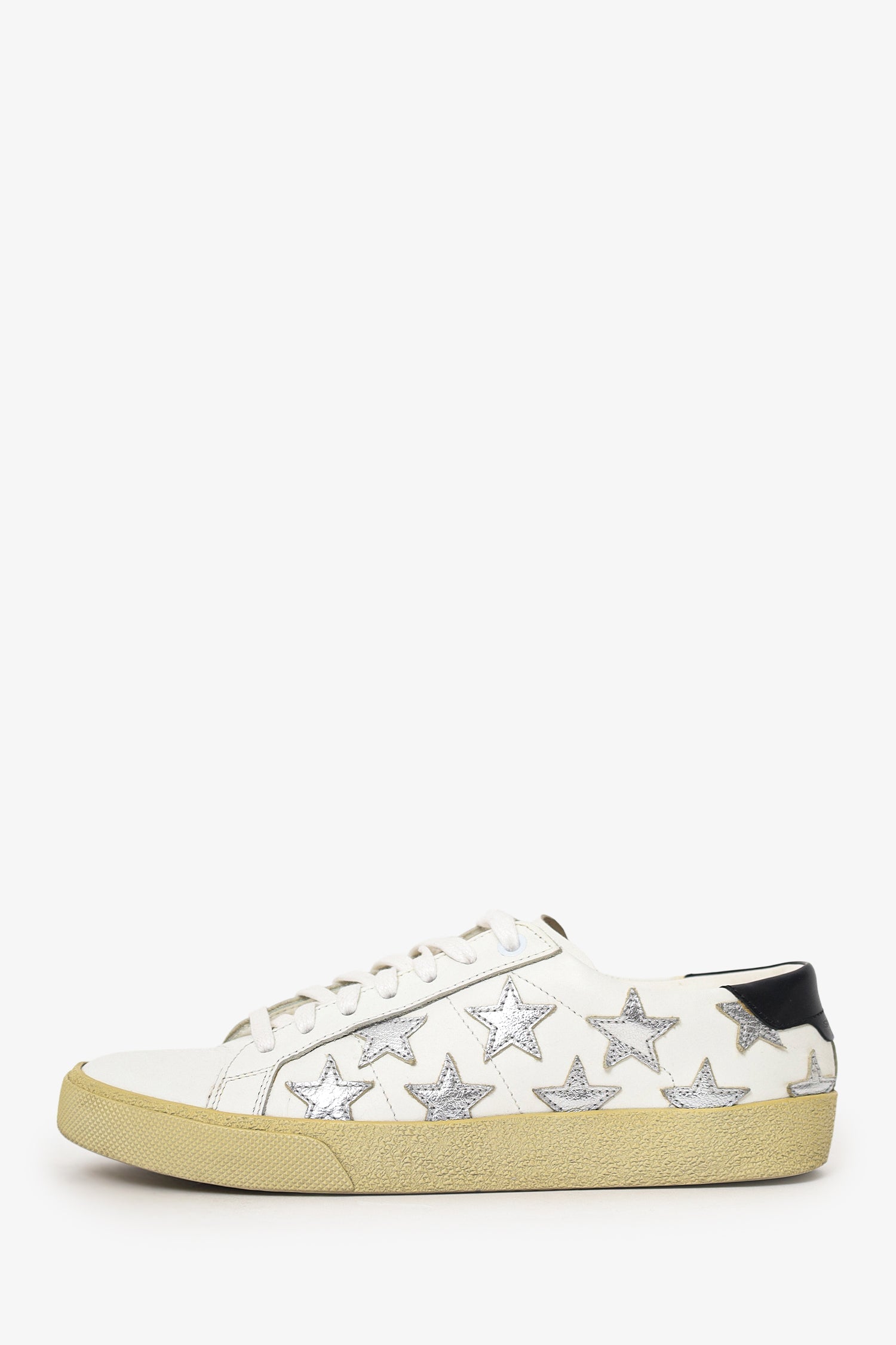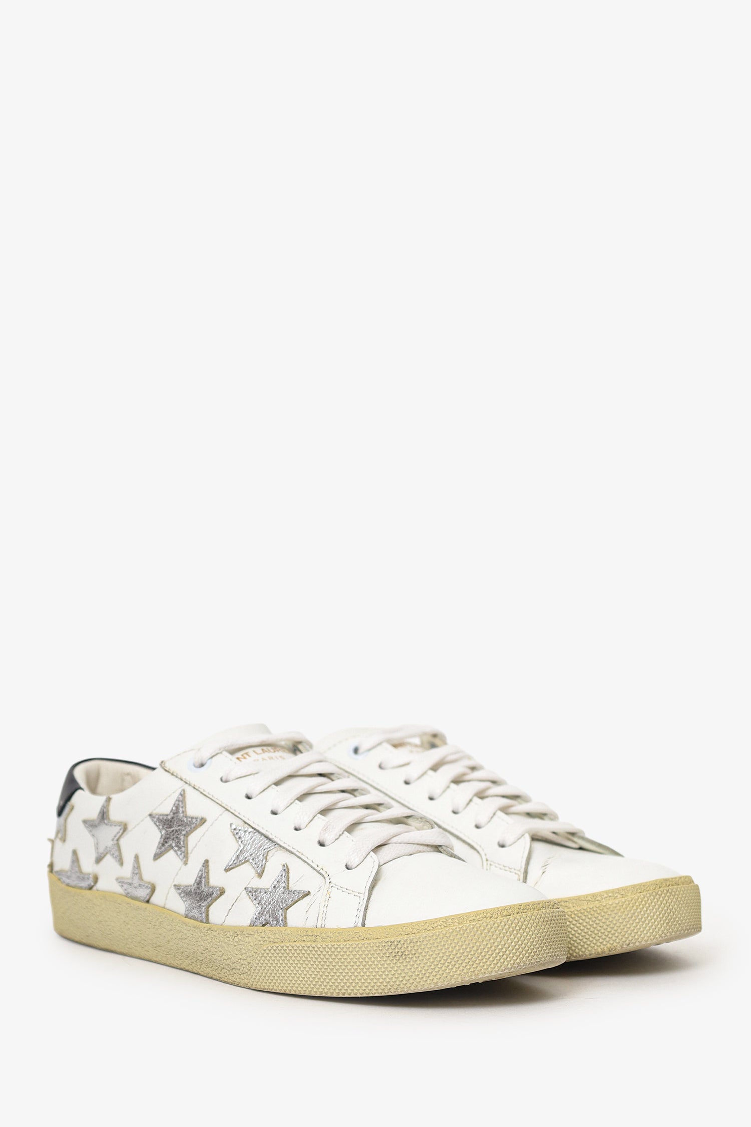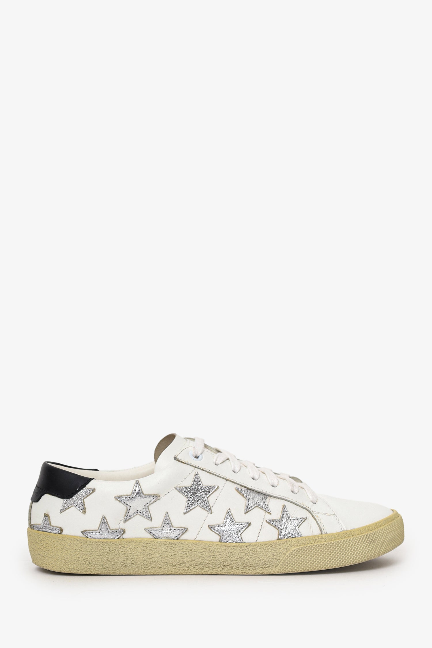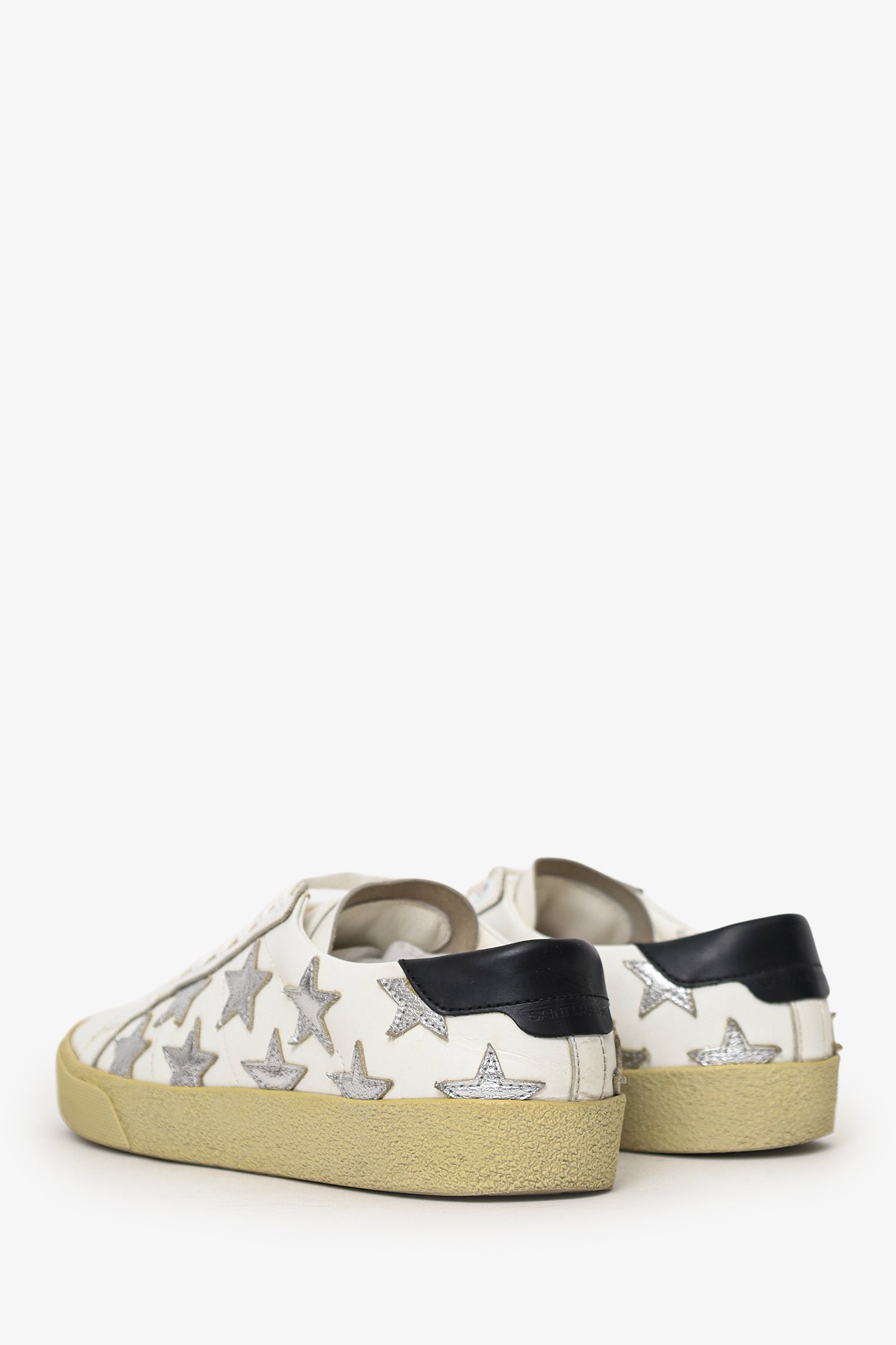 Saint Laurent White/Silver Leather Star Low Top Sneakers Size 37