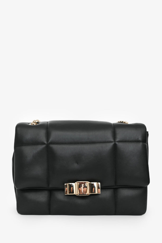Salvatore Ferragamo Black Quilted Leather Vera Bow Shoulder Bag