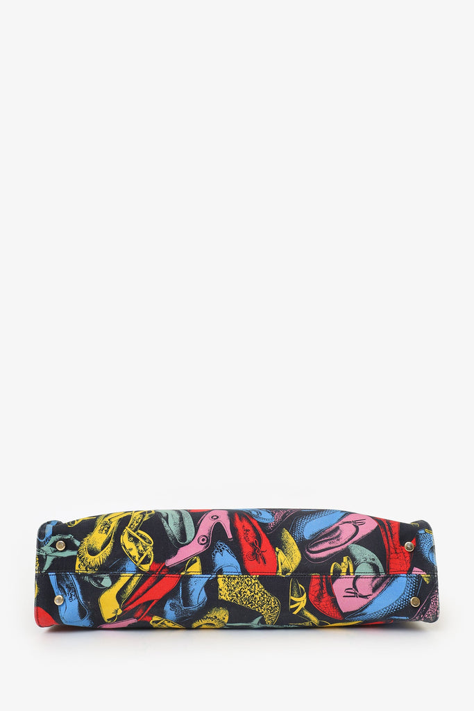 Salvatore Ferragam Black/Multicolour Canvas Shoe Printed Shopping Tote