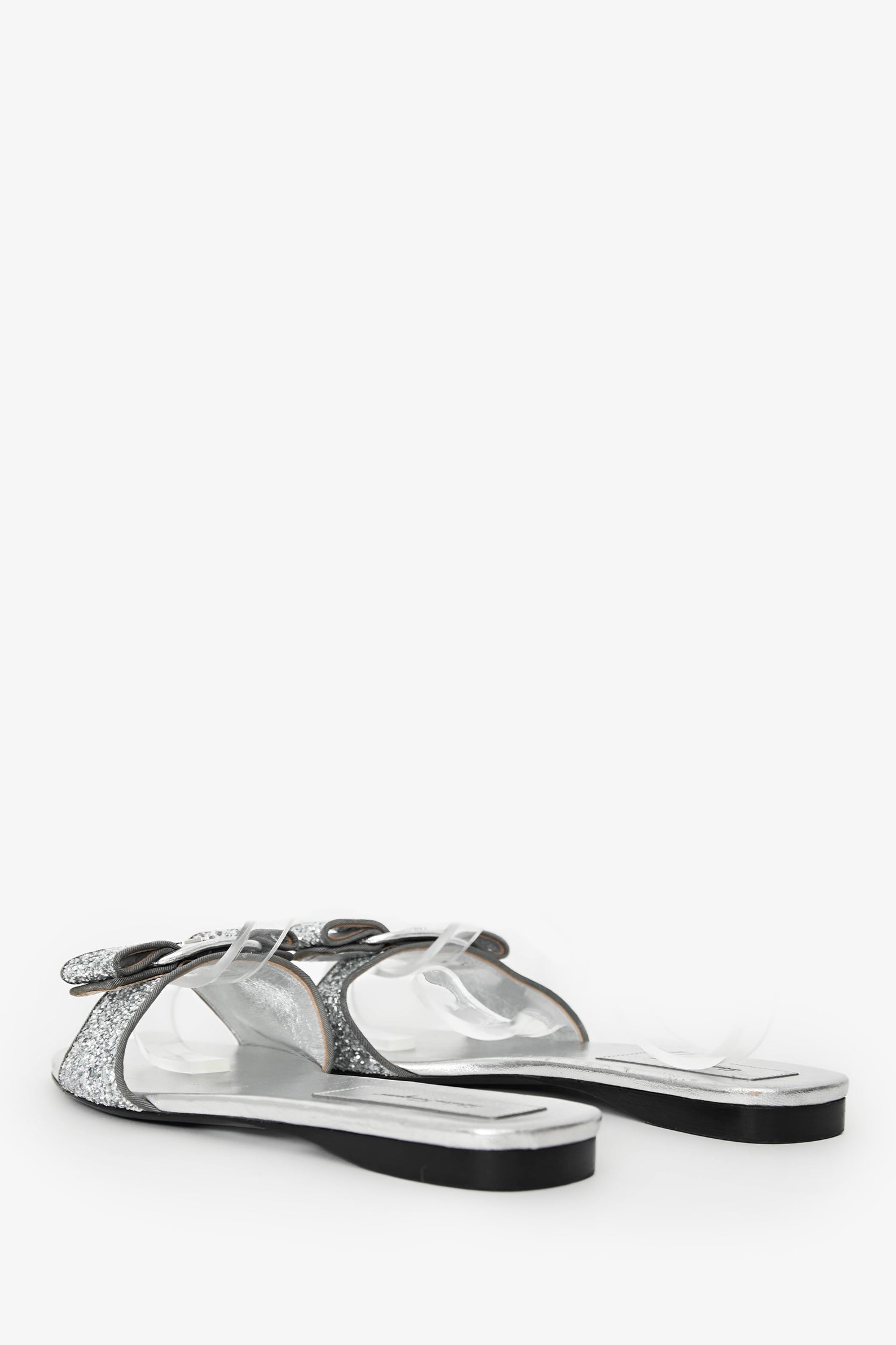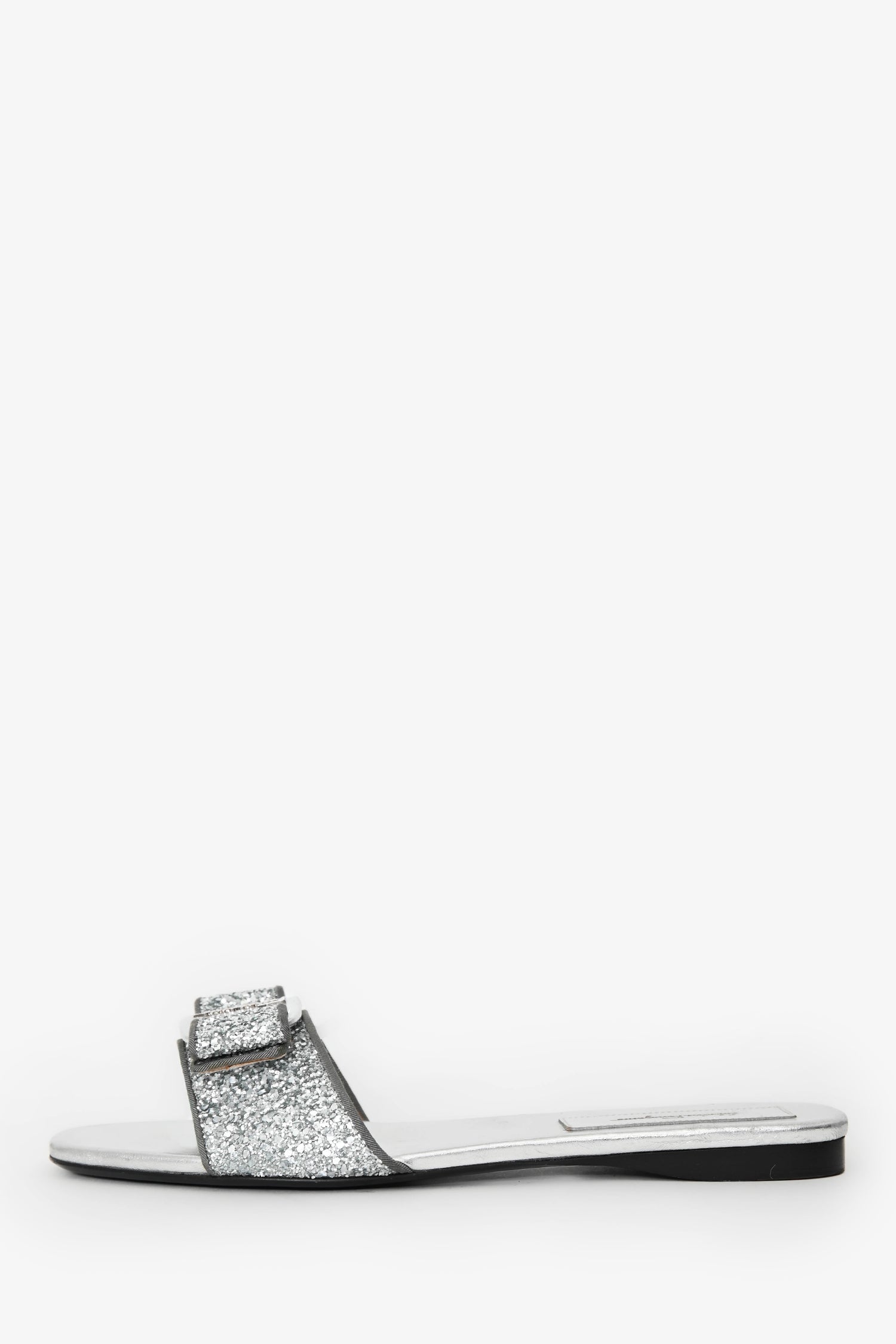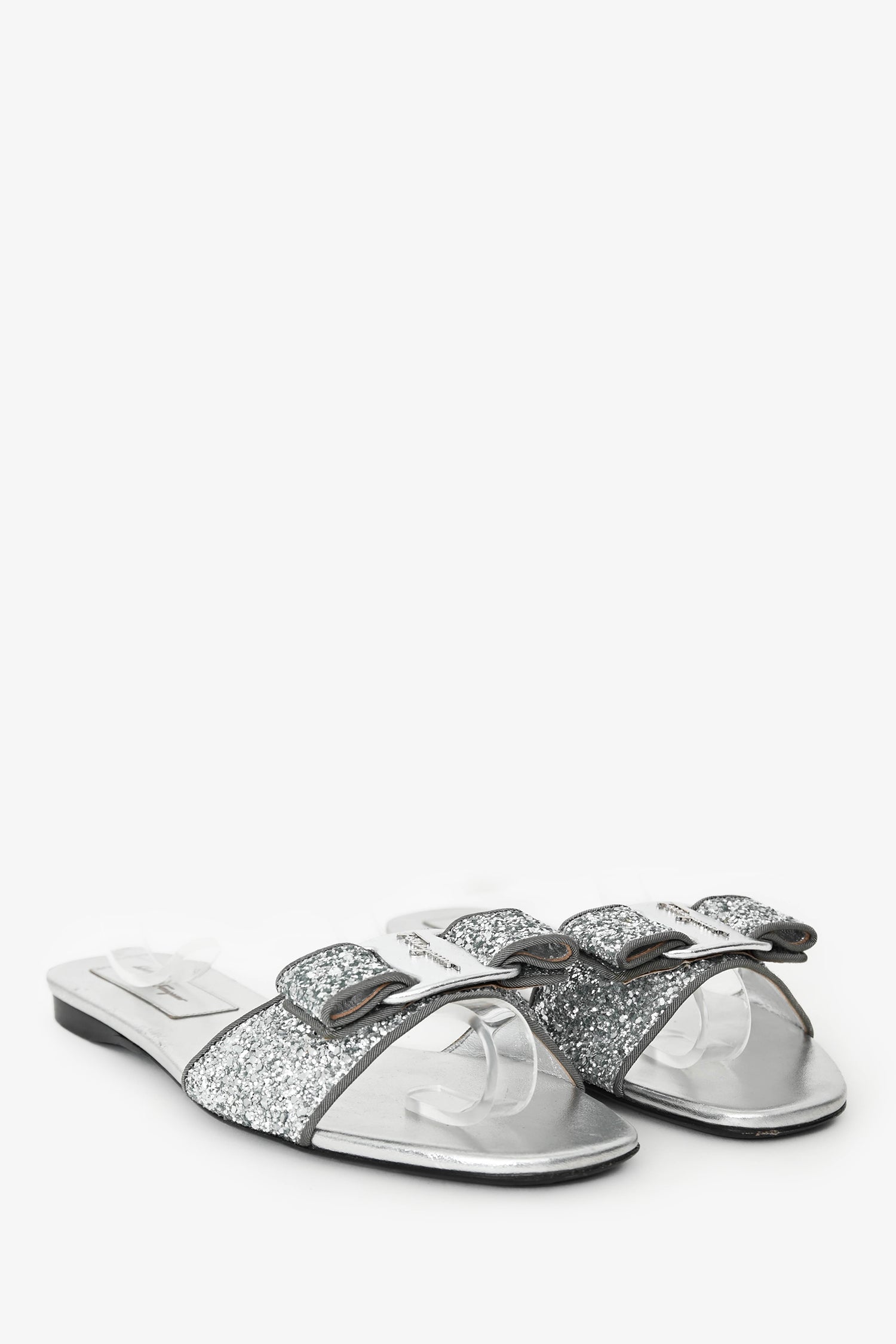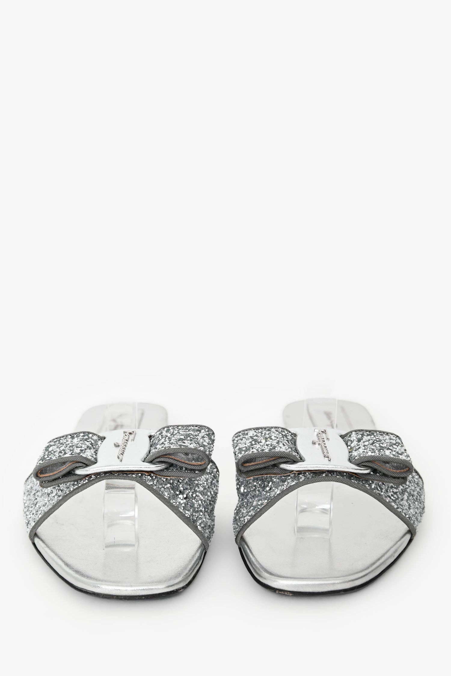 Salvatore Ferragamo Silver Glitter Vara Bow Slide Sandals Size 9
