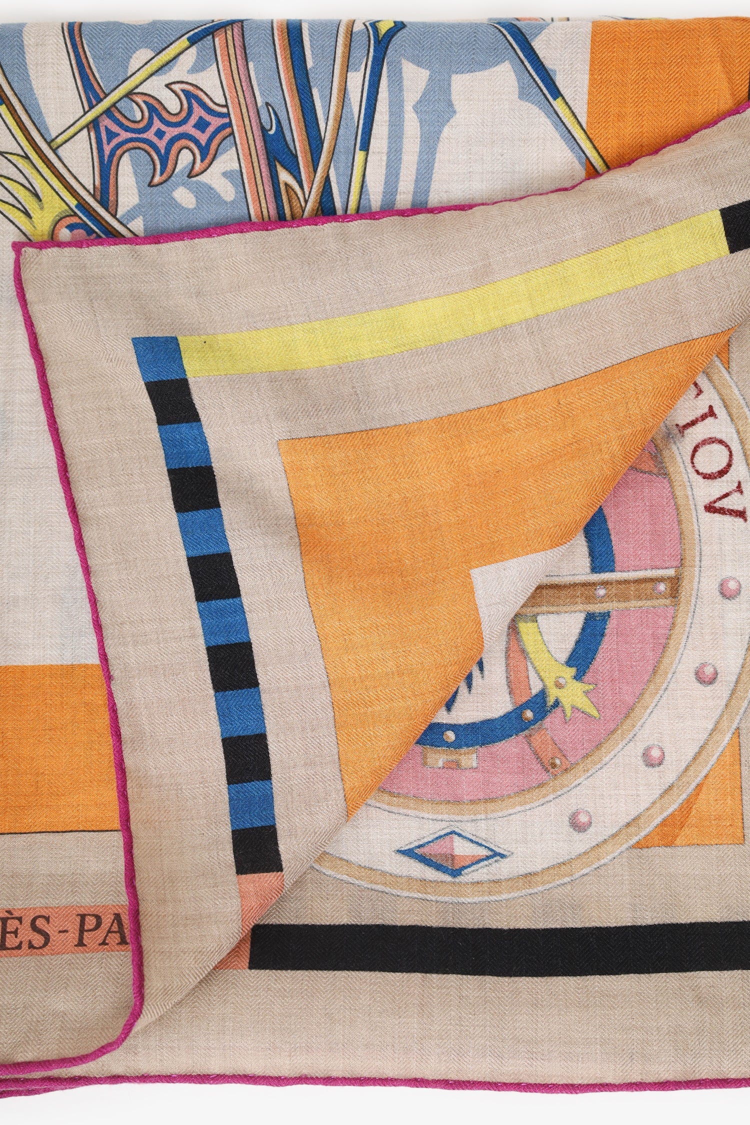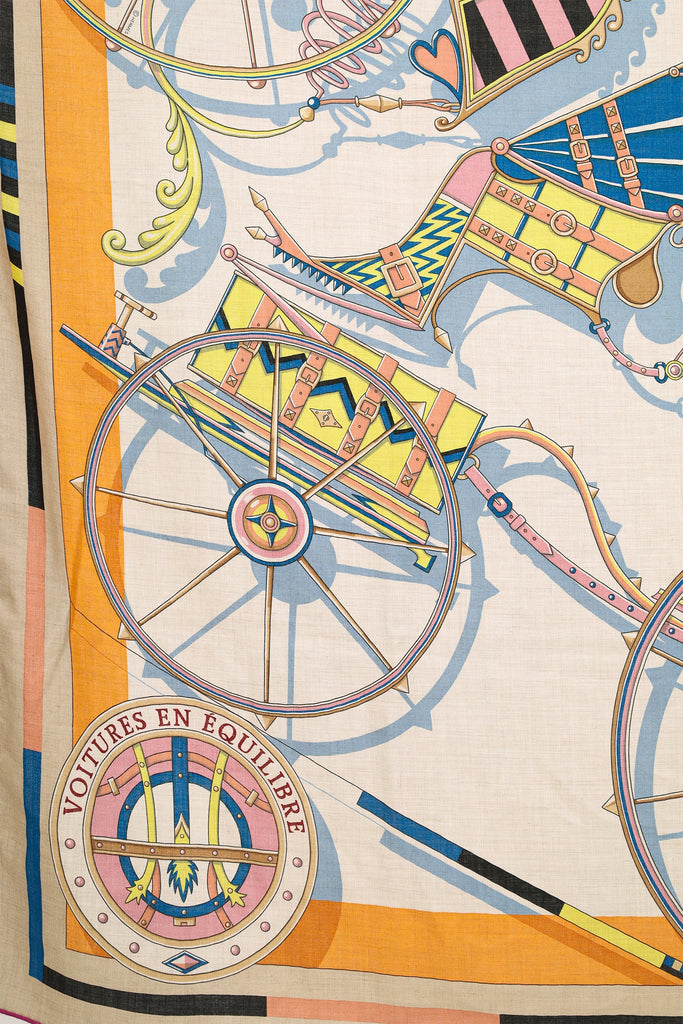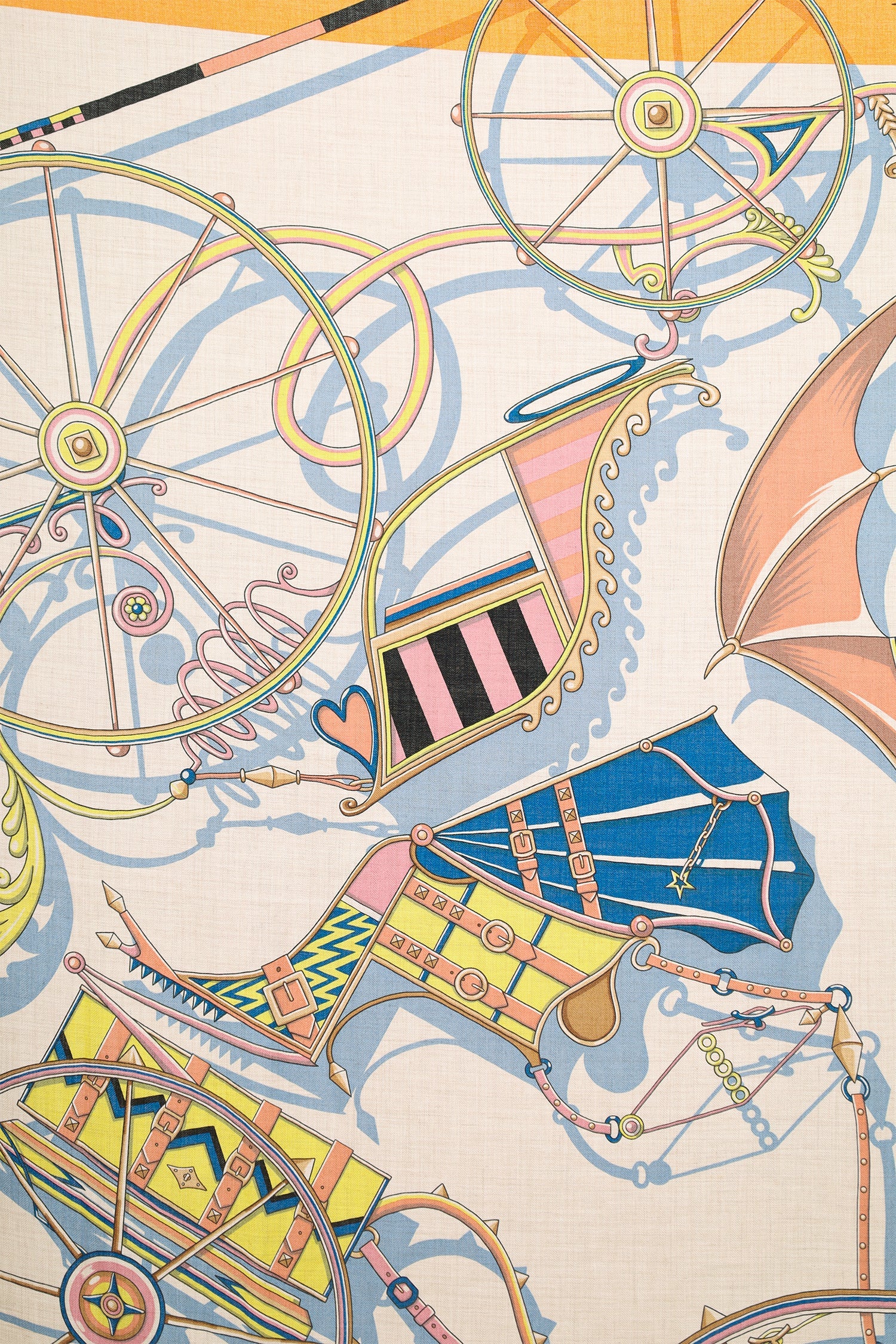 Hermès Multicolour Cashmere/Silk Printed Shawl. Tonal stitching.