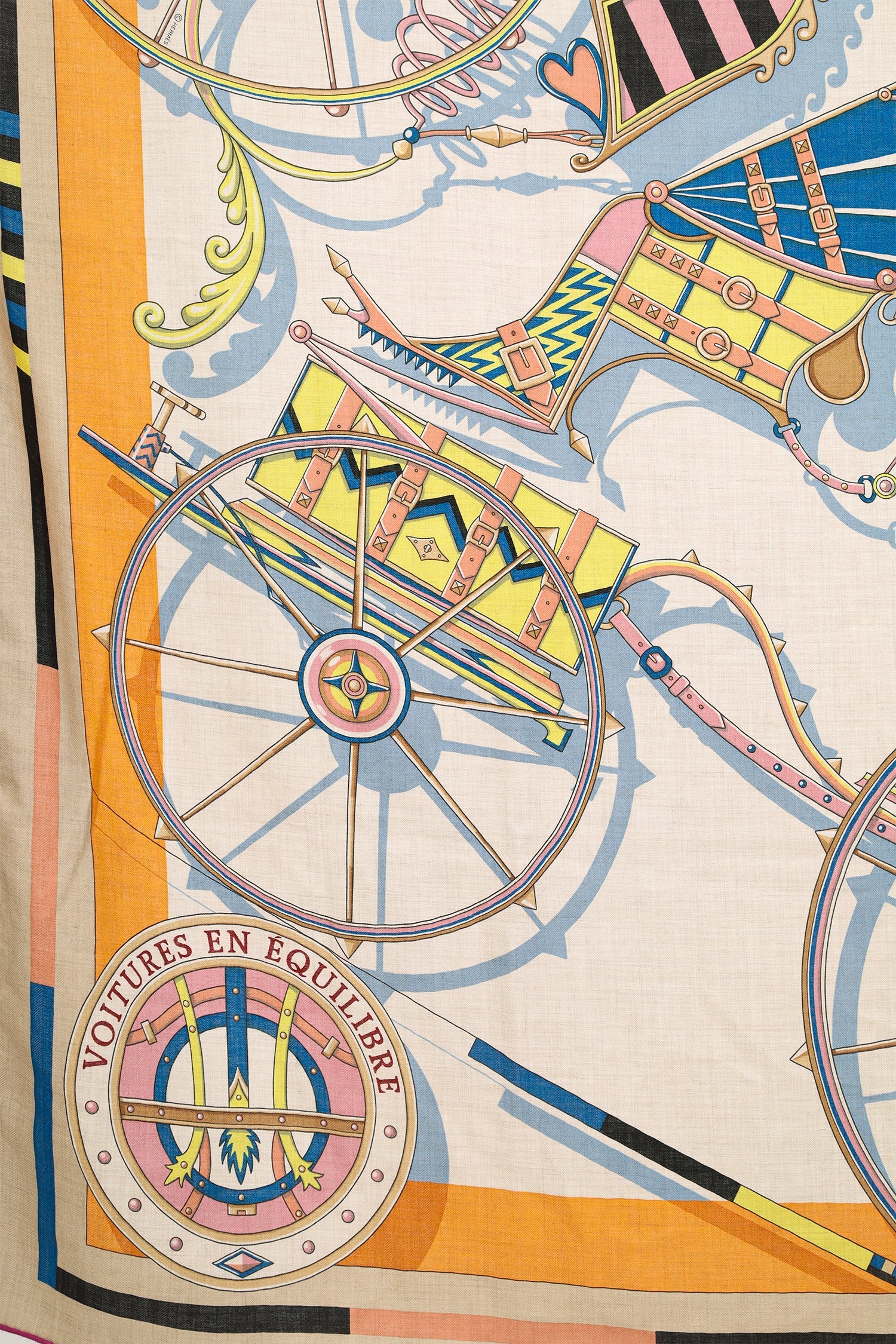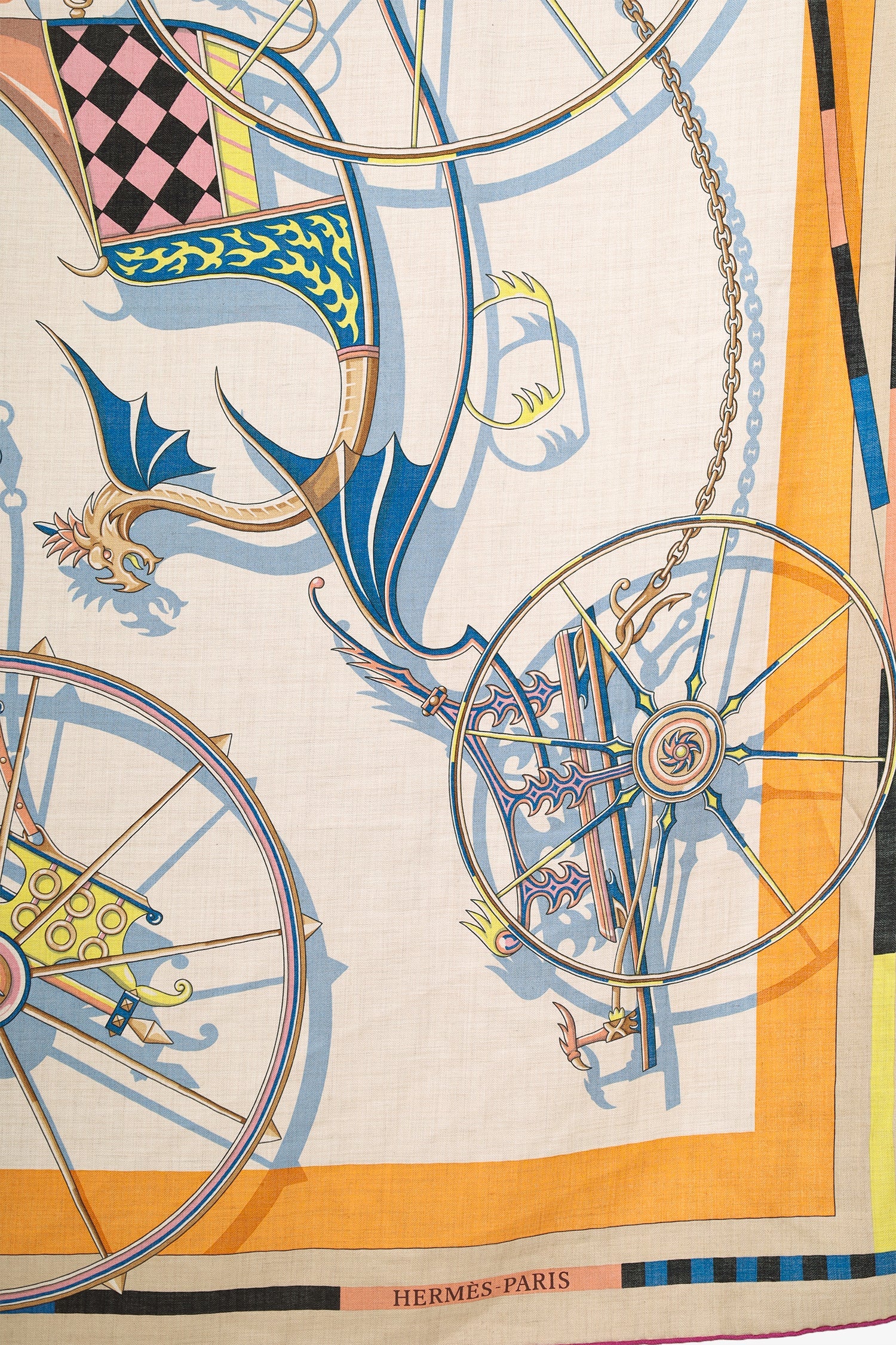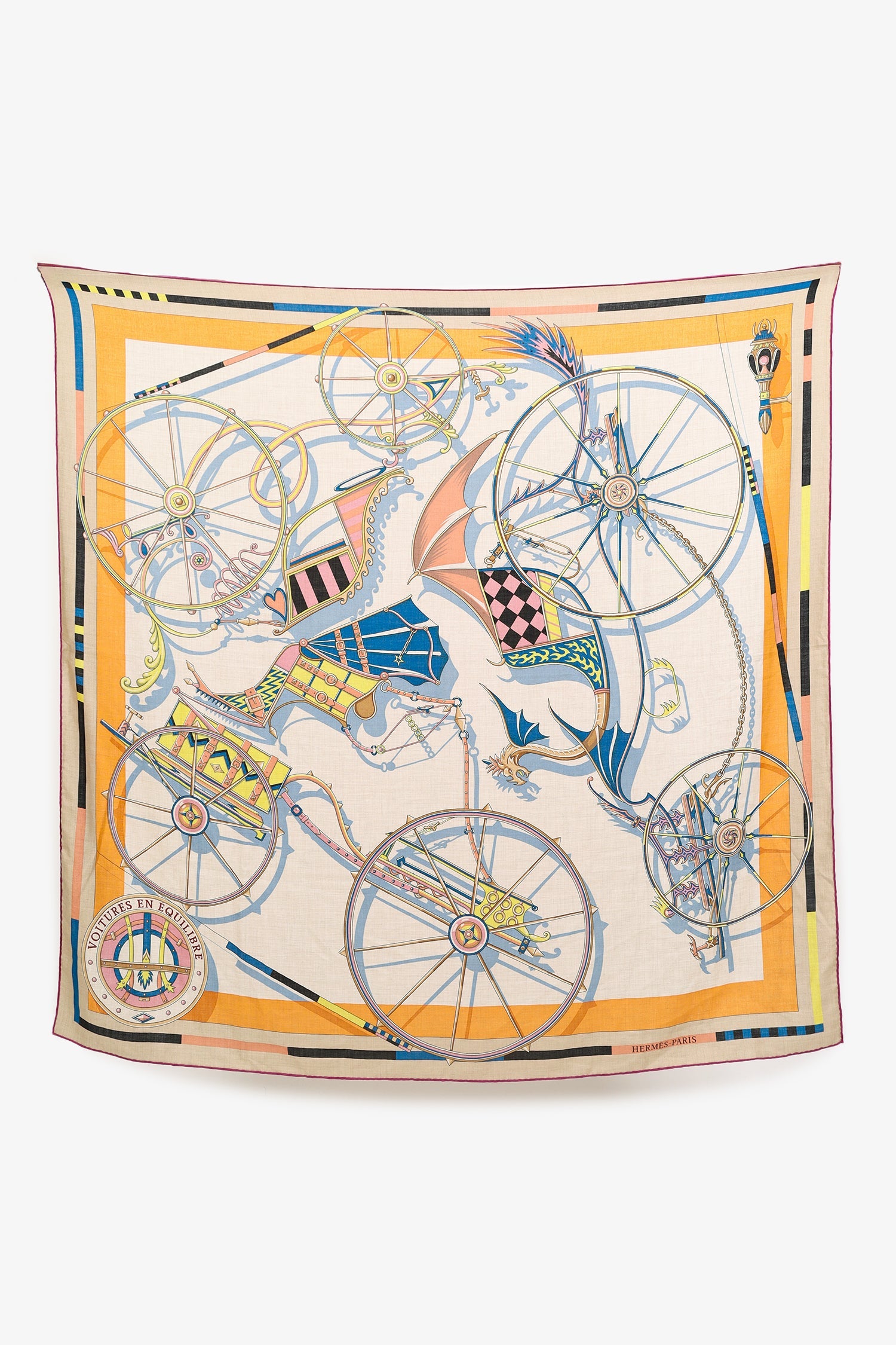 Hermès Multicolour Cashmere/Silk Printed Shawl. Tonal stitching.