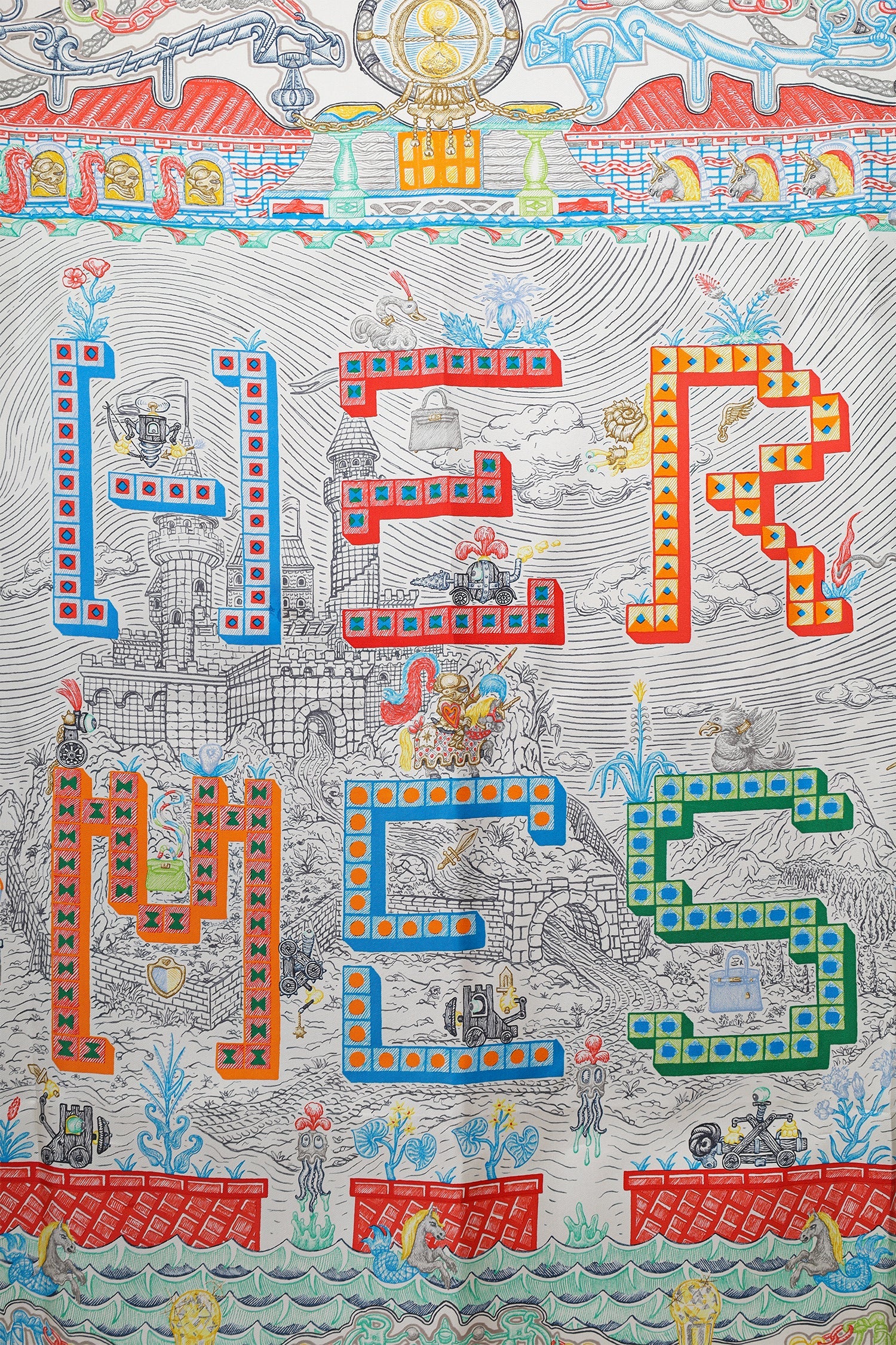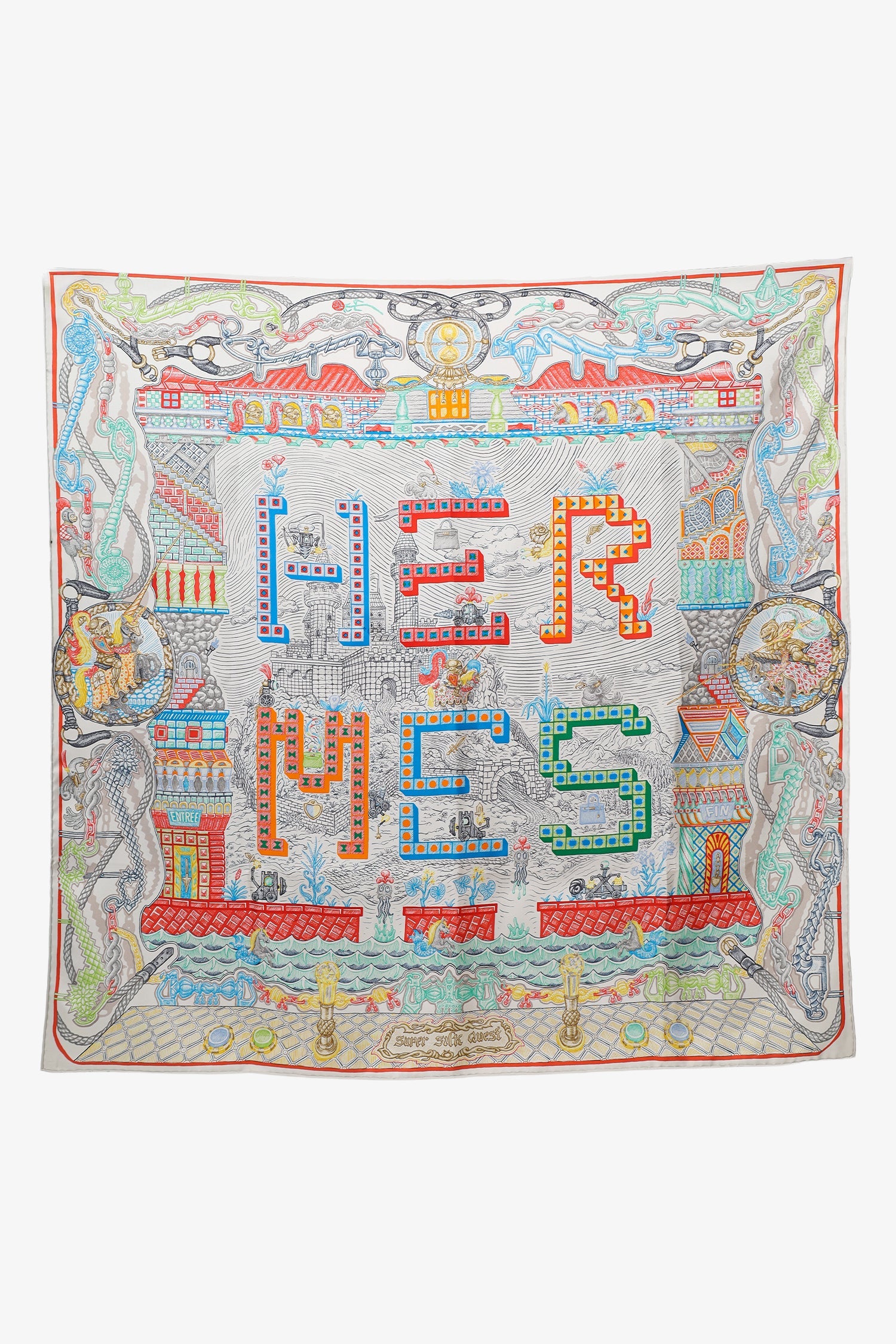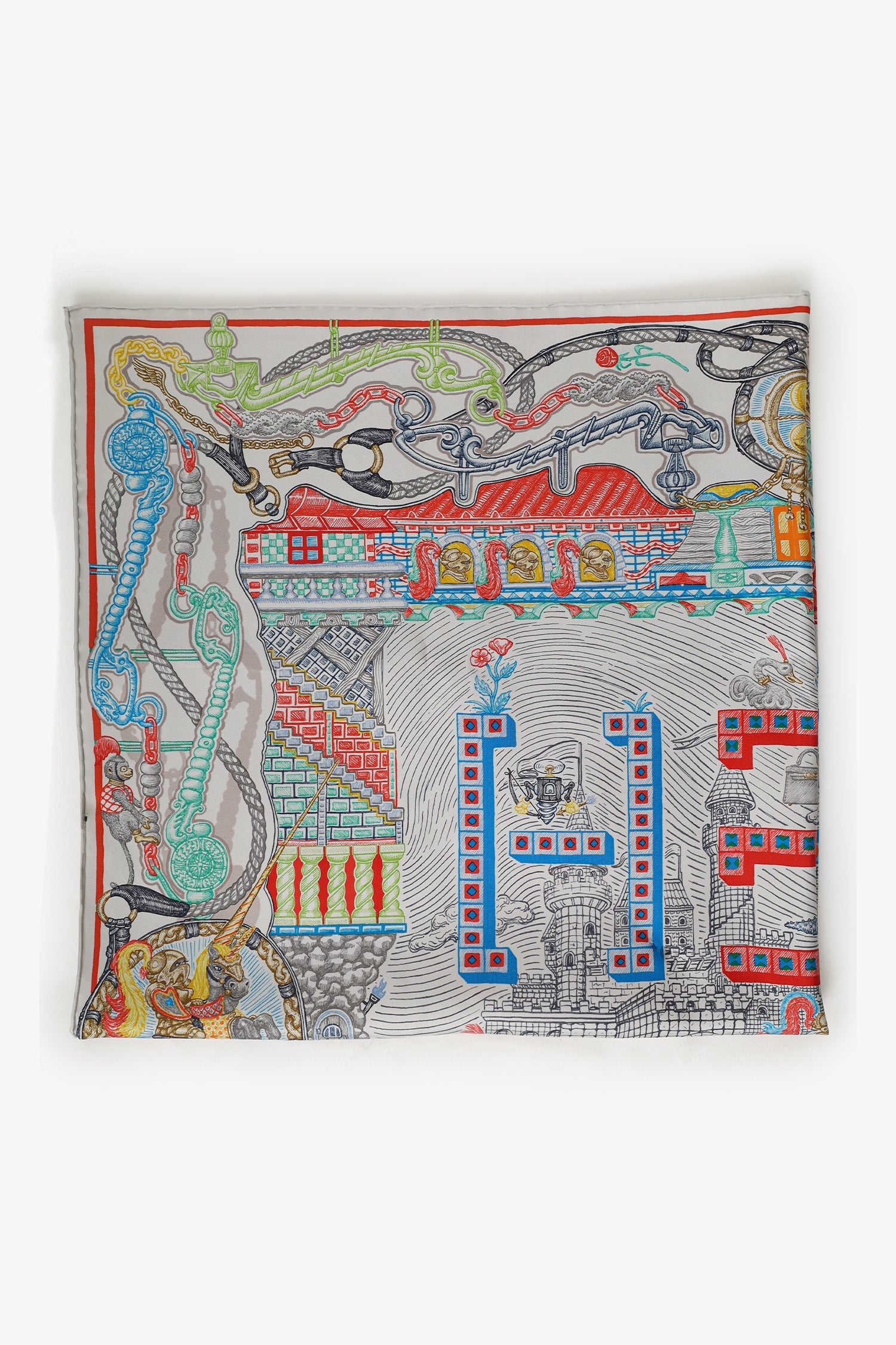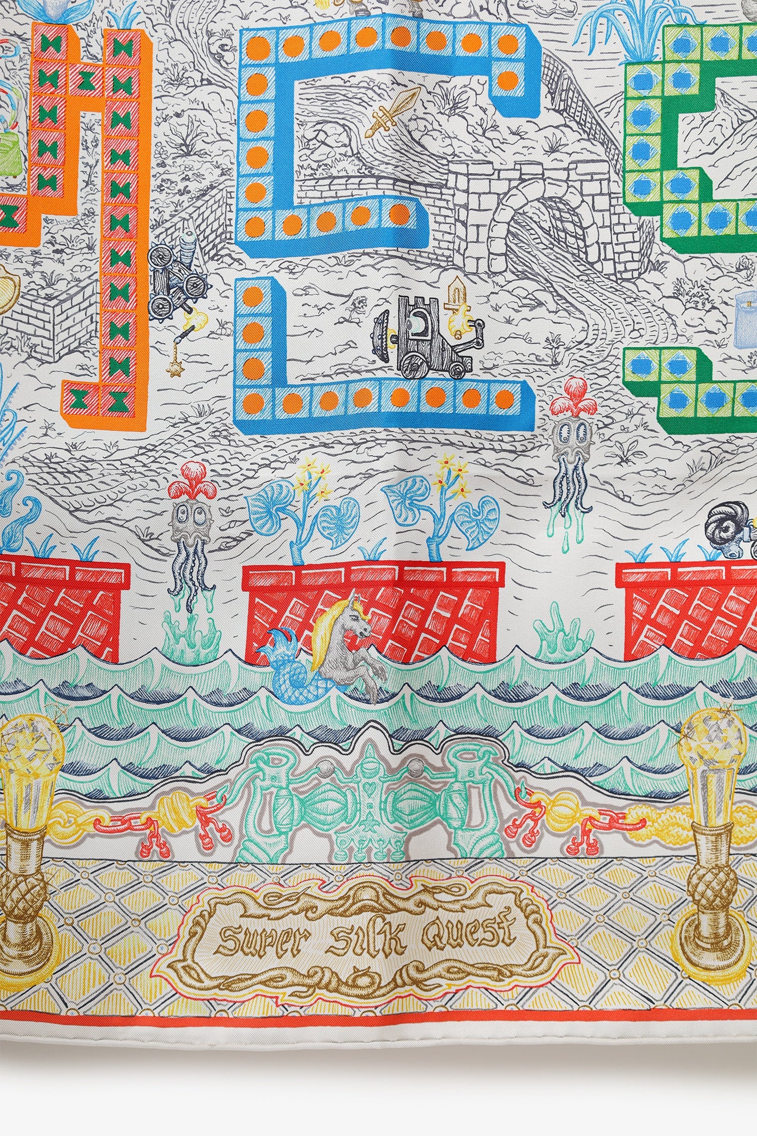 Hermés Multicolour Silk 'Super Silk Quest' Print Scarf 90