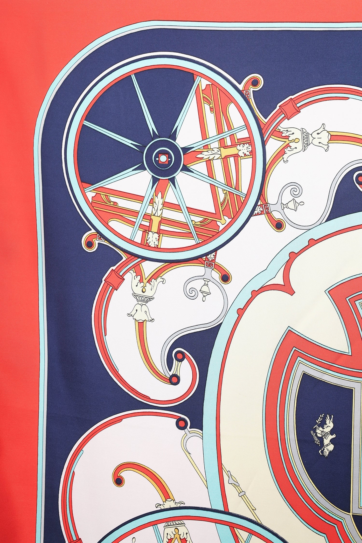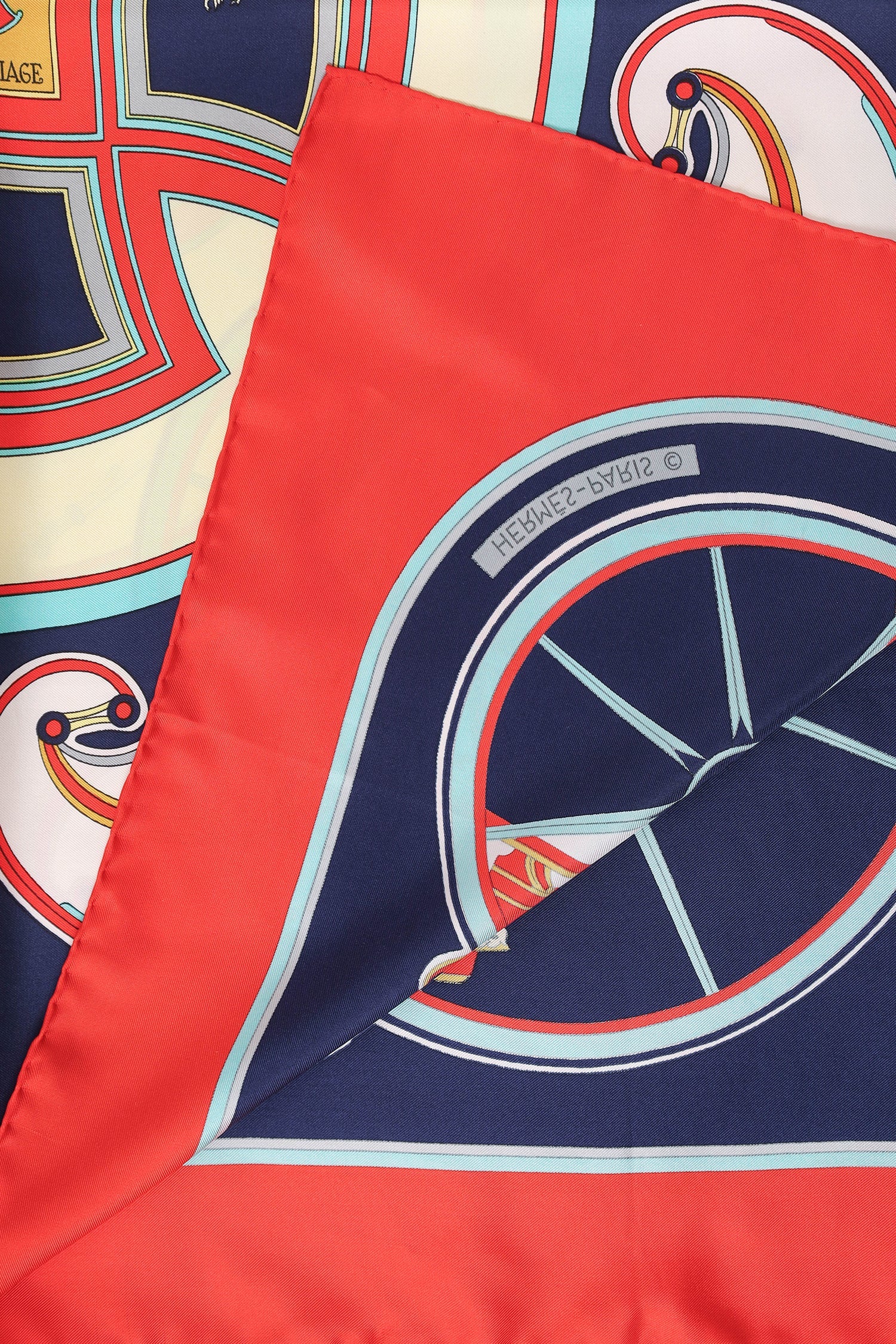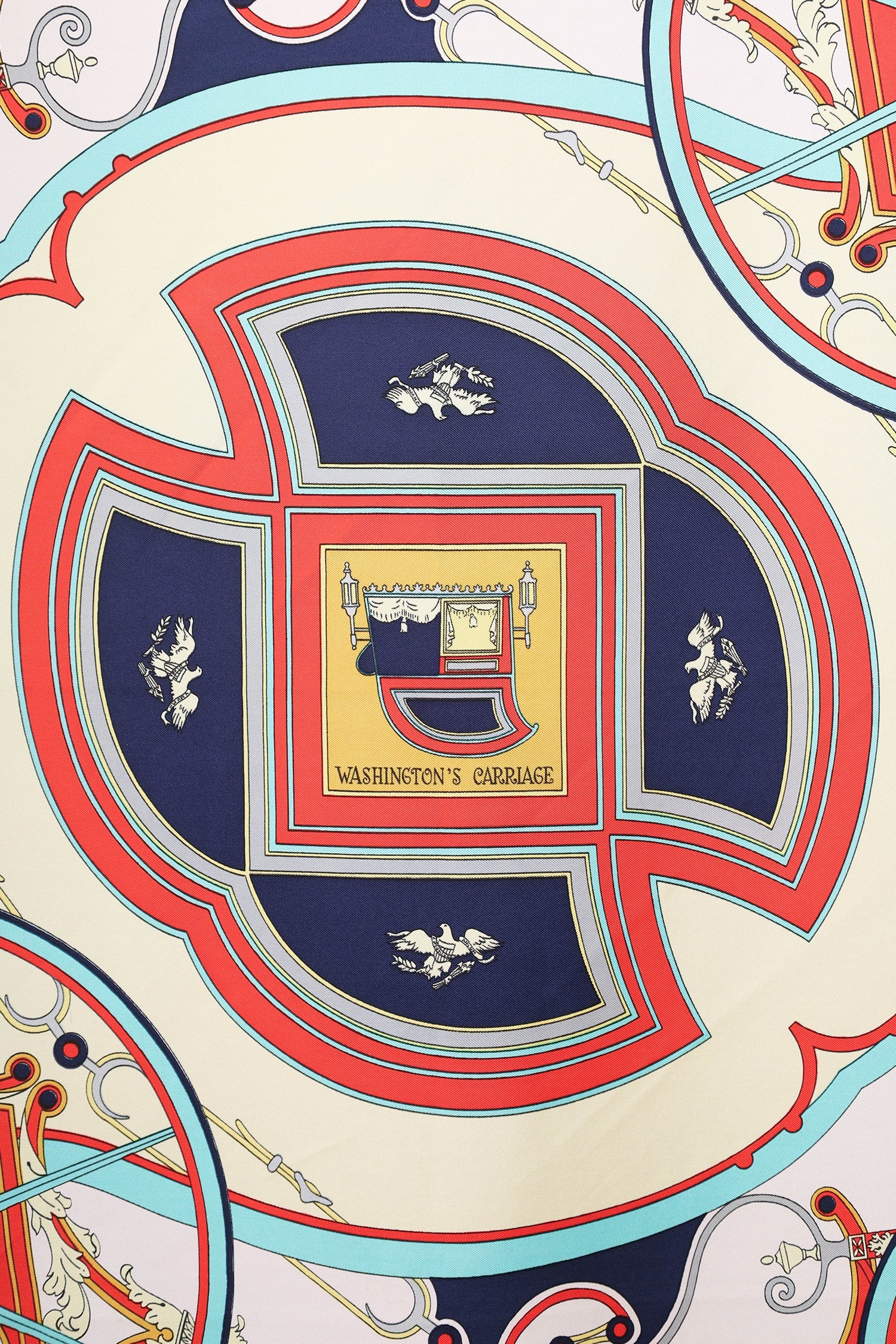 Hermès Red Silk 'Washington's Carriage' Scarf. Tonal stitching.