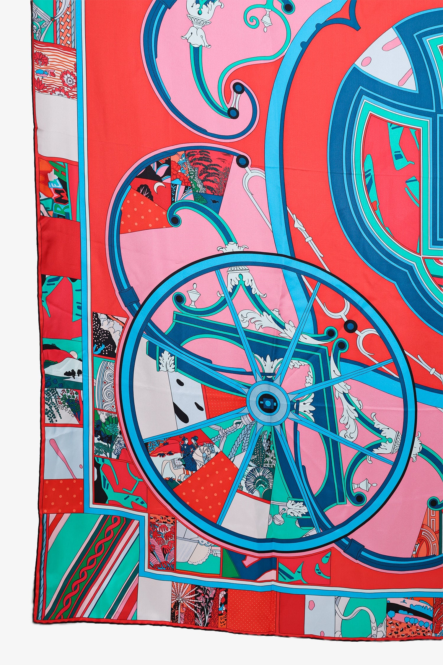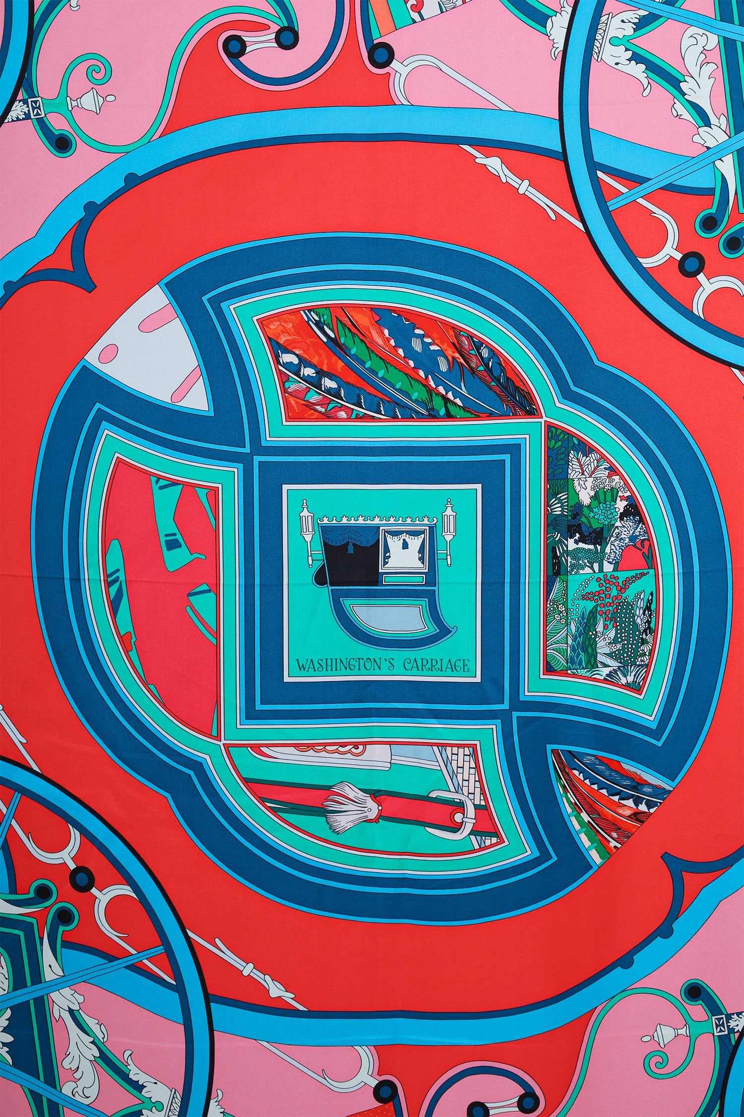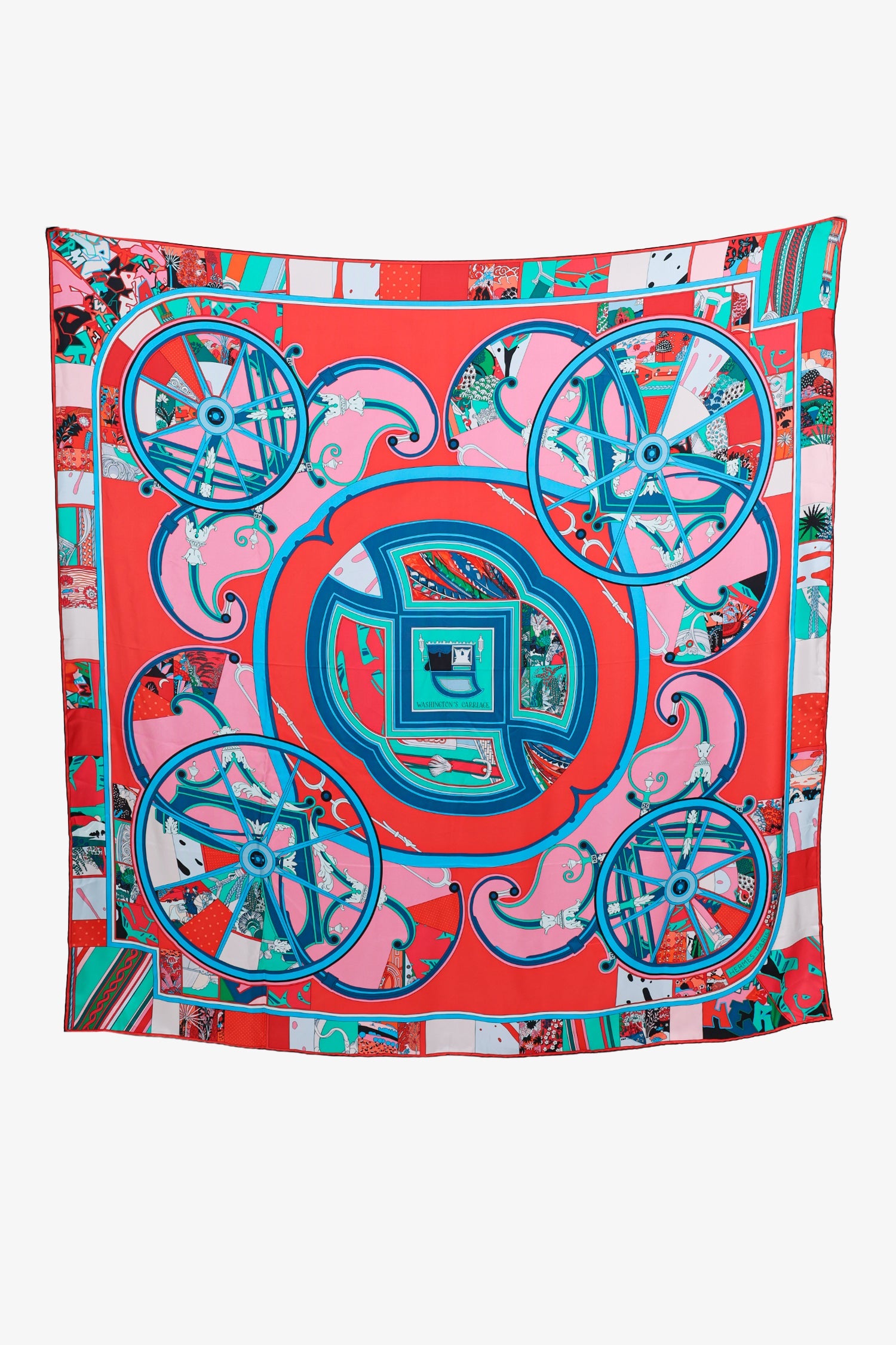 Hermès Teal/Red/Multi Silk 'Washington's Carriage' Scarf 140