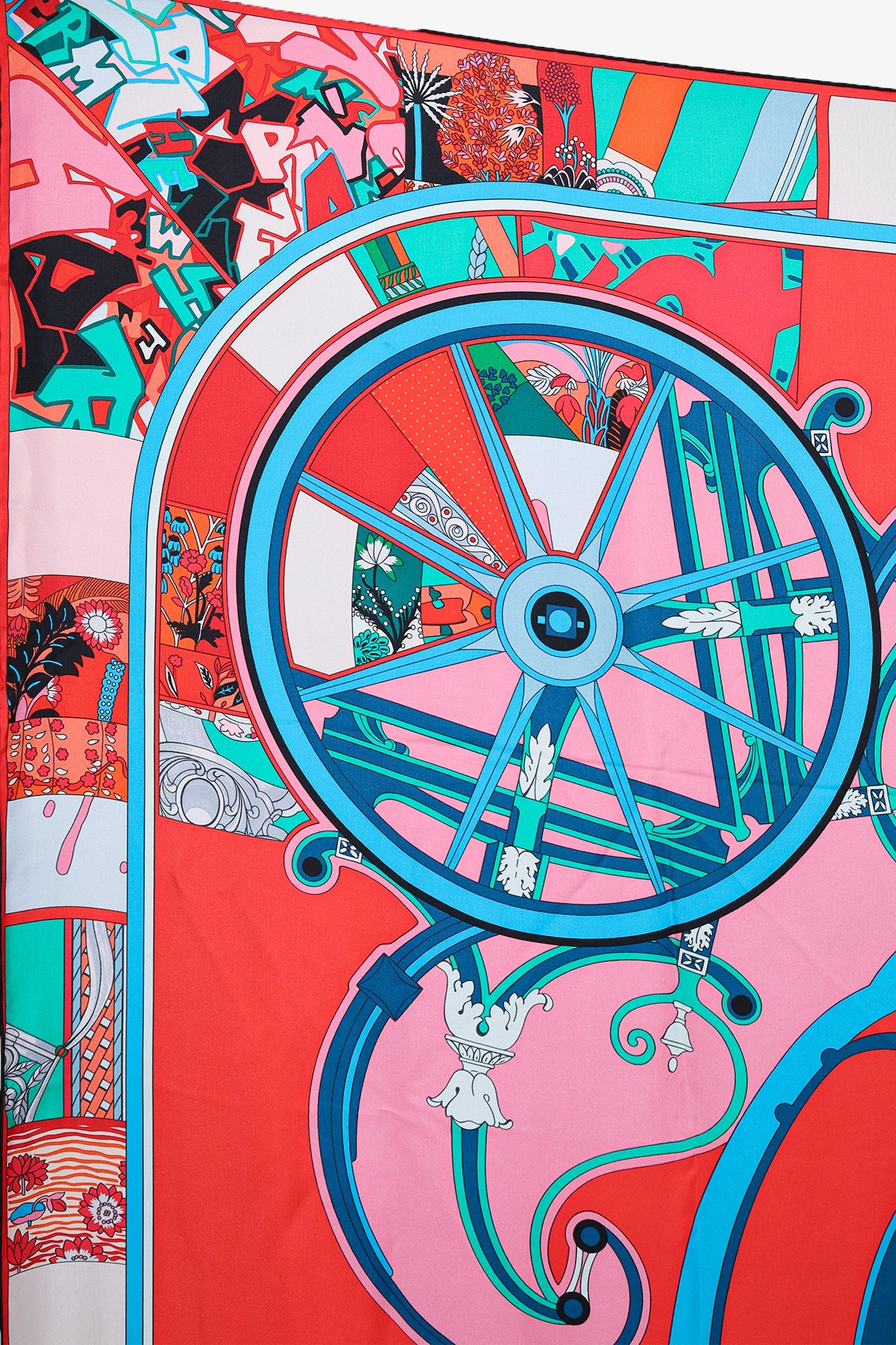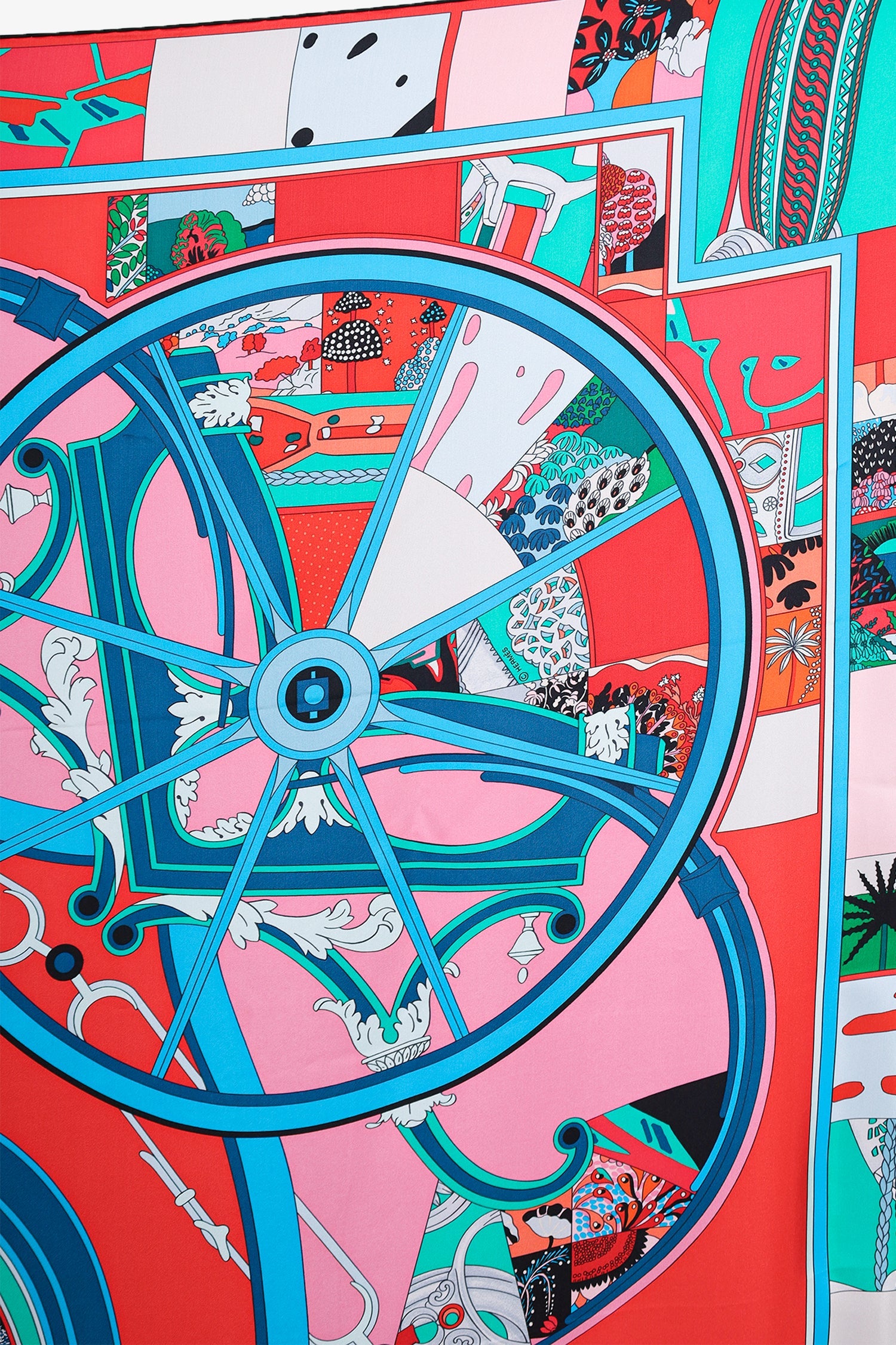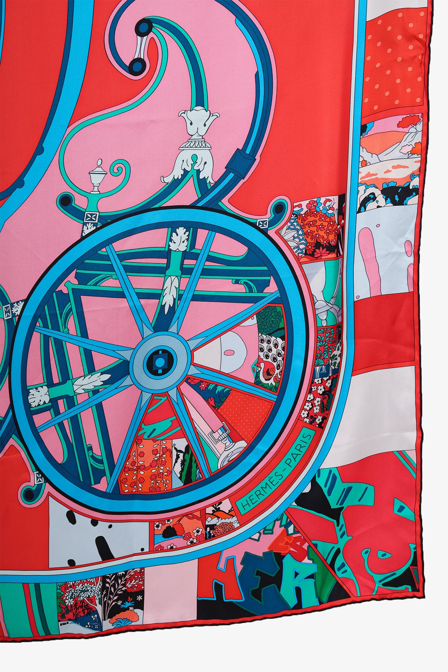 Hermès Teal/Red/Multi Silk 'Washington's Carriage' Scarf 140