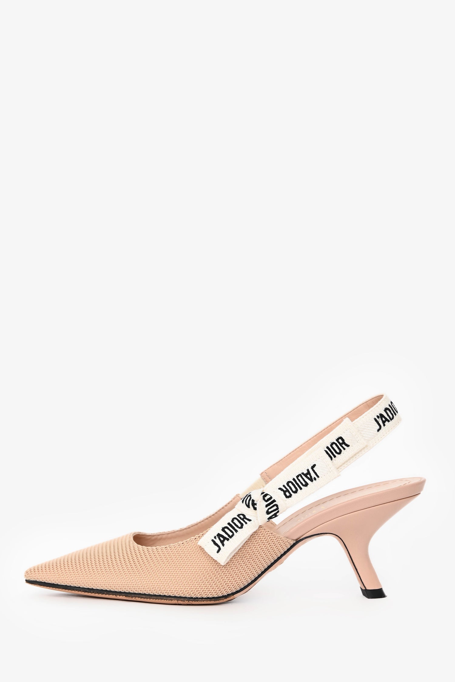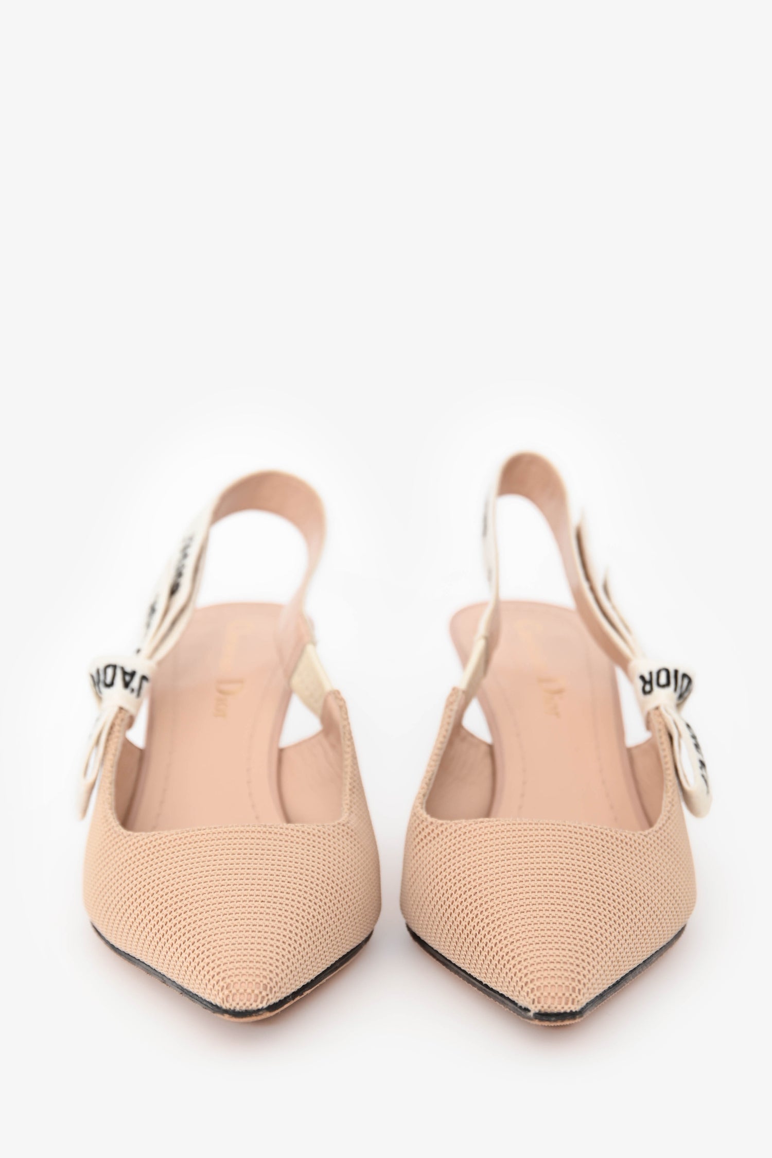 Christian Dior Beige Tech Knit J'Adior Slingback Heels. Slip-on. Pointed toe. Leather insoles. Tonal stitching.