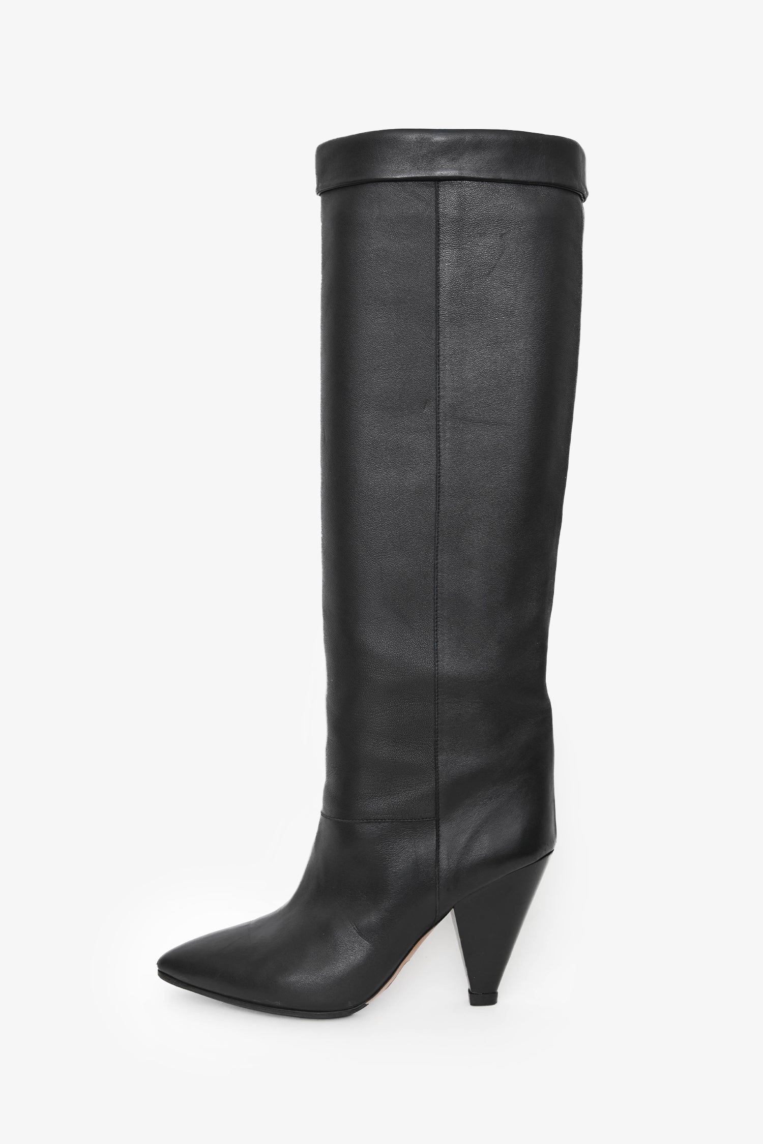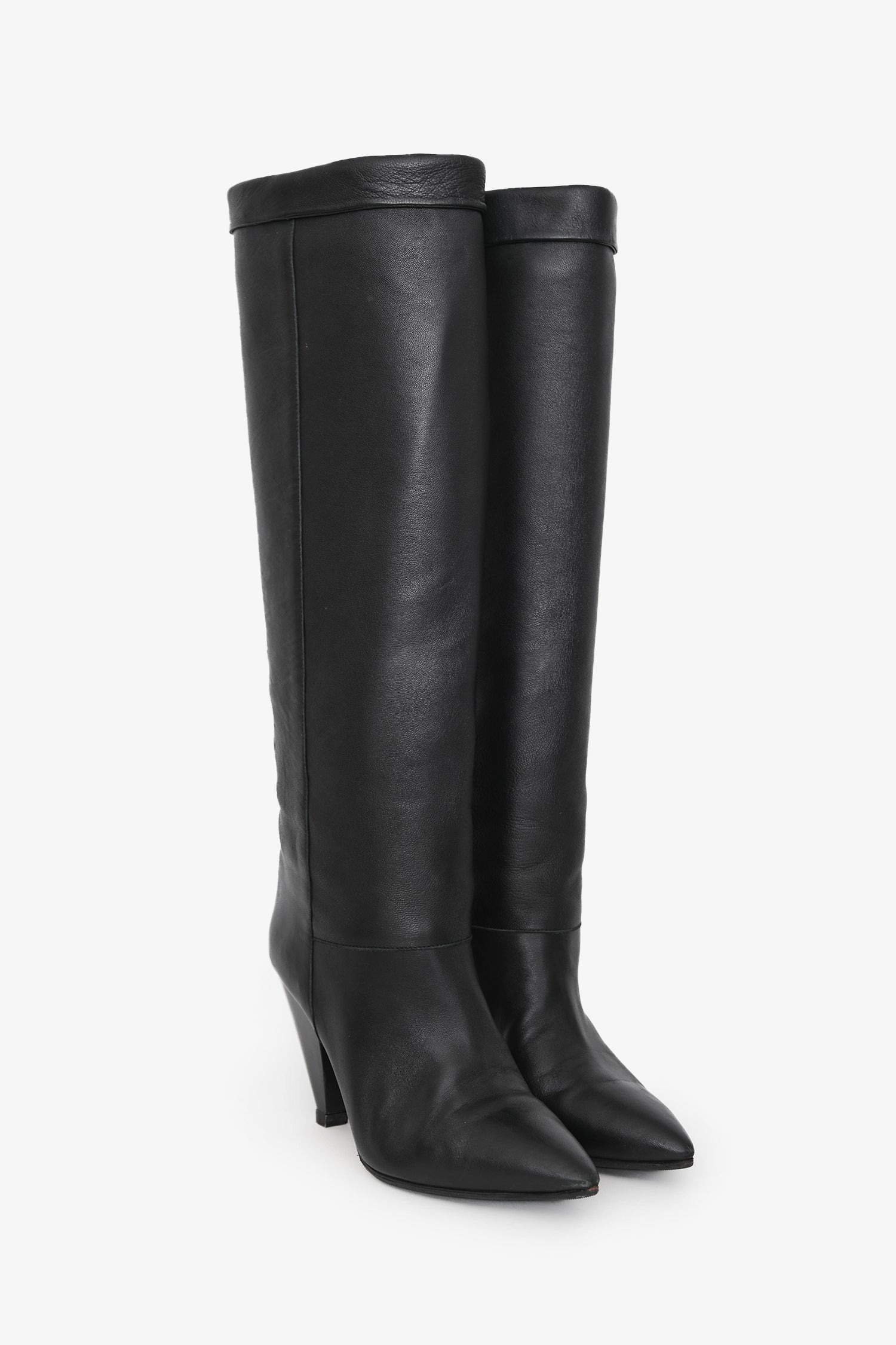 Isabel Marant Black Leather Conic Heel Tall Boots Size 37