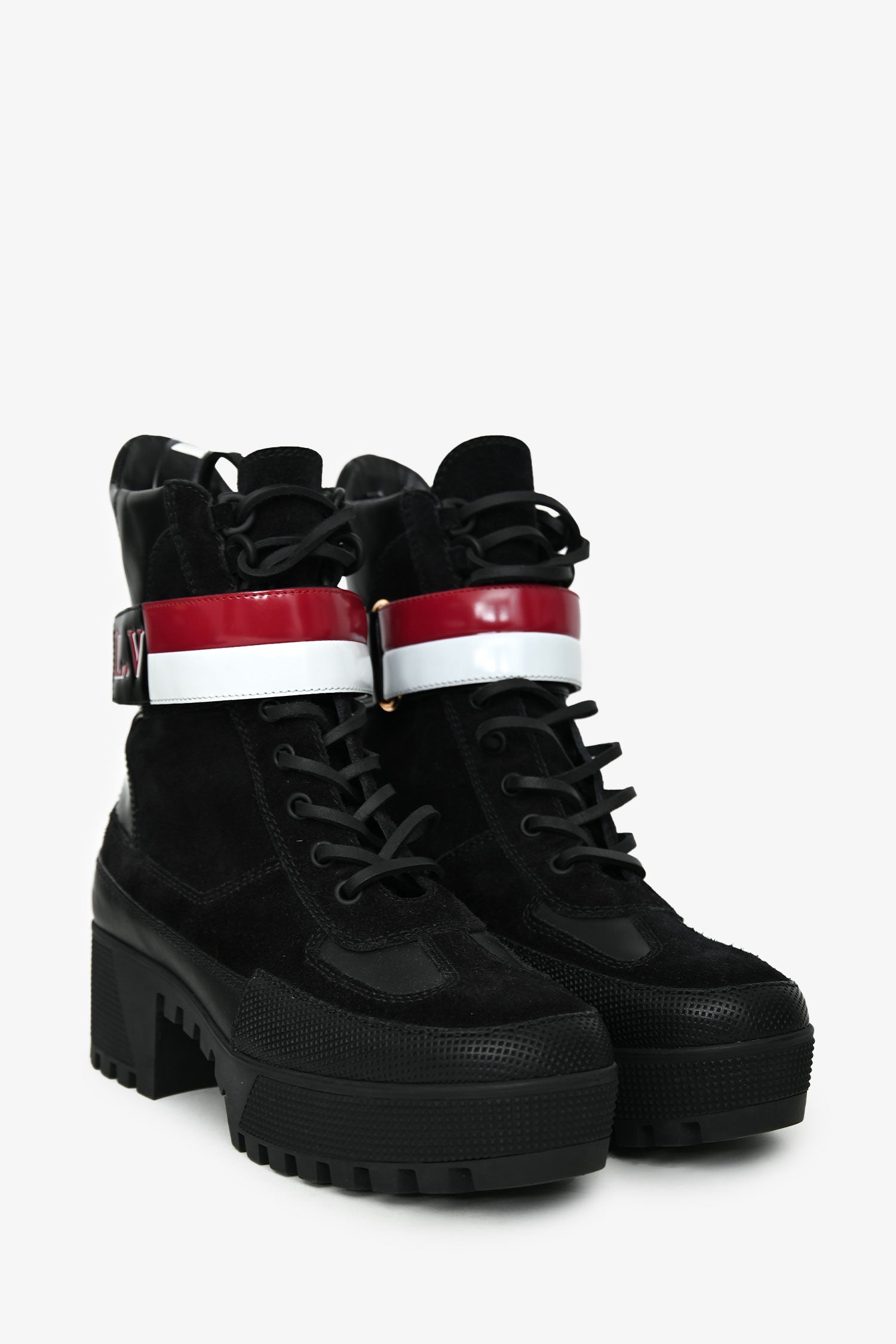 Louis Vuitton Black Suede Striped Combat 'Laureate' Boots Size 38