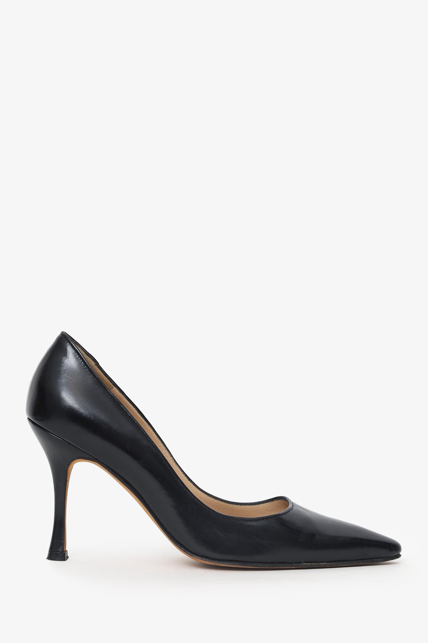 Manolo Blahnik Black Leather Pointed Heels Size 37