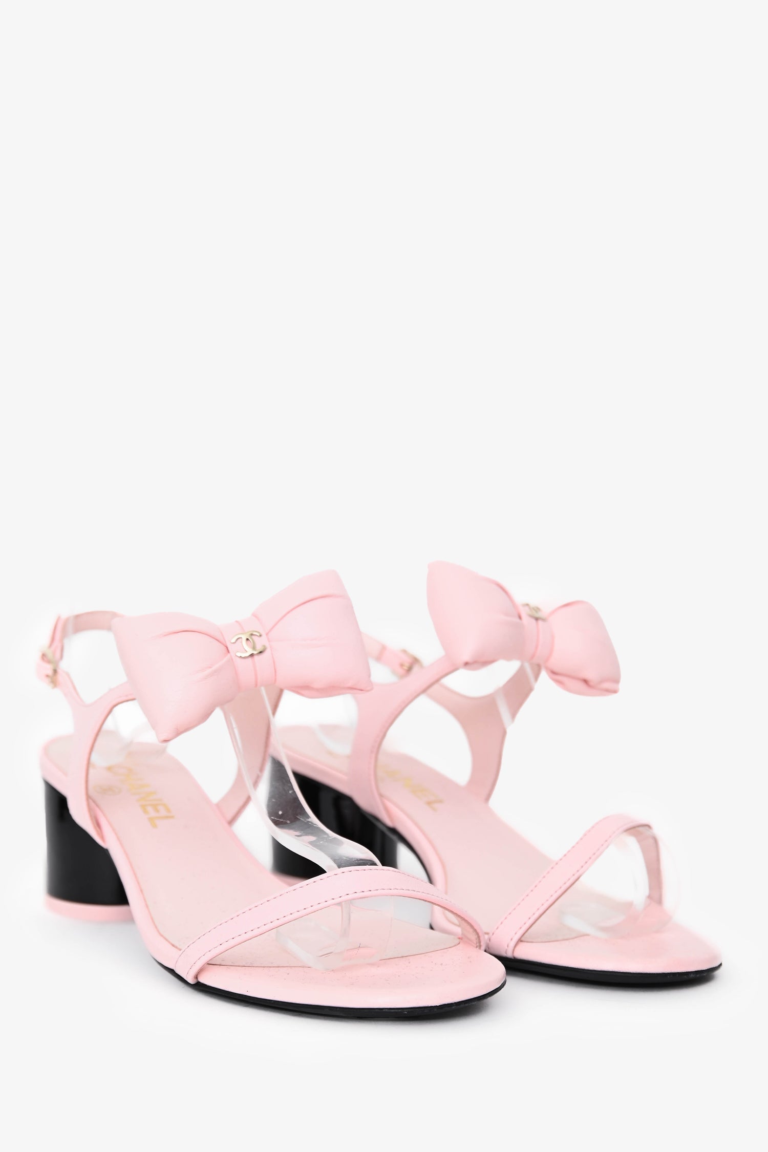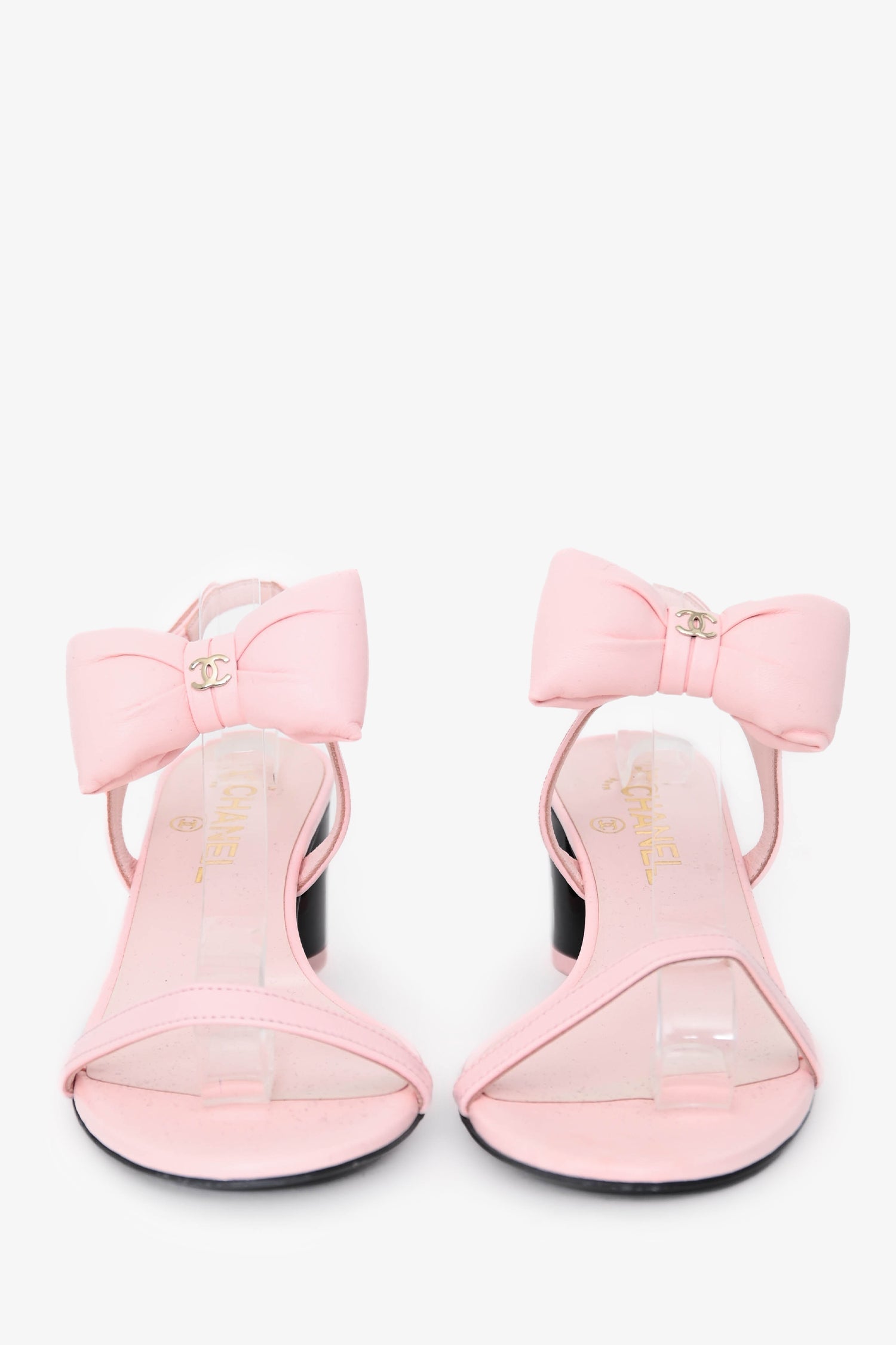 Pre-Loved Chanel™ 2025 Pink Lambskin Bow Sandals Size 37