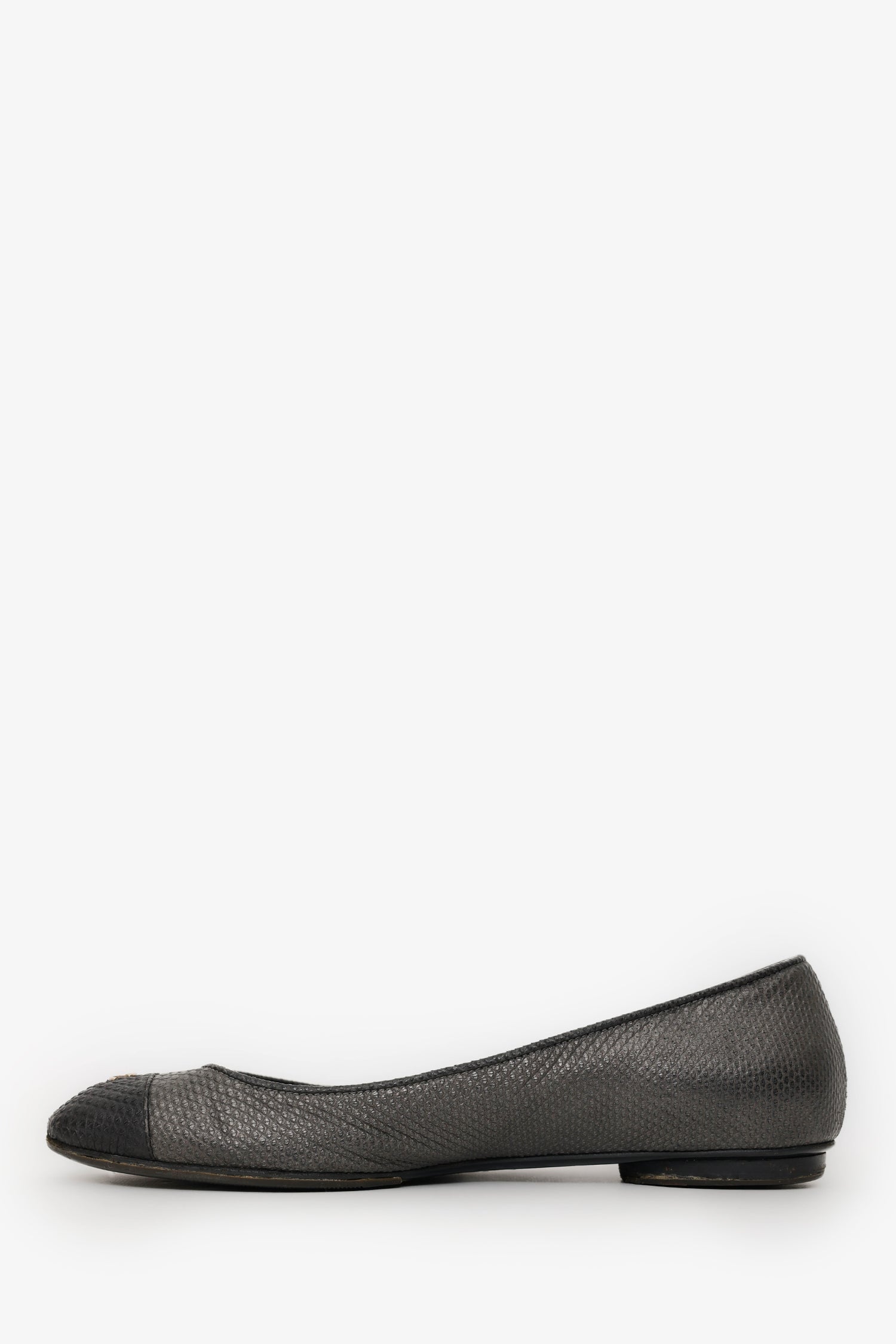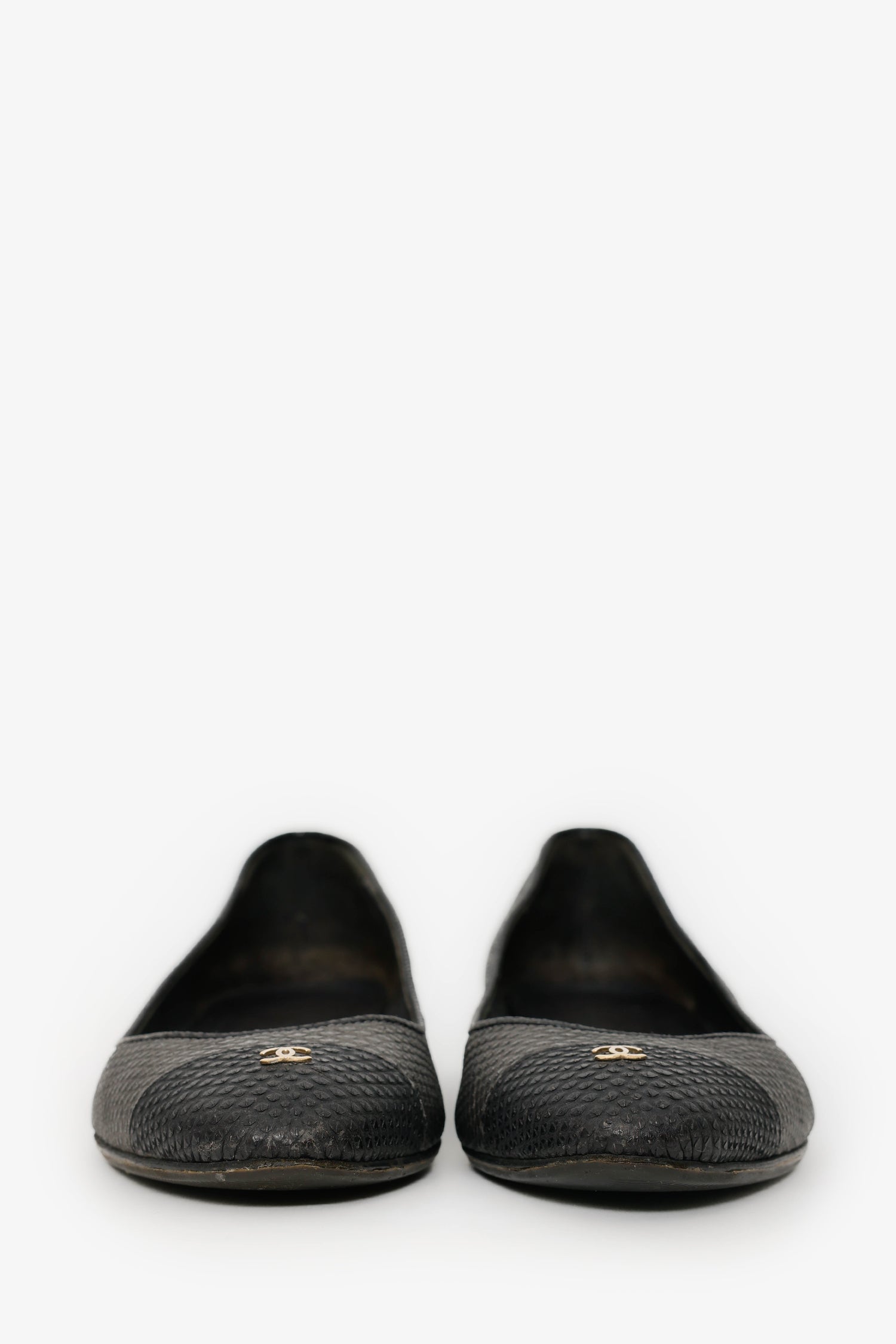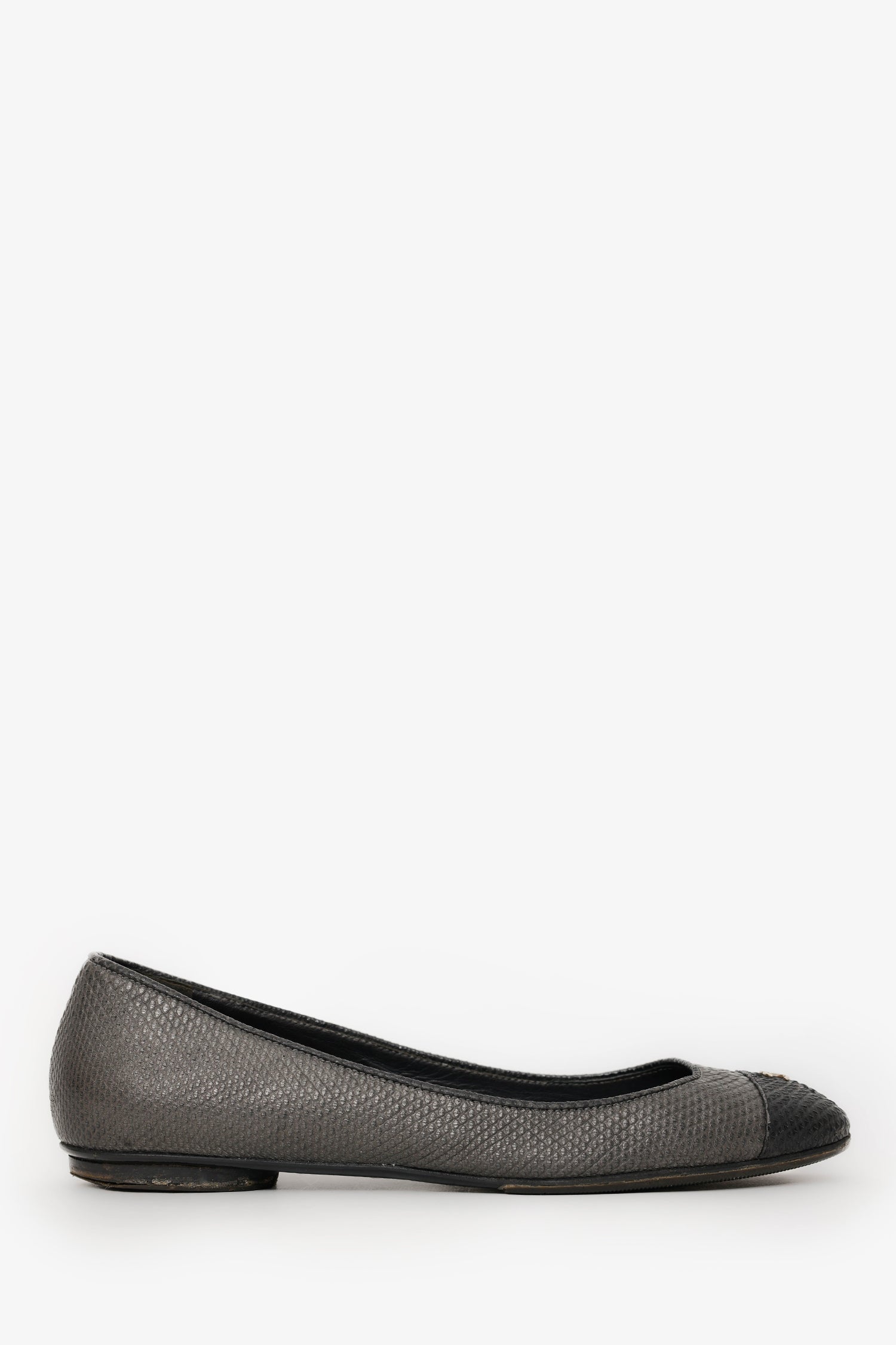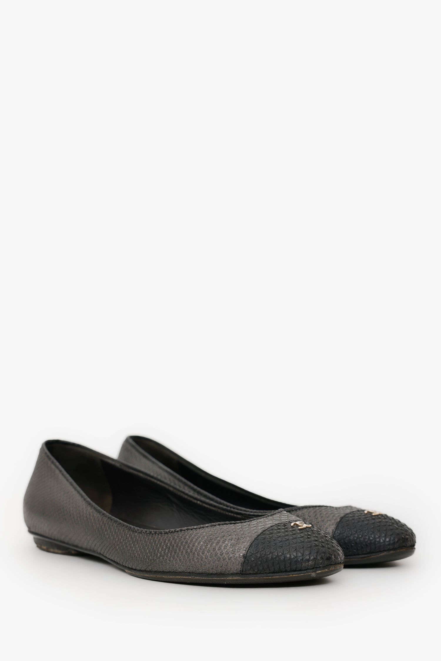 Pre-Loved Chanel™ Black/Grey Embossed Leather CC Ballet Flats Size 37