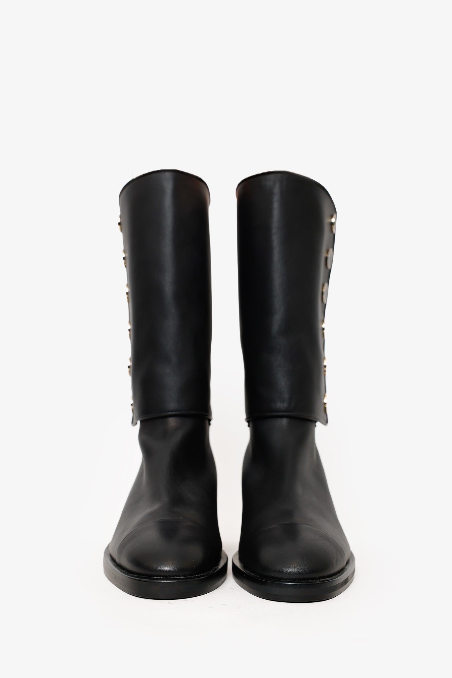 Pre-Loved Chanel™ Black Leather CC Biker Boots Size 39