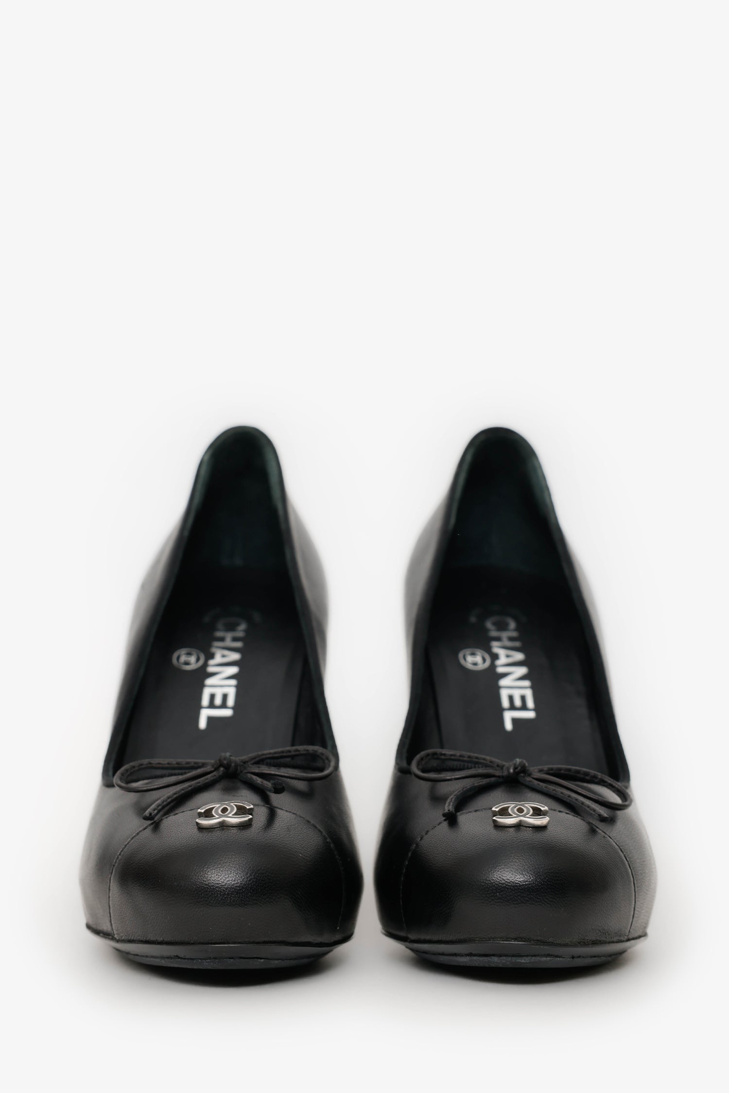 Pre-Loved Chanel™ Black Leather CC Cap Toe Platform Pumps Size 36.5