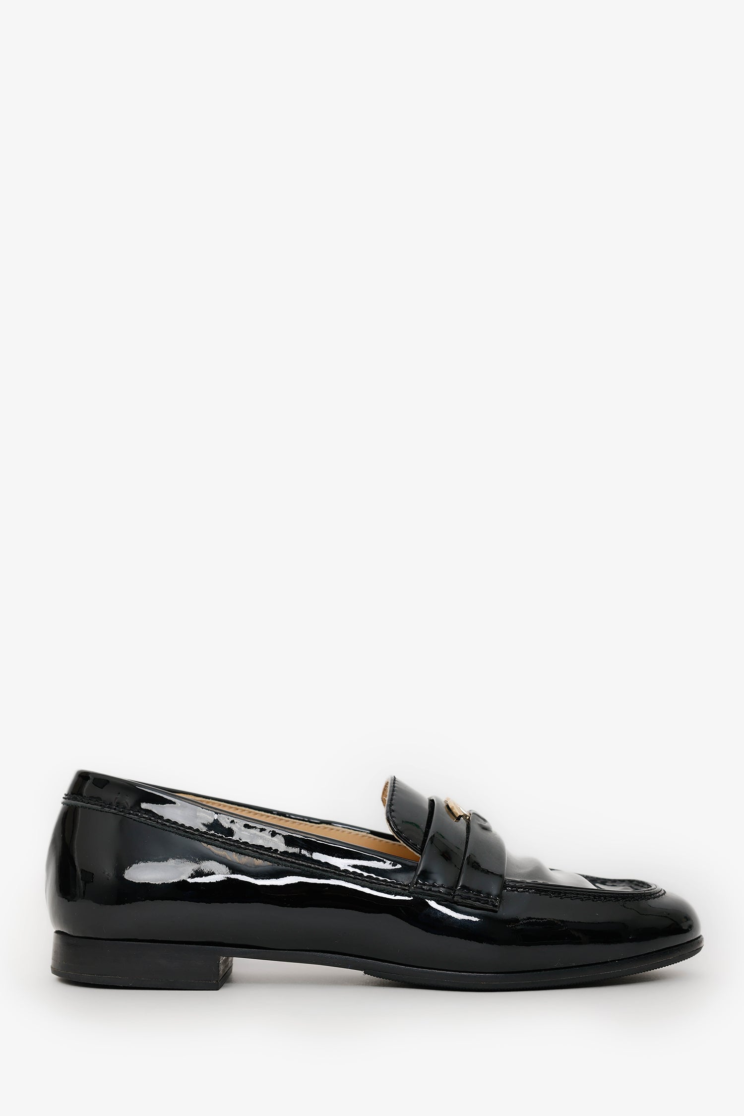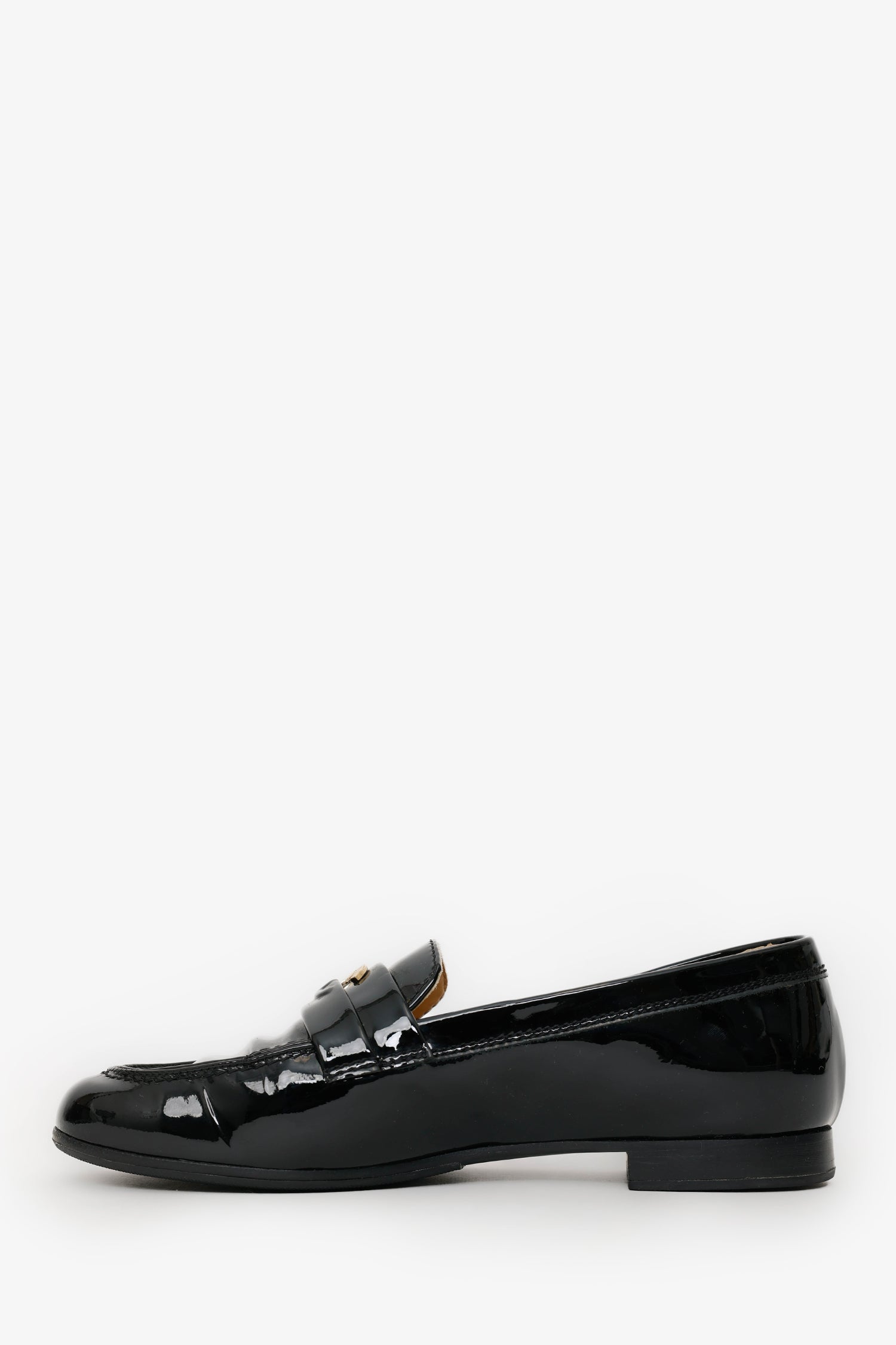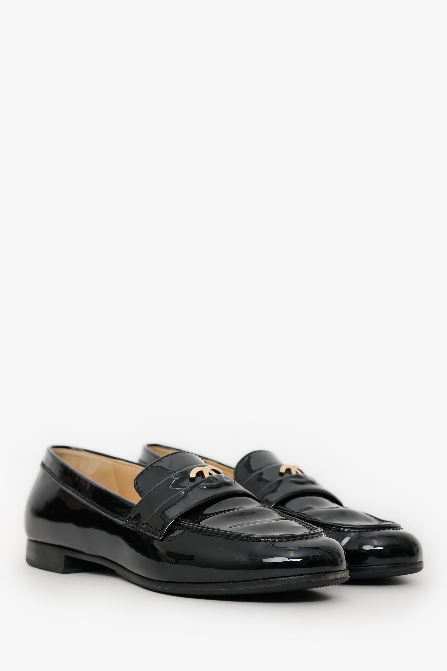 Pre-Loved Chanel™ Black Patent Leather CC Loafers Size 36.5