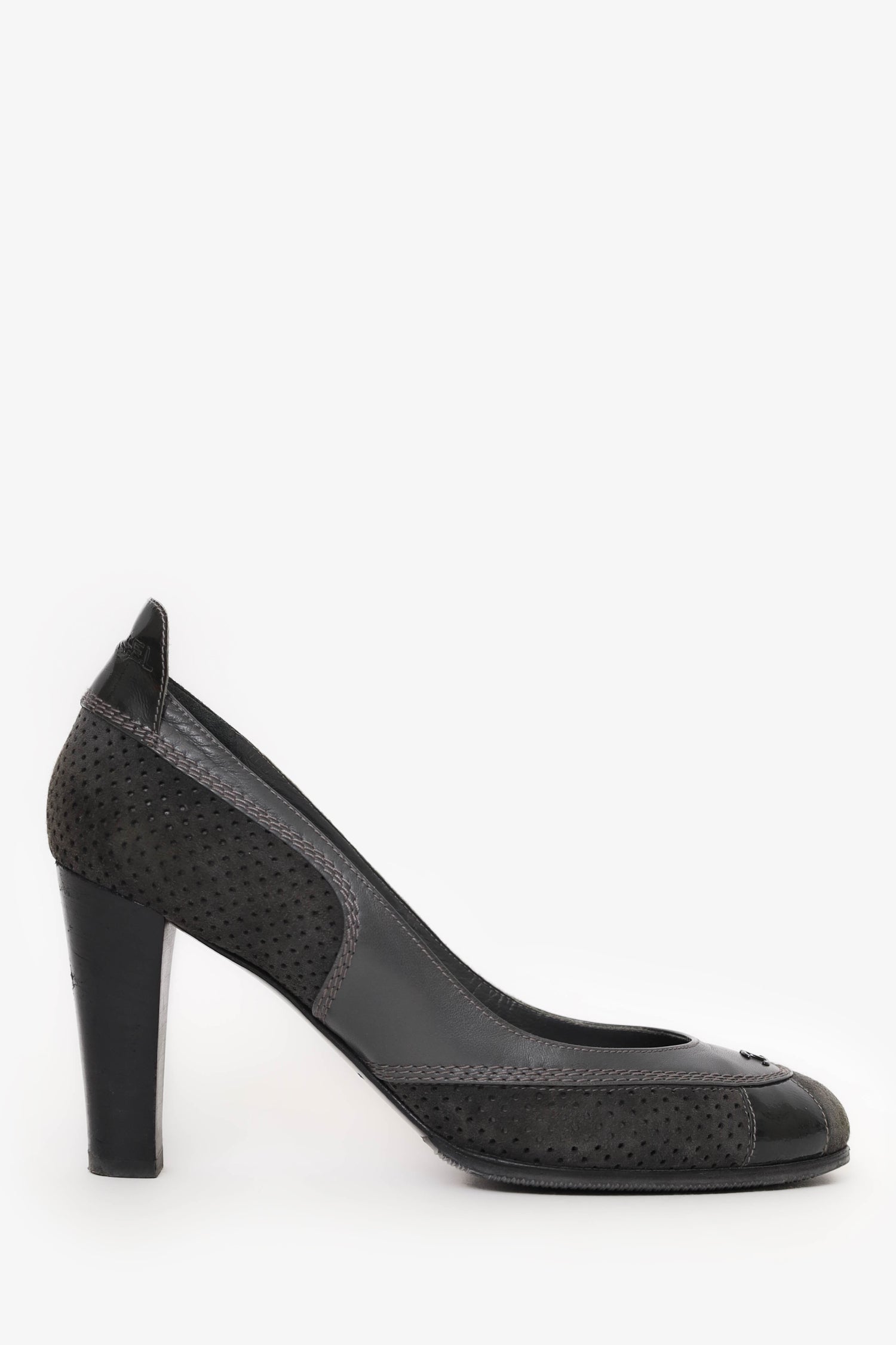 Pre-Loved Chanel™ Grey Suede/Leather Mesh CC Pumps Size 36