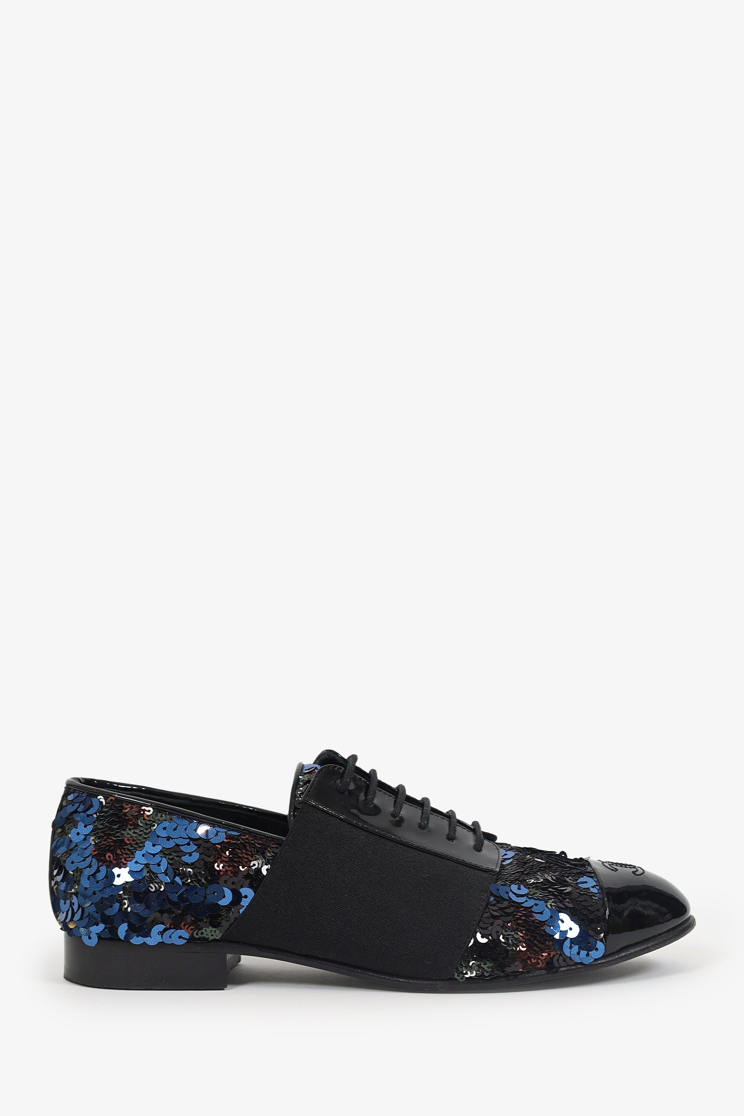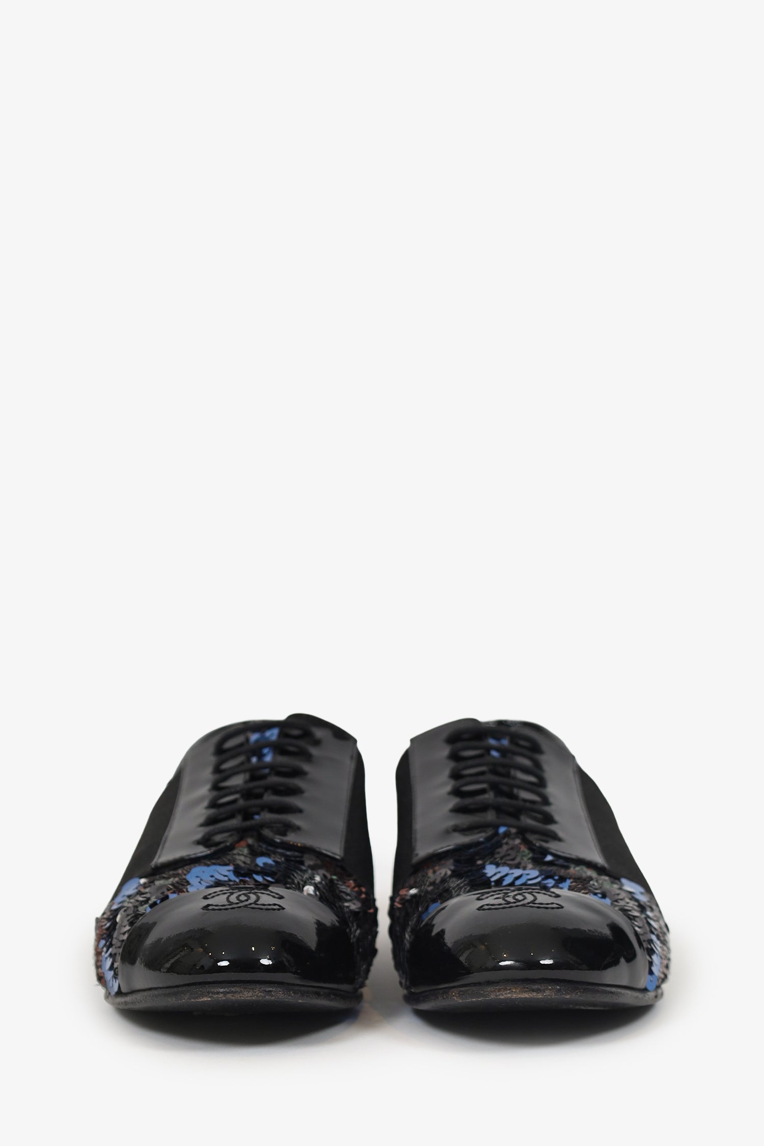 Pre-Loved Chanel™ Patent Leather/Sequin Cap Toe Brogues Size 37.5