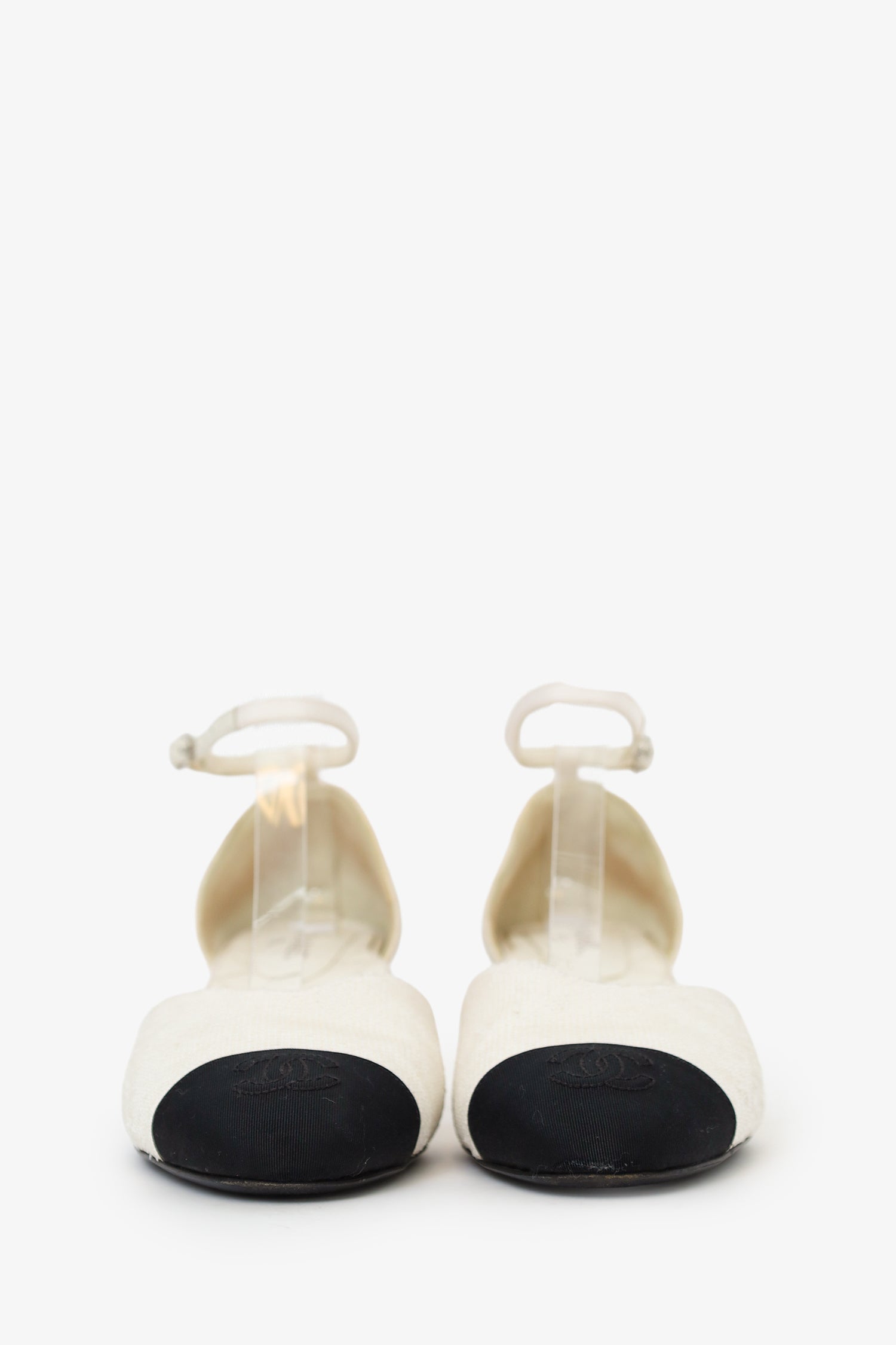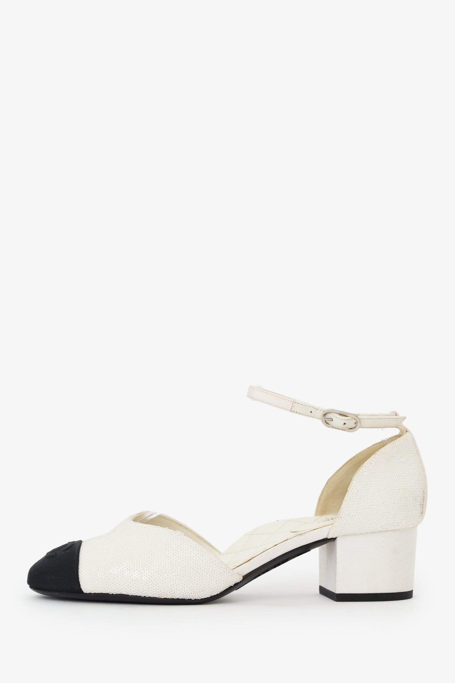 Pre-Loved Chanel™ White/Black Sequined CC Slingback Sandals Size 38.5