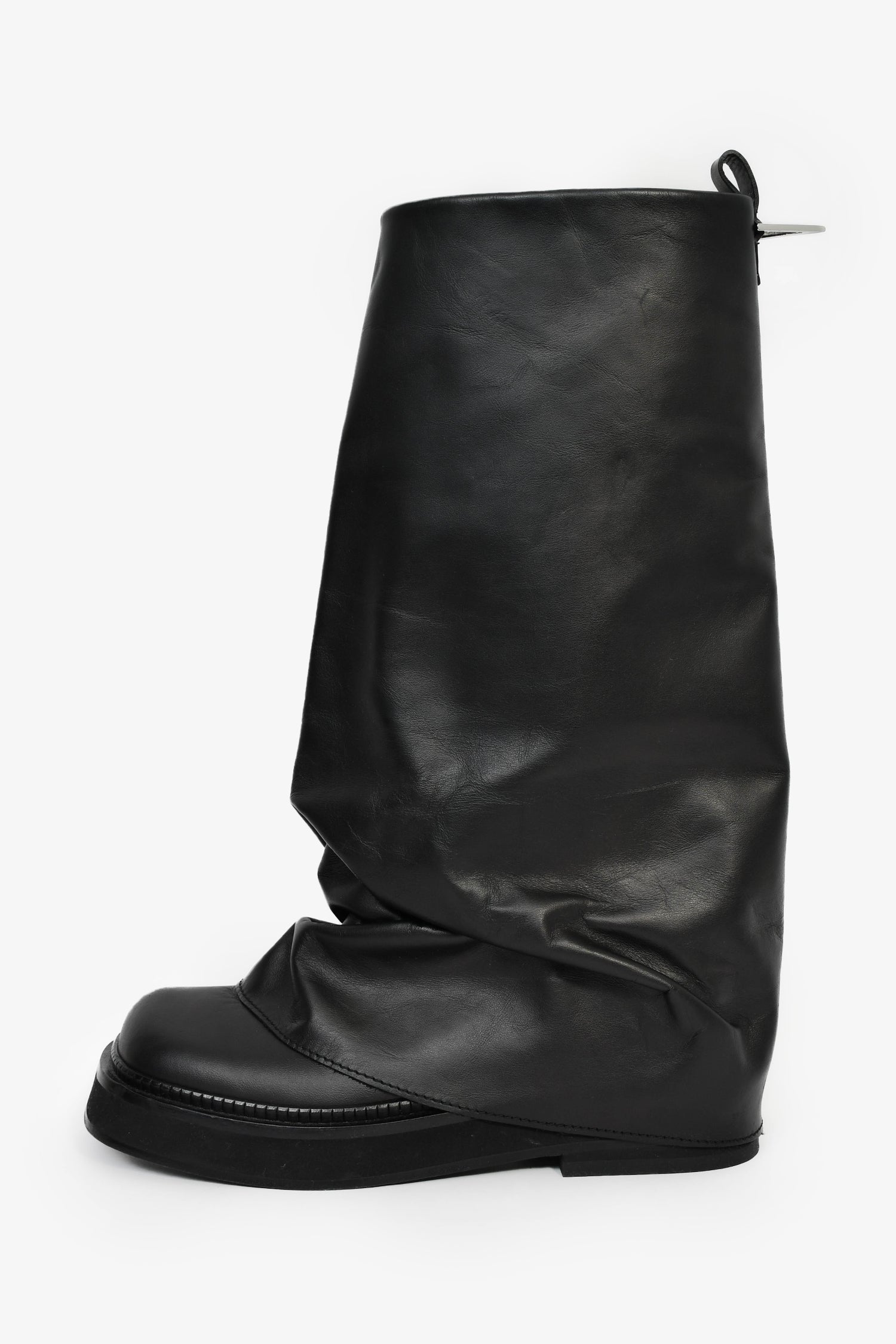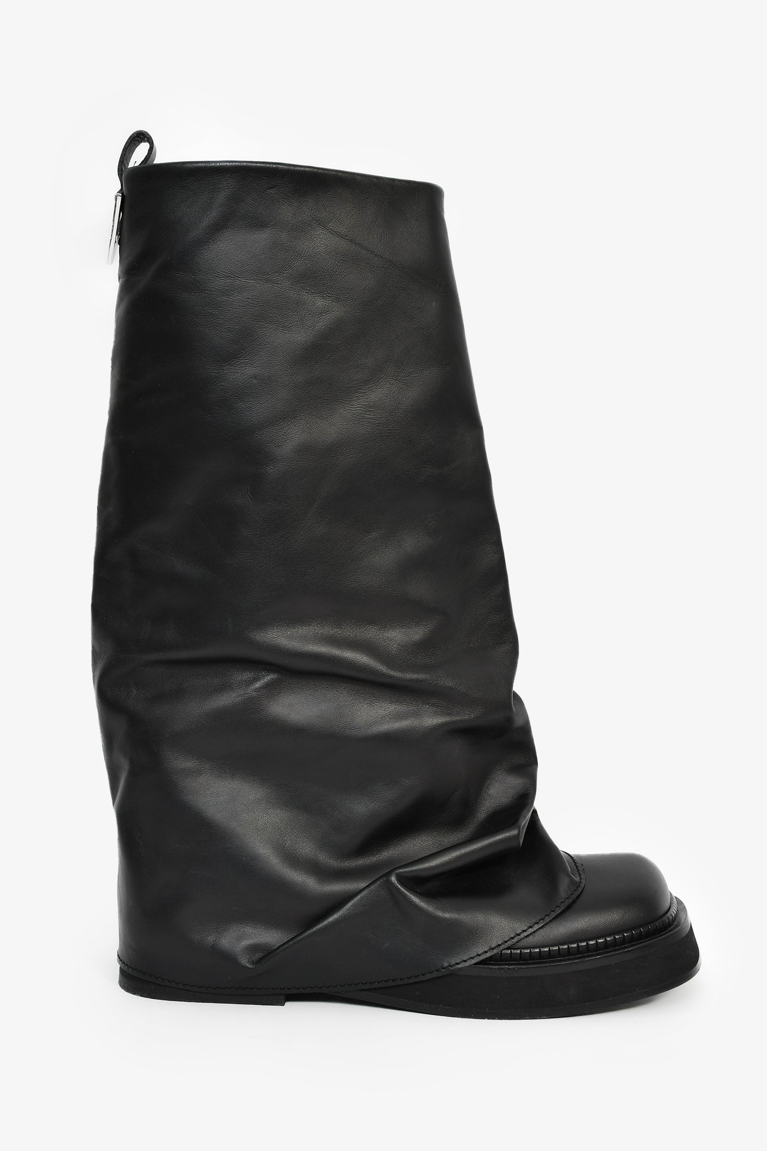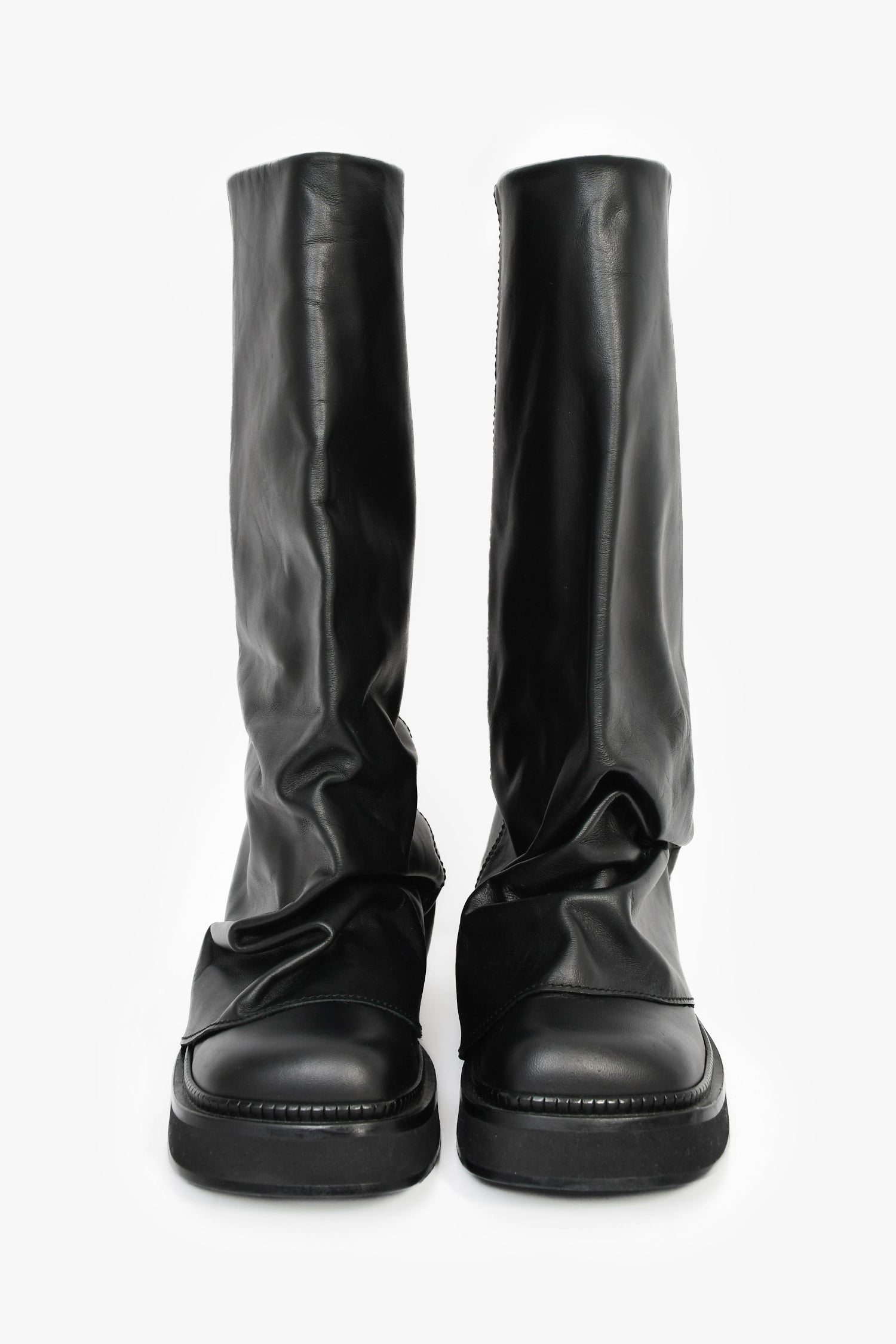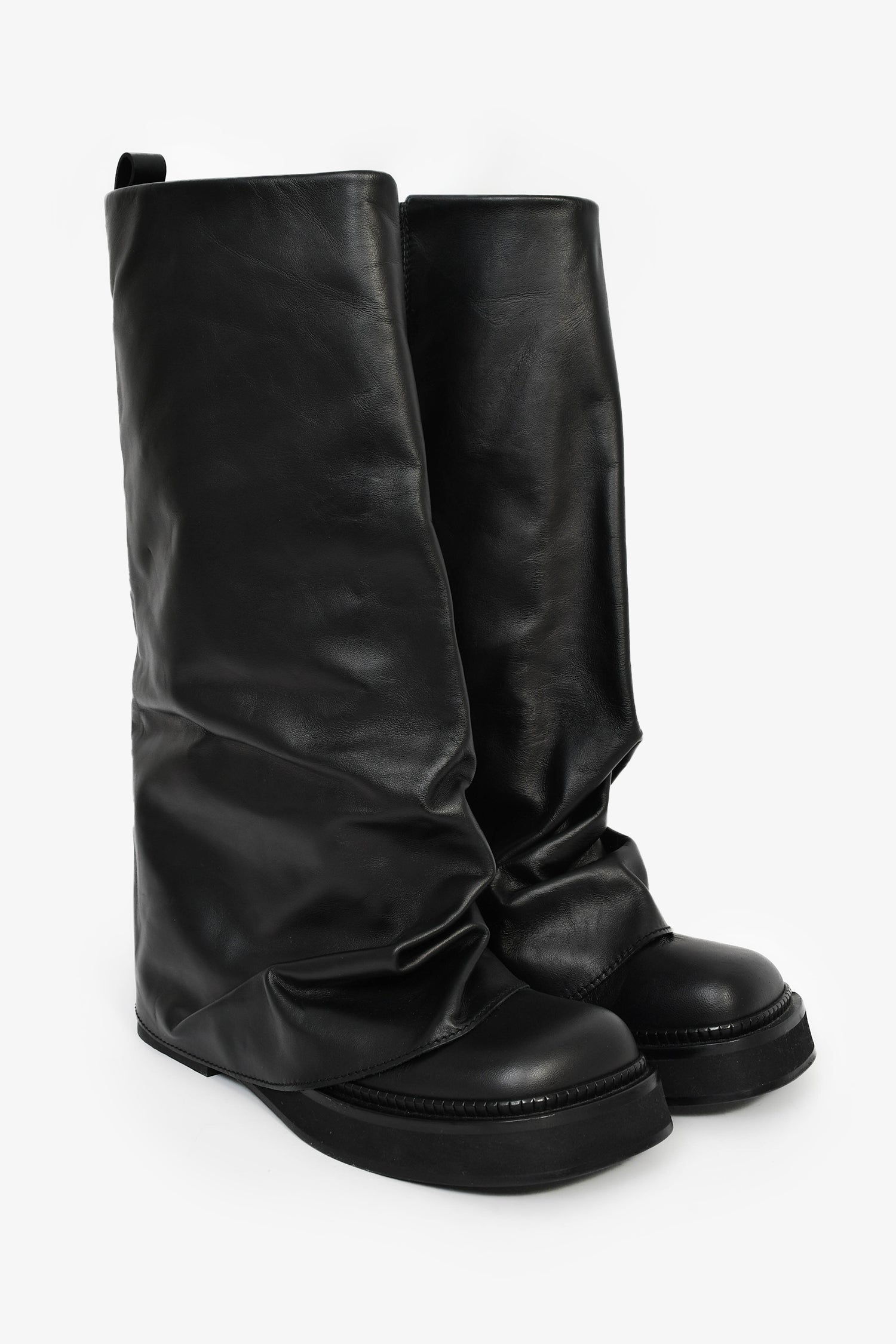 The Attico Black Leather 'Robin' Combat Boots. Square toe. Tonal stitching.
