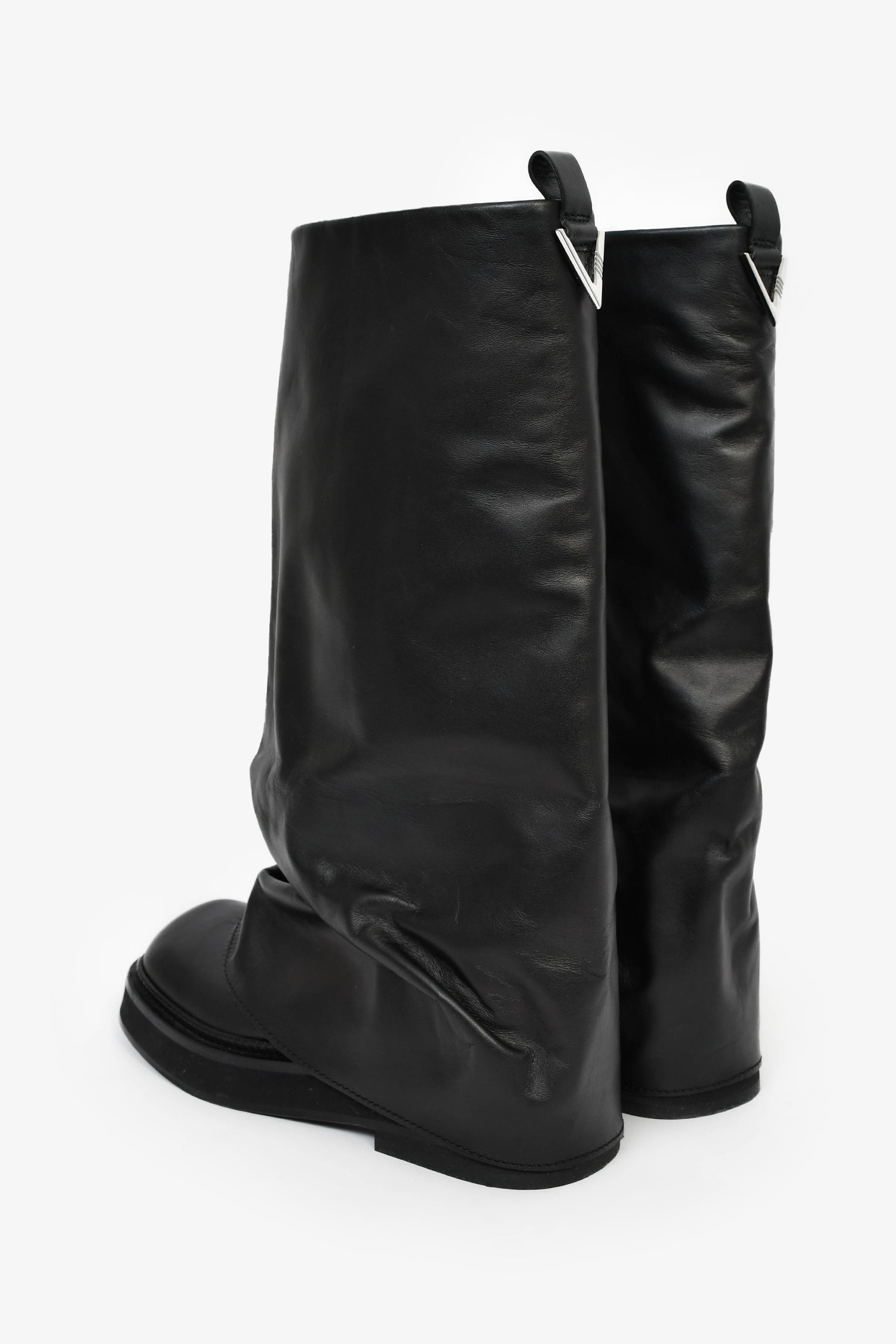 The Attico Black Leather 'Robin' Combat Boots Size 38