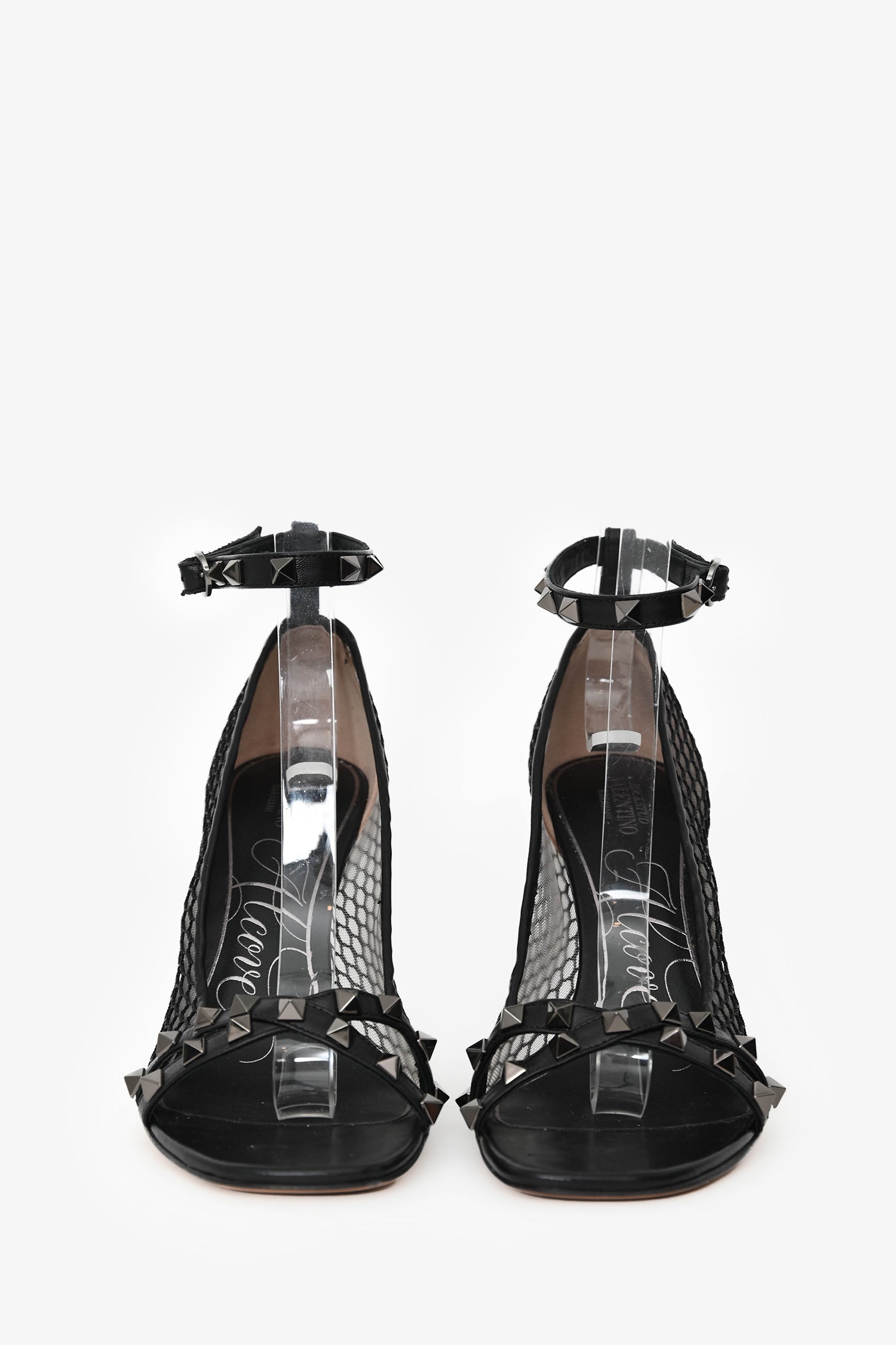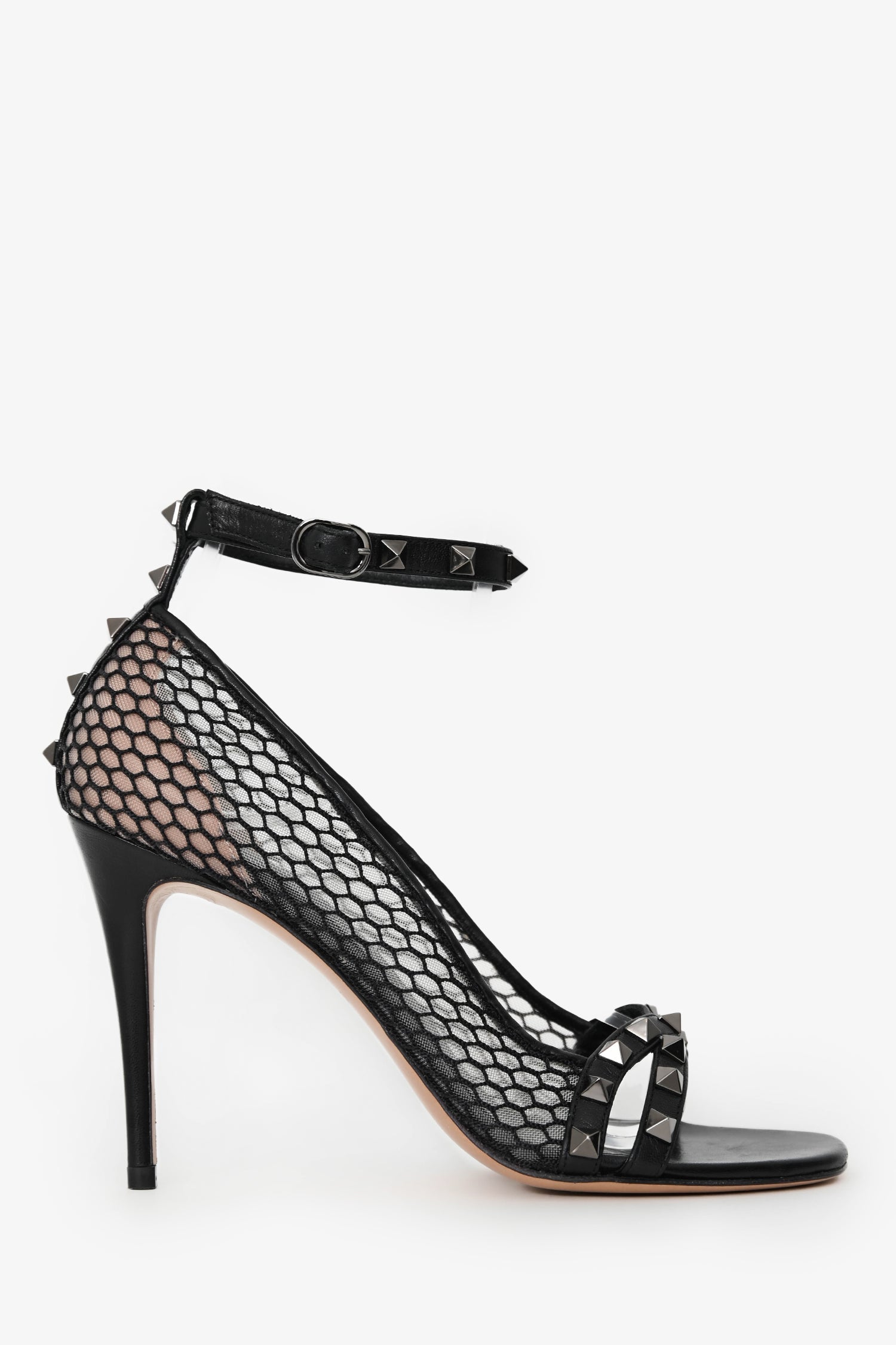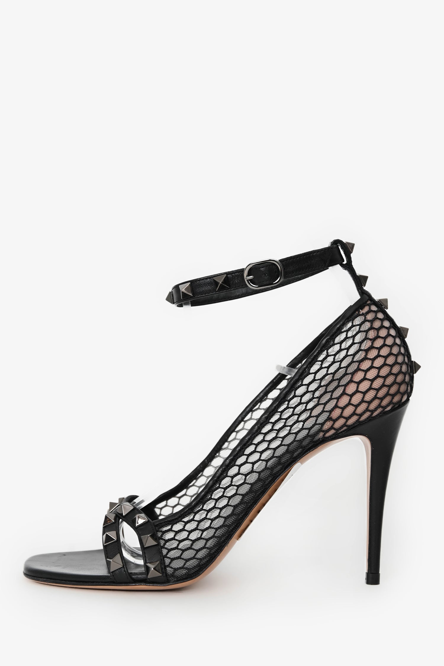 Valentino Black Leather Alcove Rockstud Mesh Sandals Size 38.5